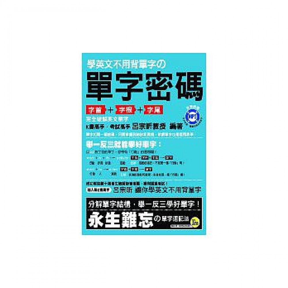 你想快速記憶單字嗎? 你想讓單字記了不忘嗎? 你想自由運用單字嗎? 你想在英文考試中衝高分嗎? 如果你想達成以上任何一件事情,你應該參考本書─《單字密碼》。這本《單字密碼》與一般坊間的單字書有相當大的區隔,它的特色在於: *將相同的「密碼」歸納彙整,同時統一「密碼」中的中文含義,避免造成學習者的混淆。 *利用「分解因式」的方法,將單字拆解成不同的「密碼」,以「字首 + 字根 + 字尾 = 單字」的結構,讓讀者更易記憶。 *每一個單字前,標明是屬「大學學測」、「大學指考」、「全民英檢初級」、「全民英檢中級」四項重要考試中的指定單字。 *每個單字後,附上英文例句,並加上中文翻譯,幫助讀者學習造句。 *本書附贈MP3格式的CD,協助讀者學習正確發音,並由發音練習進一步熟悉單字。 英文中看似沒有任何造字原則,看似僅是二十六個字母的排列組合,所以使我們在背單字時苦不堪言。其實,英文的部份單字是來自於希臘、羅馬時期的希臘文與拉丁文,由這些古文字再逐漸衍變成今日所看到的單字。如果我們可以知道這些變化原則時,就可以理解單字如何生成,再由單字生成的原因增強自己記憶的印象,進而可靈活應用這些單字。 單字中的「密碼」何在呢?就在於其中的字首、字根與字尾。以下為你舉幾個本書中的例子,讓你享受破解英文密碼的樂趣。 例一 decline, degrade, depress 分別是「降低、降級、抑鬱」的意思。這三個單字相同的字首密碼為「de」。所以這三個字可拆解成: decline = de + cline degrade = de + grade depress = de + press 「de」的意思是「向下」,所以我們可以快速的破解上述三個單字為: decline = de﹝向下﹞+ cline﹝傾向﹞ →「向下」傾倒的傾向就是「降低」。 degrade = de﹝向下﹞+ grade﹝等級﹞ →「向下」調整等級就是「降級」。 depress = de﹝向下﹞ + press﹝擠壓﹞ →「向下」擠壓自己的心就是「抑鬱」。 由「de」密碼可以輕鬆瞭解各個單字的構成。當我們瞭解其構成原因後,上述三個單字就可輕鬆記熟。 當我們以上述例子這樣嶄新的方法去學習英文單字時,不僅在學習過程中充滿樂趣,並且一口氣可快速記住許多單字,亦能清楚的辨識各單字之間的差別,確實掌握各單字的精義。 記憶單字並不難、只要我們有正確的方法,並明白其中記憶的訣竅! 透過本書的學習方式,我們可記住大量單字,並悠遊於英文的文字世界,享受閱讀英文的快樂。我們不僅將成為單字密碼高手,也將會是考場中的大贏家! 呂宗昕 2006 / 07 / 05