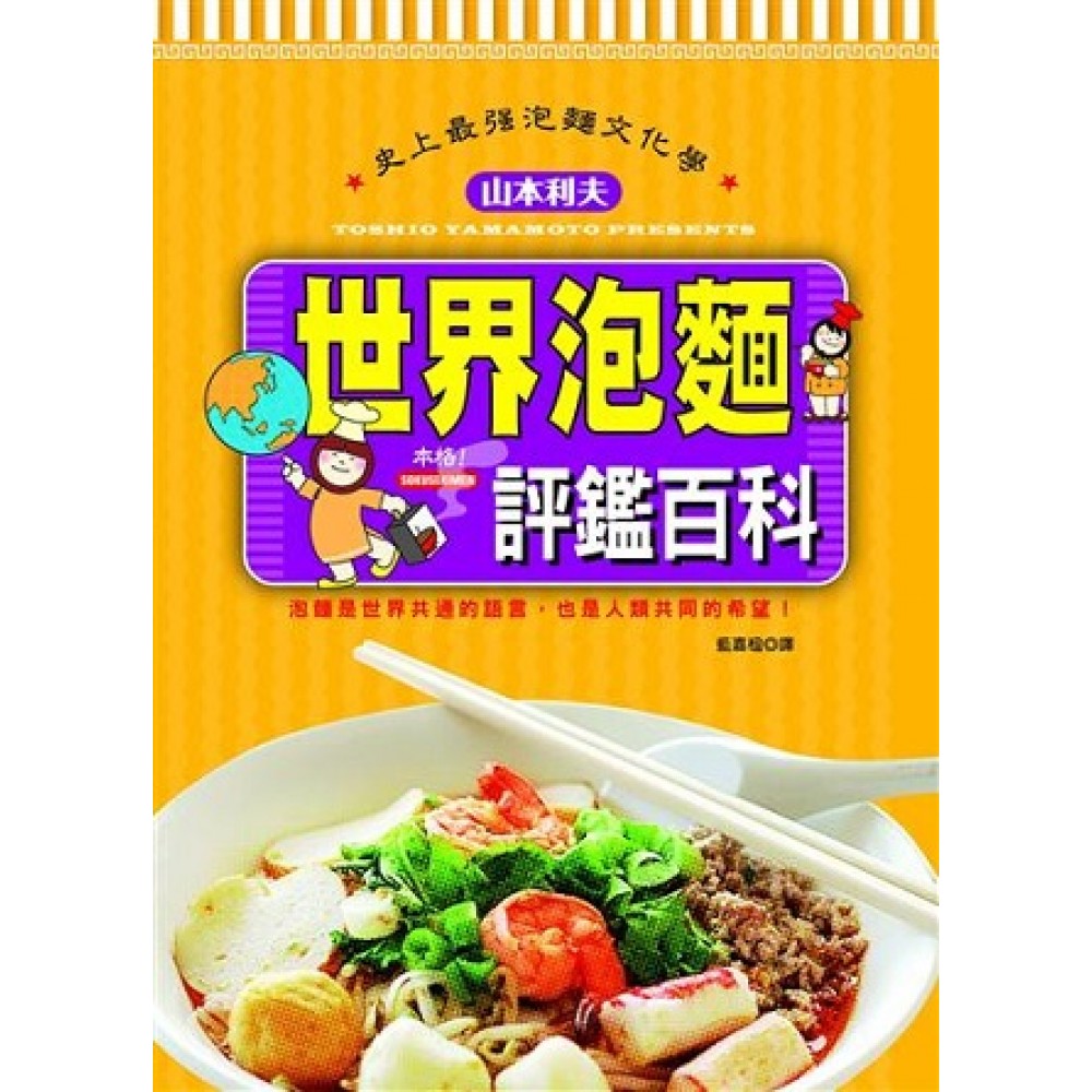 泡麵是世界共通的語言,也是人類共同的希望! 吃泡麵也能這麼有學問! 各國泡麵就像驚奇箱一樣有趣 如果不打開,永遠不知道會吃到什麼! 挑戰世界各國袋裝麵 前所未見的泡麵史,帶你「看」遍各國泡麵好滋味! 以單一口味而言,全世界消費量最高的是韓國的辛拉麵。 吃了澳洲的Farmland 2Minute Noodles後,我覺得自己好像也變成了家畜 緬甸的ShinShin Mohingar,麵條糊成一團,成分也一下子就沉澱了 尼泊爾的素食泡麵WaiWai Quick Kimchi,分量不多,很適合當作小朋友的點心 瑞士的Knorr Quick Noodles Chicken雖然標榜用的是東方式麵條,調味卻是西式的雞湯口味 波蘭的Amino Ogorkowa鹽味小黃瓜,用的是扁平麵條,散發著一股醃黃瓜的味道 英國的Blue Dragon 3min Noodles,麵條很會吸水,吃起來淡而無味,看起來很像日式炒麵 越南的Miliket Mi An Lien,包裝紙內側貼了防潮的膠膜 香港的出前一丁,銷售有咖哩、沙嗲、XO醬、照燒等眾多口味。 台灣統一肉燥麵的豬肉湯頭很高雅清爽,顏色清澈。調味油加了很多豬油,會讓嘴唇變得油膩膩的 一次介紹多國共539包泡麵 告訴你這些泡麵有多~特別、多~好吃! 從味道、湯頭、麵條等去評比泰國、越南、台灣、香港、中國、馬來西亞、印尼、韓國、美國、澳洲、匈牙利、新加坡等國家的各式袋裝麵。 有彩色圖片,也有售價、質量、熱量等情報。