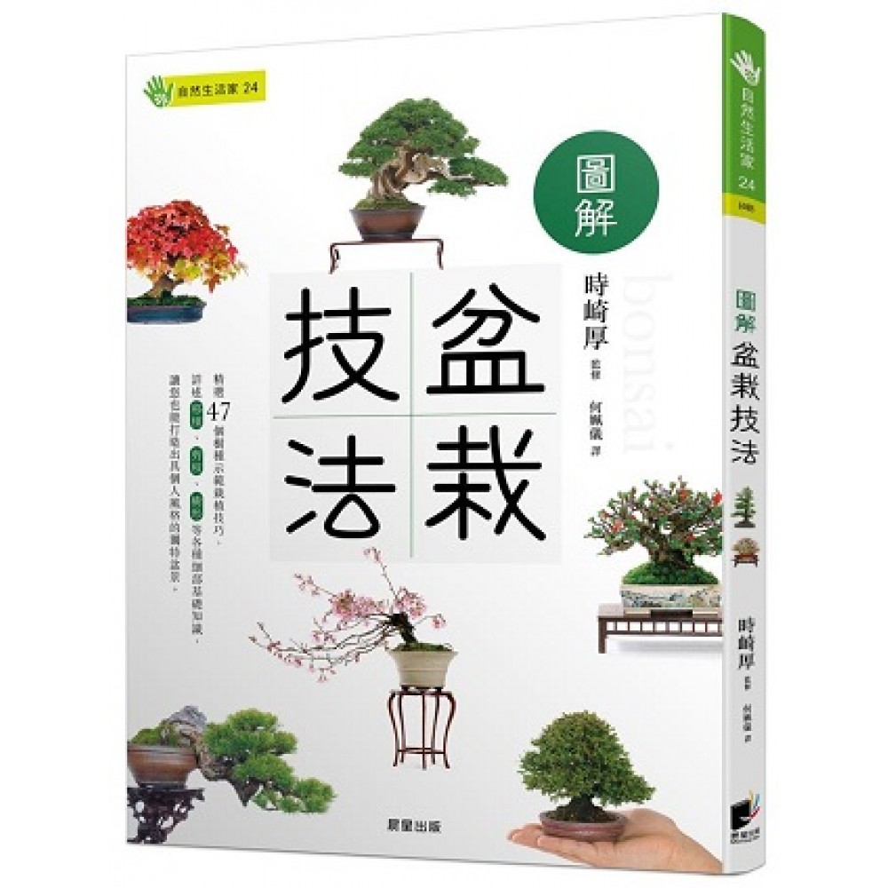 ●盆栽的基本 如何欣賞盆栽 盆栽的魅力 (1)鑑賞 (2)配盆 盆栽的種類 (1)松柏盆栽 (2)雜木盆栽 (3)花朵盆栽 (4)果實盆栽 (5)山野草盆栽 盆栽的樹形 (1)樹形的基本 (2)樹形的種類 盆栽的入門方式 (1)購買方法 (2)用土 (3)工具 盆栽的技巧 (1)換盆 (2)摘芽、切芽 (3)剔葉、剪枝 (4)纏線 (5)繁殖方法[分株法] [扦插法] [播種法] [壓條法] [嫁接法] 盆栽的管理 (1)置場 (2)澆水 (3)施肥 (4)病蟲害防治 通年作業流程 如何擺飾盆栽 (1)地板擺飾 (2)層架擺飾 (3)裝飾盆景架 ●松柏盆栽 ˙黑松 ˙真柏 ˙赤松 ˙杜松 ˙東北紅豆杉 ˙杉 ˙五葉松 ●雜木盆栽 ˙櫸 ˙榔榆 ˙唐楓 ˙縮緬葛 ˙姬沙羅 ˙雞爪槭 ˙遼東水蠟樹 ˙臭黃荊 ˙木蠟樹 ˙龍神地錦 ˙夏地錦 ˙百日紅 ●花朵盆栽 ˙梅 ˙櫻 ˙茶花 ˙野薔薇 ˙屋久島萩 ˙山繡球 ˙迷迭香 ˙皋月杜鵑 ˙長壽梅 ●果實盆栽 ˙老爺柿 ˙胡頹子 ˙日本衛矛 ˙石榴 ˙垂絲衛矛 ˙南蛇藤 ˙山鶯藤 ˙日本南五味子 ˙落霜紅 ˙西府海棠 ˙衛矛 ˙窄葉火棘 ˙山橘 ●山野草盆栽 ˙抱樹蕨 ˙虎耳草 ˙頭花蓼 ˙大文字草 ˙銀霧 ˙石菖蒲 如何製作苔球 盆栽用語集