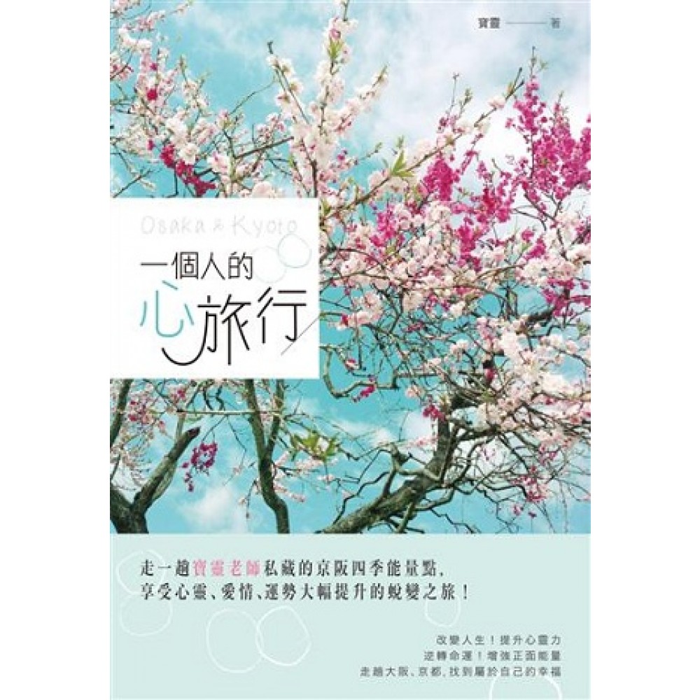 改變人生!提升心靈力量逆轉命運!增強正面能量走趟大阪、京都,找到屬於自己的幸?福 常在電視節目曝光,以塔羅占卜廣為觀眾所喜愛的寶靈老師,在嫁給日本老公後,也隨著小孩移住到日本大阪。但寶靈老師可沒忘了以日本人妻的身分,替全球的讀者們開闢通往幸福的康莊大道! 這次寶靈老師以當地人之姿帶路,規劃了觀光客最愛走訪的大阪和京都,並以四季景點來做分類,希望藉由她的專業告訴大家到哪些地方可以提升正面能量,並結合不同的冥想幫助內在建立信心,讓每次的京阪之行都可以帶著滿滿的幸福能量,回國後自然可以吸引到對的人、做對的事,感受截然不同的全新人生。另外,寶靈老師也在書中特別推薦20+美味餐廳,希望透過食物的好能量來帶給大家更多迎風向前的人生力量! 在戀愛能量之春來到京阪── 你需要利用櫻花飛舞的季節,將愛意釋放出來。因為代表春天的粉紅色連結著愛的課題,當一個人在情感上有不負責任的狀況、不清楚愛情的真諦、拿愛情來逃避生活,就需要調整體內粉紅色的能量。正向的粉紅色懂得無條件的愛與關懷,珍惜自己也珍惜別人,把握每一刻最重要的相處,同時粉紅色也能撫平人們對愛情有不滿足的回憶。如果粉紅色能量充足,一舉手一投足都會充滿魅力,可能隨時隨地吸引到好的桃花,對感情也會擁有選擇的權力。 在創意能量之夏來到京阪── 你需要利用綠意盎然的季節,找回自己的初衷。因為代表夏天的綠色象徵真理,也代表堅信真理而擁有穩定踏實的態度。當一個人在生活中無法打開心胸,容易產生嫉妒、過度浪費、只想著自己取得好處的時候,就需要藉由綠色的能量再次打開格局,用最沒有預設立場的方式得到最佳解答。綠色也能帶來慷慨、平靜、自然的真理等能量,特別適合需要改變人生格局的人,突破目前無法解開的課題。 在安定能量之秋來到京阪── 你需要利用漫步賞楓的季節,穩定幸福的力量。因為代表秋天的橘色會照顧一個人對別人的依賴感,並且用柔和的方式支持人在困難中長大。當一個人受過精神創傷、驚嚇、情緒過於敏感的時候,橘色能量會為他帶來安心、溫柔、撫慰的效果。橘色也會在藝術層面帶來智慧,增加藝術美感,帶來清楚的觀察力。除了讓人能夠調整自己與外界的協調感,也會在生活中的每一個細節感覺到歸屬與幸福感。 在幸福能量之冬來到京阪── 你需要利用雪花紛飛的季節,恢復正面能量。代表冬天的白色具有管理淨化的功能。當很多事情繁雜,讓人感到手足無措的時候,就可以使用白色能量。白色代表承受痛苦與昇華,所以當處在令人不舒服的環境、情緒、氣氛當中,不妨藉由白色淨化那些負面能量。如果你去過能量較混濁的地方,比如說醫院、百貨商場、菜市場等,也能透過白色能量達到完整淨化的效果,恢復到最單純的自己。