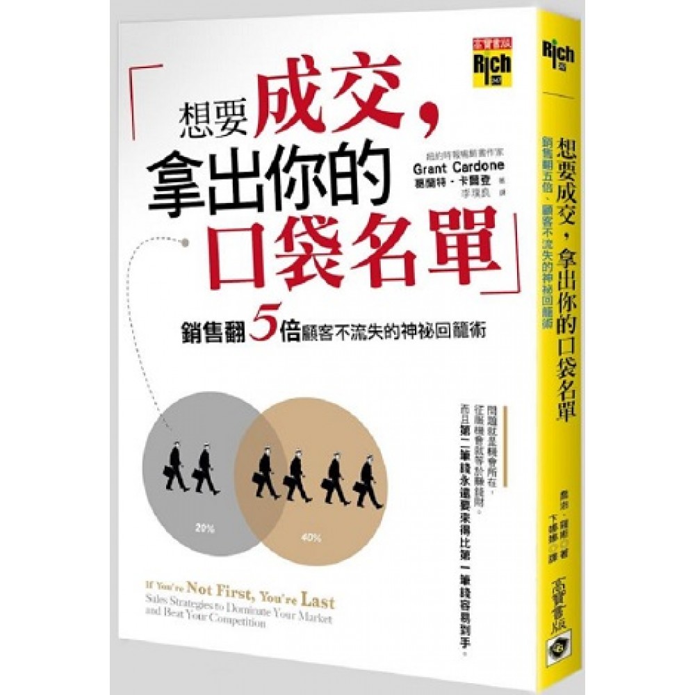 第一章 四種反應,發現你的銷售人生 第二章 幾個步驟,找出一長串人脈 第三章 原來,客戶回籠這麼簡單又快速 第四章 跟著這樣做,很容易變成市場第一 第五章 舊瓶換新裝,賣不掉的產品跟著起死回生 第六章 老客戶帶出新客戶,聰明複製口袋名單 第七章 與老客戶一起進場玩,成績變得好耀眼 第八章 完美訂價:顧客超滿意,業績更閃亮 第九章 二次銷售的催生,賓主都滿意 第十章 讓產品更具附加價值,顧客滿意百分百 第十一章 以「第一名」為目標的最高指導原則 第十二章 放大客戶可接受的輪廓 第十三章 針對有效市場,進行行銷活動 第十四章 產品包裝不一樣,利潤也跟著放大 第十五章 給自己一張時程表,將施力點發揮最大 第十六章 表現成功的態度,人生會很不同 第十七章 讓自己財務自由的真實規劃 第十八章 通往成功的最上層技巧 第十九章 我教你實踐我的祕訣:非理性的態度 結論 確保你的地位