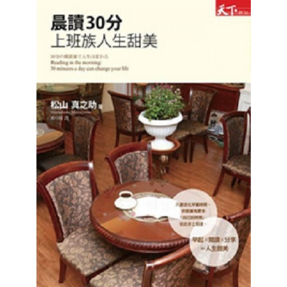 推薦序 立志晨讀,改變一生 柯華葳 讀者看到本書書名時,第一反應可能是,又是晨讀,不過這一本說的是成人晨讀。這對我來說,更不可思議。我本來想,一位成人若沒有閱讀的習慣,到了中年,怎麼可能持之以恆的晨讀?這就是本書作者松山真之助要與大家分享,說服讀者的地方。 松山因工作關係,每天要花相當多的時間通車。通車時無聊,開始借書閱讀。 沒想到書是這麼的吸引人,讓他每天早上非常享受閱讀的旅程。過些時候,他嫌車上有點吵雜,換更早的車次,讓自己能安靜閱讀。從此展開規律、持續的晨讀。 其實松山要闡明的是,人進入中年後如何掌控自己的步調。進入職場工作一段時間後,時間似乎是別人的,被別人控制著,想陪孩子,沒時間;想讀點書,沒時間;想運動,更沒時間。好不容易有假日,同事們又安排各種聯康、進修活動,時間還是在別人手上。 若不願意活在他人的時間裡,就要有意識的把時間轉回到自己手中。松山先生建議三個 「別不經意」 打開電視或電腦、參加飲酒聚會、參與不必要的社交活動。他很精準的算出,若一天看兩小時電視,一年就少了三〇.四一天的日子可以用。這是一個月的時間,真的很嚇人。 把時間拿回來,可以做很多事。松山先生極力推薦晨讀。早晨,不為考試、不為各種工作問題讀書,因為有了壓力,一天都不好過。晨讀,不為什麼,只為自己緩慢沉著的讀,溫和的喚醒思考,這一種喜受。一天的心情和做事效率都有改善。因要晨讀,早起早睡,也因要早睡早起,不再隨便參與社交,可以回家享受親子時間、家庭生活也有改善,這是作者的經歷。他體會到這麼多的好處,自然要分享,於是出書說服讀者要晨讀。 我們從小就被告知,要用早晨的時間背英文單字、背課文,老師也利用早自修時間考試,因為一日之際在於晨。作者說,慢點,要背生字、要計畫一天的工作,先為自己晨讀,因為讓自己安靜是非常重要的一件事。一日之際在於有安靜的開始。 有書桌增加自己的空間;有晨讀增加自己的時間。只要改變作息,空間、時間都回到自己手上。這時才能稱自己是自己的主人。 (本文作者為中央大學學習與教學研究所教授) 推薦序 打通名為「晨讀」之任督二脈,效率加倍! 許書揚 一天短短二十四小時,要如何做最有效率的運用?要怎樣做,才能在忙碌工作之餘持續成長?在本書中,作者提出了「晨讀」的概念,將早起、讀書、分享三個成功因素互相加乘,進而創造出最大效益。 首先是早起的益處,作者形容早晨的辦公室像是個無風地帶,我完全同意,一早無人的辦公室就像是有鎮定人心的作用,讓我得以靜下心來安排掌握一天的行程,而非被行程推著走。我始終記得第一個老闆的教誨:永遠比公司規定的時間早進公司,當其他人姍姍來遲、慢慢進入狀況時,自己已經充分暖身並開始工作了。 接著是持續學習的概念,從事人力資源工作二十多年來,我認識許多極其優秀的經理人,他們不但在事業上表現亮眼,談吐更是謙遜且具深度,細究其成功因素,可發現他們的共同之一是皆有閱讀的習慣。很多年輕人甫開始工作,往往被排山倒海而來的工作淹沒,因而慢慢停止吸收新知,因此,我會勉勵年輕朋友,即使工作再忙,永遠不要用「我也想多念點書,但實在是沒時間」當作停止學習的理由,須知即使一天只讀個一、兩頁,能持續下去也已經很了不起了,重點不在於量的多寡,而是要維持一定的閱讀習慣,如此不但可讓自己隨時吸收最新知識,更可以靈活思辨能力。 充實自己之餘,與他人分享、討論,更可讓閱讀訓練思考的效果加倍。我認為與人分享討論,便可訓練自己以更多角度檢視同一主題,進而加強思考的全面性。此外,與人分享更可建立自己的良好形象,增進人際關係,因此,許多成功的企業都有內部讀書會,鼓勵員工在自我充實之餘,養成與人分享的習慣。 早起、閱讀及分享是最有效率充實自己的三要素,作者將其融合,不但具有創意,可行性亦非常之高。我自己日常生活中三要素均有實踐,卻從沒想過利用早晨時間讀書,因此,作者提出的概念對我來說就像是打通了任督二脈,以「晨讀」這一個簡單的動作達到一石三鳥之效,期待與讀者朋友們一同體驗晨讀所帶來的神奇效益。 (本文作者為經緯智庫暨保聖那台灣分公司總經理) 推薦序 早起有益時間管理 詹文男 現代上班族不僅競爭壓力大,工作負擔也重,熬夜加班成為常態。也因如此,常常抱怨時間不夠用,希望一天最好有四十八小時,才能完成老闆交付的任務。但我們也看到,很多人從容應付工作上的許多挑戰,且能多工處理不同領域的工作而游刃有餘。為何有如此分別?實際觀察大多數上班族的工作狀態可以發現,這兩群人最大的差異,是時間管理能力的良窳。 那麼,如何才能有效地管理有限的時間呢?基本上,要做好時間管理,第一,應該列出手邊所有工作項目的清單,做好優先順序的安排。透過清單及優先順序的整理,不僅可掌握工作的全貌,也可藉此機會釐清及整合相關的工作項目,以便更有效率地執行。 進一步言,讀者更可以運用時間管理矩陣,讓自己瞭解個人對時間的運用與分配的現況與期望。亦即透過「重不重要」與「緊不緊急」兩個指標,將所要處理的事情分別放入四個象限中,以分清楚輕重緩急及優先順序。 簡單來說,讀者可紀錄自己在工作日、工作週及工作月所有的時間在各象限的分配,以了解個人運用時