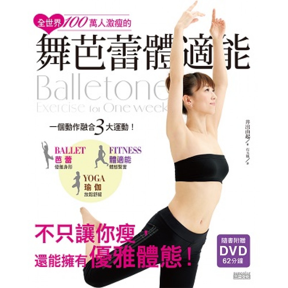 【網書大標】 不用從小練芭蕾,也能擁有芭蕾名伶的身段! 不用辛苦踮腳尖,雙腿也能修長迷人! 舞芭蕾體適能(Balletone),起源紐約、襲捲東京、倫敦的最新體適能運動。 全世界1,000,000人驚嘆的瘦身效果!電視、雜誌瘋狂報導曝光!哈佛大學實證、瑪丹娜也瘋做! 62分鐘7天速效舞芭蕾操DVD,不只讓你瘦,還能擁有優雅體態。 ; 【內容簡介】 軟肉變精實!體態優雅瞬瘦5Kg 簡單易學、不限年齡、性別,最適合不愛運動的人!不會芭蕾也OK! 破除女性最在意的下半身肥胖、拉長身形、恢復身體原有的柔軟體態。 舞芭蕾體適能,是紐約的芭蕾舞者為了保持勻稱和雕塑線條而開發的一種運動。 結合三大要素: |芭蕾(BALLET)-優雅身形。 |體適能(FITNESS)-體態緊實。 |瑜伽(YOGA)-放鬆舒緩。 7天速效瘦身計畫!體幹與體態的同時訓練,達到全身緊實又柔軟的效果。 ; 【讀者體驗】 YUKI舞芭蕾瘦身課程學員,驚喜不斷的真實心聲! | |沒有控制飲食,腰圍真的變小了! |(28歲•女性 上班族) | |衣服的尺寸從L變回M了! |(40歲•女性 上班族) | | |駝背問題慢慢矯正過來了。 |(32歲•女性 家庭主婦) | | |穿好幾層襪子、吃好多薑也治不好的手腳冰冷,居然改善了! |(36歲•女性 家庭主婦) | | |才1個月,臀圍就小了一圈! |(40世代•男性 上班族) | | |慢慢鍛鍊出肌肉,不容易感到疲勞了。 |(46歲•女性 家庭主婦) | | |才做幾分鐘就開始大流汗,很有運動的真實感。 |(52歲•男性 上班族) |; | 【本書特色】 1. 全新概念的「舞芭蕾體適能」,不只讓你瘦,還能擁有保持優雅體態的肌力。 2. 哈佛大學實證、名人瑪丹娜加持,1天不到10分鐘,健康、身材7天到手。 3. 1個動作3種效果:芭蕾的優雅、體適能的緊實、瑜伽的放鬆。