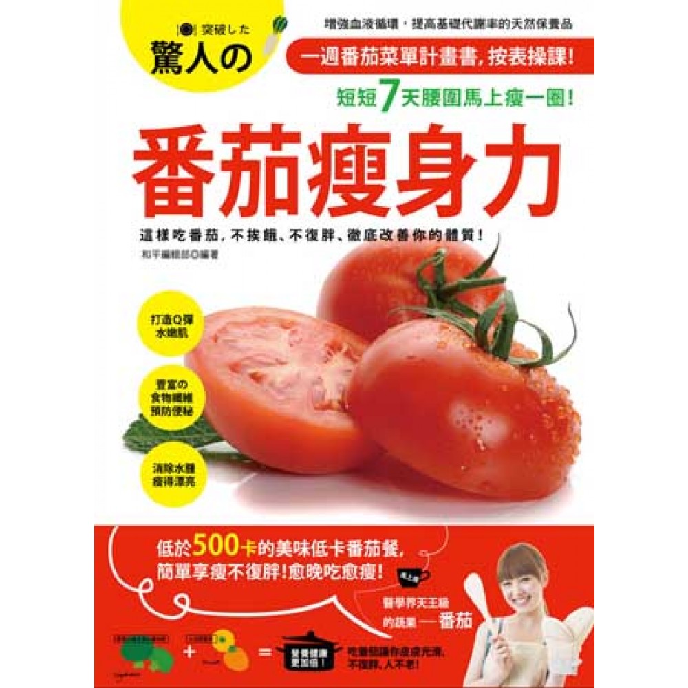 Chapter1 你不可不知的獨家祕密-認識番茄 番茄的介紹 世界番茄家族成員介紹 番茄營養成分大揭祕! 在健康上番茄對身體的好處 你一定要知道的番茄7大好處! Chapter2 番茄選購停看聽 完全掌握挑選新鮮番茄的小撇步 番茄清洗、保鮮偷偷學 購買新鮮番茄地圖大公開! 農場內的新鮮番茄 Chapter3美味又美麗的番茄水果餐 -一起下廚一起瘦吧! 什麼!?煮熟的番茄比較營養! 烹飪小技巧,升級番茄功效的小祕密 番茄料理偷吃步的先行準備搶先做 簡單又便利的番茄汁代餐 番茄蔬菜汁 番茄汁、番茄優酪乳 番茄柑橘汁 番茄蘋果汁 番茄鳳梨汁、番茄梅子冰沙 番茄多多冰沙、番茄葡萄柚汁 蜂蜜番茄冰沙 飽足感十足的美體番茄餐 芝麻番茄秋葵 番茄松子沙拉 番茄雞絲涼粉 涼拌番茄 鮮蝦番茄生菜沙拉 青醬起司番茄斜管麵 清炒番茄斜管麵 洋蔥鮪魚鑲番茄 鮮蔬番茄湯餃 番茄燉肉飯 橄欖番茄花枝麵 蘿勒番茄肉醬麵 番茄鮮魚煲 番茄蕎麥麵 清燉番茄排骨拉麵 番茄豬肋排飯 樂活山藥鍋 番茄蔬菜鍋 番茄鮮蔬湯 生菜番茄蝦鬆 泰式番茄海鮮雞肉 番茄燒肉捲 迷迭香雞肉捲番茄 減肥也可以吃的番茄甜點 薄荷番茄乳酪 番茄起司塔 番茄山藥塔 什錦番茄披薩 番茄沙沙貝果 起司番茄蛋塔 番茄蘋果慕斯 台灣常見蔬菜營養成分表 Chapter4 懶惰也可以減肥-偷懶的番茄減肥法 單又方便!生食番茄計畫 即食性番茄食品大公開 徹底執行,減肥小撇步大公開! Chapter5 附錄 關於水果減肥,專家的意見停看聽 按表操課!健康又美麗 番茄自給自足—我的番茄有機農場