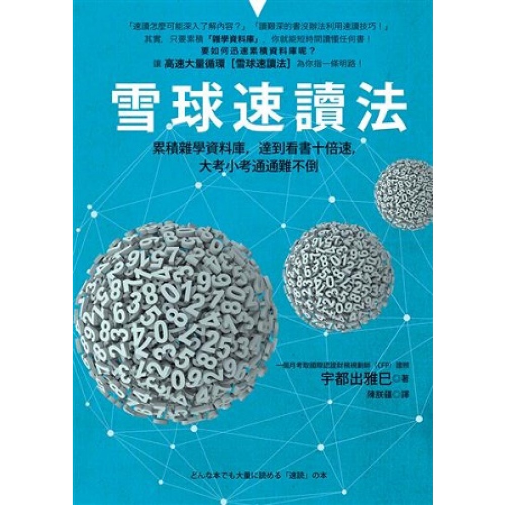 速讀能力 = 速讀技巧 × 雜學資料庫(知識、資訊、經驗) 給所有對速讀抱持幻想的新手! 一起跟著宇都出大師的腳步,如滾雪球一般迅速累積資料庫! 「速讀怎麼可能深入了解內容?」 「讀艱深的書沒辦法利用速讀技巧!」 其實,只要累積「雜學資料庫」,你就能短時間讀懂任何書! 要如何迅速累積資料庫呢? 讓高速大量循環[雪球速讀法]為你指一條明路! ★如果你是下列幾種人之一,請你一定要翻閱本書 一直覺得速讀是種「相當可疑」的方法,而不願接觸的人 曾試著看過速讀教本,但看到一半便放棄的人 曾參加過速讀課程,卻覺得很難應用在平時閱讀上的人 ★什麼是「雜學資料庫」? 我們在讀任何讀物的時候,會用到我們從前所累積的所有知識、資訊、經驗,這就是「雜學資料庫」。閱讀速度的快慢,與雜學資料庫的質與量息息相關。 換句話說,擁有愈多讀書經驗,瞭解愈多相關領域的資訊,表示你的資料庫愈豐富。 比如說你是否有發現: 。讀過一次的書,第二次讀會讀比較快 。歷史系畢業的人,讀歷史類的書會讀比較快 →因為他們的「雜學資料庫」中,已經累積相關的知識與經驗! ★什麼是高速大量循環[雪球速讀法]? 那麼,擁有雜學資料庫的人才有辦法學會速讀嗎? 錯!即使不具備與書籍內容相關的資料庫,只要利用雪球速讀法,也能達到速讀目的。 藉由「高速大量循環」的速讀技巧, →快速讀過之後,可以累積一些資料庫 →累積一些資料庫之後,使閱讀速度提升 →閱讀速度提升後,使累積資料庫的效率也跟著提升 你就能像滾動雪球一樣,一步步累積扎實的資料庫。 ★高速大量循環[雪球速讀法]怎麼做? 重點1◎第一次只需閱讀目錄、前言和後記,至少反覆10遍 →幫助你快速掌握整體架構 重點2◎閱讀時不轉換成聲音 →習慣不轉換成聲音讀書,速度才會快 重點3◎不要執著於看不懂的地方 →看不懂就不用浪費時間,先全部看完,用反覆閱讀的方式加深印象 ★新手一看就懂[雪球速讀法]實踐感想 「不用花好幾萬參加講座,想學速讀只要這一本書就夠了!」 「本書不是只是教你「視點移動」等傳統的速讀技巧。而是使用「資料庫」的概念,聽起來有點困難,而且一開始需要花較多時間句反覆閱讀,但只要持續下去就能提升閱讀速度。無論如何想嘗試一下。」 「老實說我曾經對速讀感到很懷疑,但這本書卻很容易實踐,一起來嘗試高速大量循環的「雪球速讀法」吧!」 ★本書重點 本書指出以往速讀教科書都忽略「雜學資料庫」的累積,只專注於眼睛、右腦等速讀技巧,這種學習方式往往會讓初學者對速讀到挫折,作者結合自身經驗,提出「雪球速讀法」,並利用此技巧在一個月內通過CFP考試,不只增快閱讀速度,更能夠快速吸收內容。