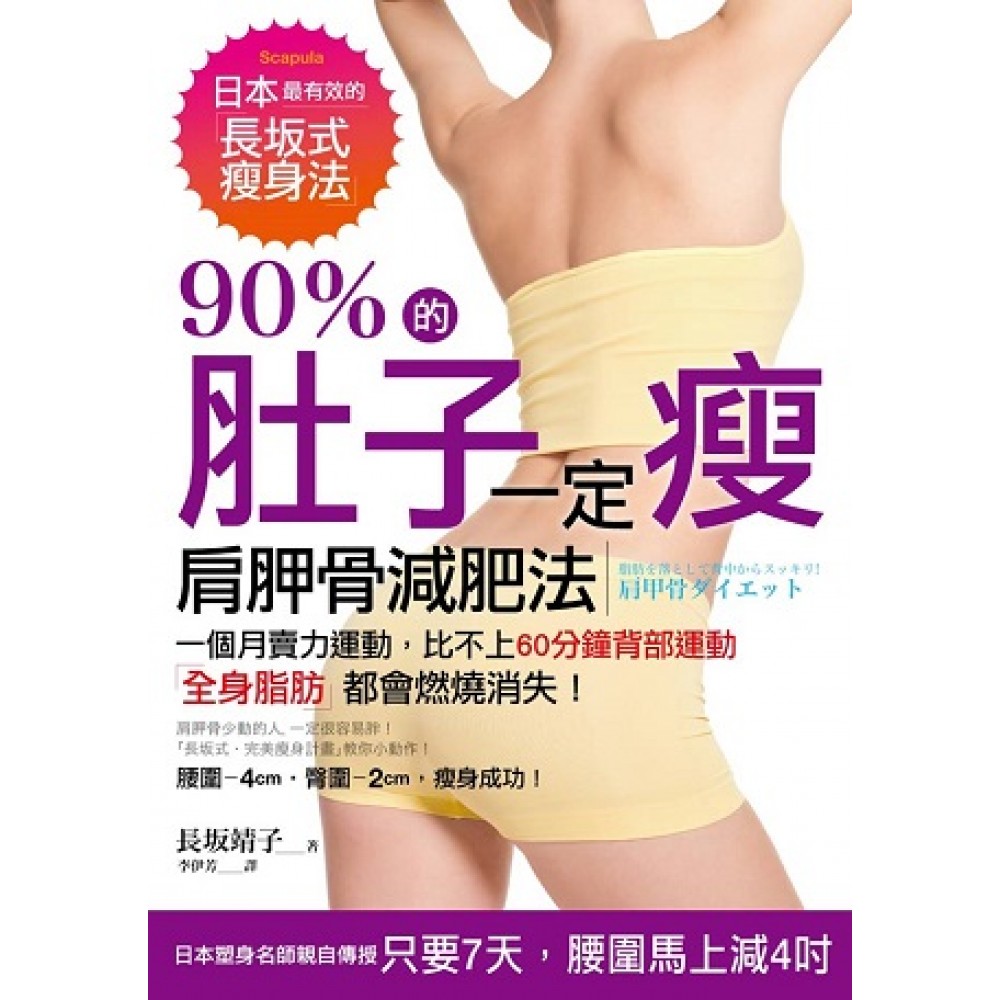 <作者序> 60分鐘,肚子就能瘦!「腰圍少4公分」的長坂式瘦身法 「『你是模特兒嗎?』長坂老師,前幾天居然有人這樣問我喲!」 一位40歲的家庭主婦,非常開心地跑來跟我說這件事。每次來上課的學生向我報告類似的好消息時,我總是替他們感到非常開心﹗ 我所開設的「走路瘦身教室」,每次課程時間為1小時。課程結束後,有些學生馬上會出現「腰圍減少4cm、腳踝變細2cm」的驚人成效。透過這樣的課程成果,我深刻地感受到「肩胛骨」真的是打造窈窕曲線的最重要關鍵! 「肩胛骨減肥法」,有意想不到的驚人效果 活動肩胛骨可以放鬆緊繃、僵化的肌肉,讓「美」的血液暢流全身,身體就會漸漸轉變為「易瘦體質」。運動界的人大多都知道,「肩胛骨」對血液循環有非常重要的影響力,而美容界在最近才開始重視肩胛骨的美容功效。 對「運動健身」而言,意識到「肩胛骨活動」是不可欠缺的重要關鍵。只要運動肩胛骨,就能出現意想不到的減肥效果。在這樣的契機下,我將焦點鎖定在肩胛骨,不斷提倡「肩胛骨完美塑身操」。沒想到引起學生們的廣大回響,令人高興的好消息越來越多,這麼棒的瘦身方法,一定要和各位讀者們分享。 活動「肩胛骨」,加速淋巴、血液循環 許多人可能對「肩胛骨」一詞不太熟悉,肩胛骨就是指位于脊椎上方、肩膀下緣的左右兩片骨頭。如果肩胛骨附近囤積了多餘的脂肪及贅肉,即使身型纖瘦,也很難顯現出立體的曲線;更可能因為不健康的生活型態,影響到淋巴循環,使肩胛骨周遭出現青春痘,這樣看起來不僅不美觀,更妨礙全身血液循環。 肩胛骨正常活動,可以有效運動到背部肌肉,對「骨盆」也有相當好的連動效應。骨盆位於身體中心,是連接著上半身與下半身的重要部位。不過,光是意識到骨盆的重要性,還無法擁有完美的體態,也就是說,即使調整了骨盆位置,卻沒有讓肩胛骨有效地運動,也無法擁有完美曲線。 調整骨盆之外,別忘了,肩胛骨也要運動 調整骨盆卻沒有運動肩胛骨,就如同擁有一輛好車,卻不懂得如何開車一樣,是件再可惜不過的事了。只要肩胛骨確實地運動,骨盆也會跟著動起來,如同按下了全身的運動開關,身體各部位的肌肉都能獲得有效調整,自然而然、從裡到外,散發出美人的氣質。 如何擁有引人矚目、美麗動人的背影呢?只要習慣性地活動肩胛骨,「天使翅膀」般的肩胛骨會慢慢浮現,接著,讓脊椎的溝痕變明顯,雕塑清晰可見的「維納斯曲線」,最後,再以骨盆為基礎,打造誘人的「心形蜜桃臀」。 背部變美了,健康、幸福才會跟著來 成功雕塑背部線條,後背就會散發出璀璨光輝,成為真正的「美背人」。那些擁有「難消的脂肪團」、「腋下副乳」、「背部粗糙長滿痘痘」的女性,絕對很難成為「美背人」。 成為「美背人」絕不單是外表的光鮮亮麗,更包含了「幸福」。換言之,擁有「美背」的你,幸福一定也會跟著來,等於擁有了「幸福體質」。 想要從頭到尾徹底變美的你,只要在日常生活中融入我所開設的「走路瘦身教室」的五種訓練課程,只要持之以恆,保證你一定能擁有迷人背影,成功打造「易瘦體質」﹗ 請各位讀者要記得,自己看不見的地方,別人會看得更清楚。「背影」是美麗本質的呈現,這種說法一點都不誇張的。擁有「高度美麗意識」的女性,一定會注重自己看不見的部位。如果連自己看不到的背部都能散發迷人魅力,那麼看得見的地方將無庸置疑地倍加美麗。 因此,拿起本書閱讀的你,一定有成為「美背人」的潛能。從今天起,一起為了擁有「美麗的背影」而努力吧﹗ 我衷心期盼本書的每位讀者,都能擁有完美體態,以及美妙幸福的人生。