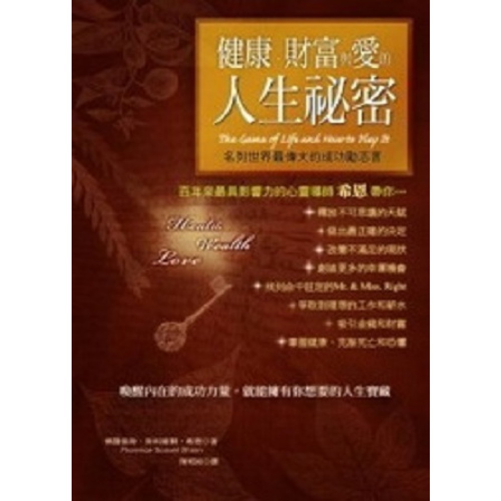 佛羅倫斯‧斯科維爾‧希恩(Florence Scovel Shinn,1871-1940) ● 希恩是美國新思潮的靈性導師,影響力至今仍無遠弗屆;其著作被翻譯成多國文字,遍佈全世界。她的經典著作──《健康、財富與愛的人生祕密》(The Game of Life and How to Play It)1925年自費出版後,一躍成為百年暢銷書,如今各出版社仍爭相出版,翻譯成多國文字,現今仍不斷在世界各地流傳,影響數千萬人。她接著又陸續出版《召喚奇蹟的幸福說話書》(Your Word is Your Wand)、《一輩子活在成功裡》(The Secret Door to Success),本本備受推崇,和《健康、財富與愛的人生祕密》一樣長銷,光在美國就有許多不同的版本。 ● 國內許多知名人士,如郎祖筠、胡德興、賴佩霞、黑幼龍、孫越、周介偉等……也都相當推薦希恩的人生哲學。 ● 希恩畢生推廣正面積極思考的力量與言語或實質行為上的肯定信心,事實上,許多提倡「祕密法則」的勵志或成功學暢銷作者都受到希恩的影響。 希恩女士的講座不僅在美國本土揭起熱潮,更在國外高朋滿座;至今仍有數千萬人是她的忠實書迷,可以說是近百年來最暢銷的勵志作家──有人販賣以她照片做的別針等紀念品,有人甚至用她的名字Florence Scovel Shinn或書名The Game of Life and How to Play It經營Facebook! 作者相關著作:《召喚奇蹟的幸福說話書:語言有改變命運的驚人力量》
