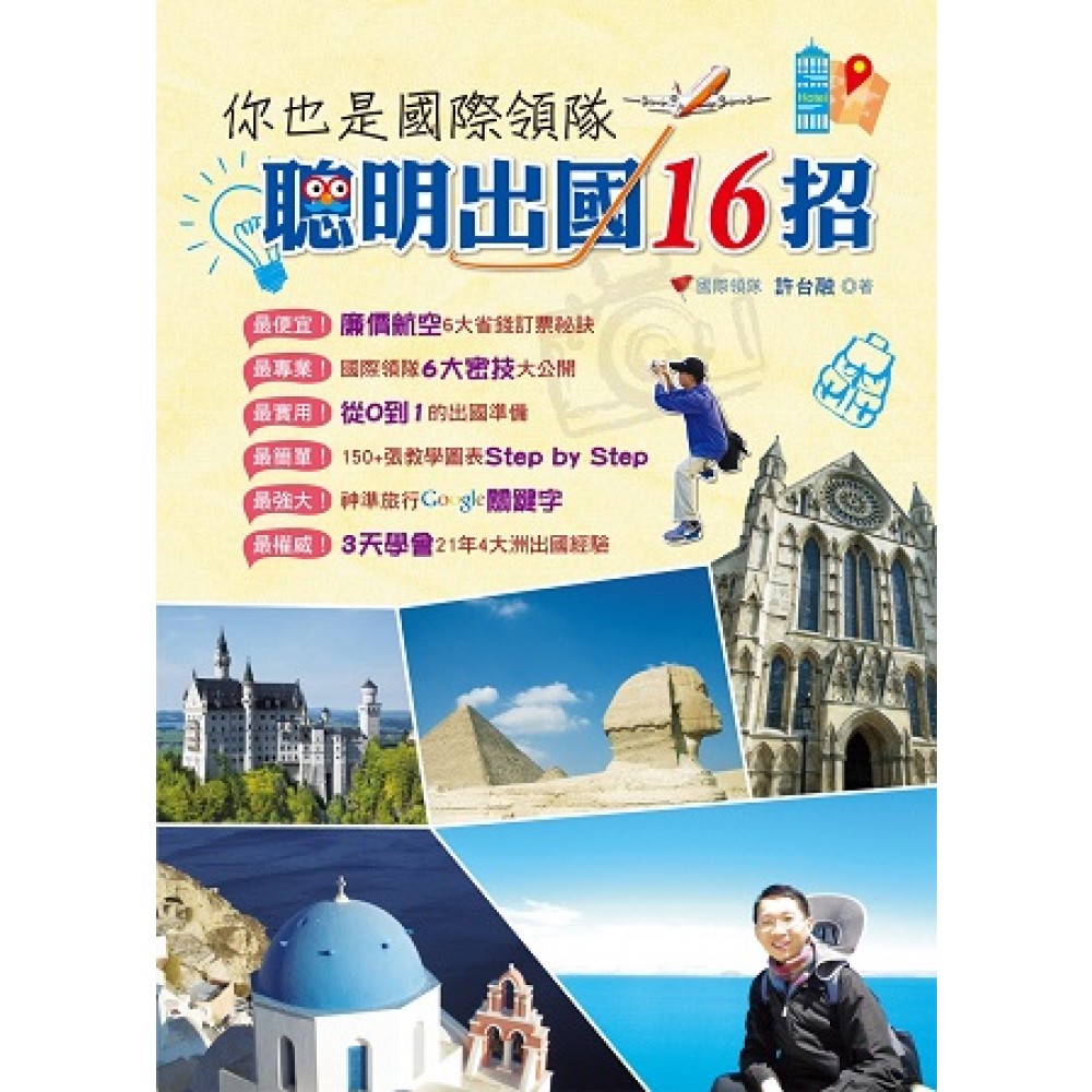 I plan travel; therefore, I exist. 皇家國際運通優秀的特約領隊許台融要出書,將他自身多年的旅遊經驗跟讀者分享,台融將初稿送來,請我看看並寫序。在讀過新書初稿之後,我發現這本書把規劃出國旅遊的重點介紹的非常清楚,深入淺出,細節整理的有條不紊,在此我樂於跟各位讀者推薦分享這本旅遊新書。 我投身旅遊業將近四十年,帶領客人走過世界無數的美景,旅遊是我的工作,也是我的興趣,更是我的使命。要出國之前,妥善規劃行程非常重要,首先要瞭解自己出國的需求與預算,然後擬定出國的目的:探索古蹟?休閒度假?品嚐異國美食?接下來針對出國目的來規劃行程,確定出國天數,著手訂購機票、預訂當地旅館、餐廳等,然後排定景點,研究交通工具,並且製作地圖。上述工作對於出國經驗不多的人來說,具有一定的挑戰性,即便對有出國經驗的人來說,每次規劃仍需要重新摸索。這本旅遊新書集結了作者過去長期自助旅行以及專業帶團的經驗,帶領讀者逐步規劃自己的夢幻行程,瞭解出國的各種專業知識。書中以豐富的圖文教學,將繁複的旅遊產品預訂過程做了詳盡的示範,其中甚至有些是專業國際領隊的技巧,作者都大方分享,讓本書讀者出國旅行的能力,也能具有專業國際領隊的水準。 本書是非常好的旅遊工具書,幫助讀者減少出國前規劃行程的時間,因而讓讀者有更多精力在出國前研究當地的歷史與地理、藝術與文化,從此出國不再是只有吃喝玩樂,還有更豐富的人文內涵。 相信本書能夠大幅提昇讀者出國旅行的專業技巧,不管您是跟團或者是自助,這都是一本非常值得擁有的旅遊百科全書。預祝皇家領隊許台融新書大賣,也預祝各位讀者下一趟旅行更豐富、更愉悅! 溫業濤(皇家國際運通總經理)