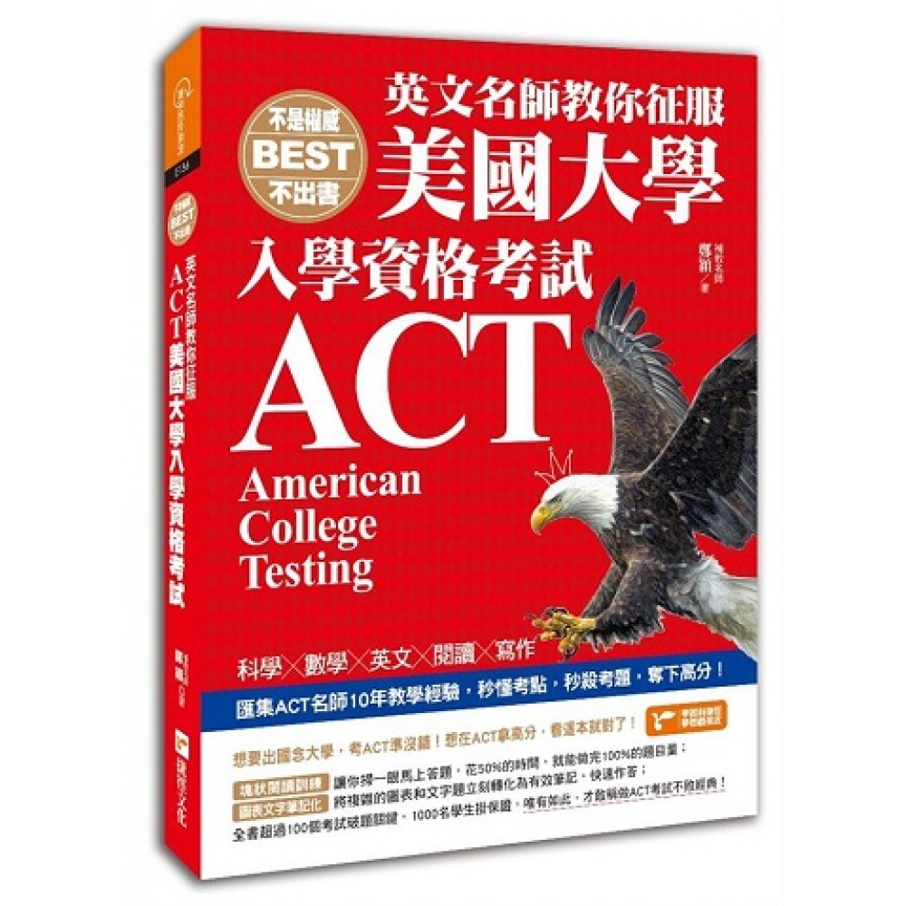 為了唸美國大學,你還在準備New SAT? 亞洲學生最吃香 ╳ 比SAT還容易拿到高分 ╳ 申請學校範圍更廣 美、加、英、澳大學皆認可的成績依據-ACT入學考試 是你飛越太平洋更好的跳板! 【塊狀閱讀訓練】讓你花50%的時間,就能做完100%的題目量; 【圖表文字筆記化】將複雜圖表題立刻轉化為有效筆記,快速作答; 【關鍵字秒殺解題法】詳列常考混淆關鍵字,一眼掃過、分數到手; 【假重點陷阱提醒】考題給的提示別照單全收,小心偷雞不著蝕把米; 以上不過是全書超過100個高分重點中的其中幾項而已, 名師領進門,修行在個人,翻開這一本,ACT考試隨心所欲、拿到高分! 想要出國念大學,考ACT準沒錯! ACT比New SAT更有前車之鑑可以參考,不必當考試白老鼠! 以前的人不考ACT,是因為當時ACT僅適用於申請美國中西部大學。然而時代不同了!ACT的考試成績現在已被全美3000多所大學(當然包含哈佛、耶魯、哥倫比亞大學等名校)接受,更不用說連英國,澳洲,加拿大等英語系國家學校了!考題更人性化、更符合大學需求、考試人數持續增加,讓以往熱門的SAT也黯然失色,決定對考題做了大調整。所以,與其面對全新、對毫無參考頭緒的New SAT考試(估計還需3年考題與制度才能成熟),還不如快點將眼光放在已有10年資料可準備的ACT上,一舉攻佔大學灘頭!另外因為亞洲高中生普遍數理程度較好,ACT將數學與自然科學考科獨立出來,正是釋放了一個大好機會給亞洲考生,與其在New SAT裡和歐美學生廝殺,不如換個跑道,在ACT中好好發揮長項,拿到高分! 想在ACT拿高分,看這本就對了! ACT考試10年教學經驗名師,最知道如何找到關鍵、發現考題的突破點! 【塊狀閱讀訓練】告訴你ACT閱讀題其實有規律,只要掃過標題→每段的頭尾→全篇的結尾部份,以塊狀閱讀方式,就可以輕鬆作答,省去讀一堆廢話的時間,花50%的力氣,做完100%的題目量! 【圖表文字筆記化】教你使用最簡單的記號,快速整理好囉哩吧嗦的文字敘述或圖表。例如:”yellow if the PH is less than 6.0 or blue if the PH is greater than 7.0”這句話,只要用PH<6=Y; PH>7=B,這樣在解答時絕對更有效率! 【關鍵字秒殺解題法】經統計過後,詳列這10年來常考超高頻率混淆關鍵字,比如its/it’s,lay/lie/laid,affect/effect,rather than/other than等等,只要一眼掃過、馬上分數到手! 【假重點陷阱提醒】考題給的提示別照單全收,比如閱讀題中常會有劃底線的關鍵句,這時最好就將關鍵句所在的整段都快速瀏覽一遍,因為ACT考試很喜歡設陷阱給只看關鍵句的考生,小心偷雞不著蝕把米呀! 上述這些舉例,都是官方以及學校不會告訴你的應考訣竅,所以,就讓柏克萊大學語言學碩士出身的鄭穎老師,以自身英文教學專業、匯集古往今來考生們的經驗,將ACT五大考科:【英文】【數學】【閱讀】【科學】【作文】超過100個以上的考試重點細細說給你聽,從此你就不必自己瞎子摸象,越摸越模糊,找到每一種題型內的「重點」,就算其他單字看不懂、公式記不得,也能夠用「猜」的拿到重點分數,以有限的應考次數順利登頂絕非夢想!