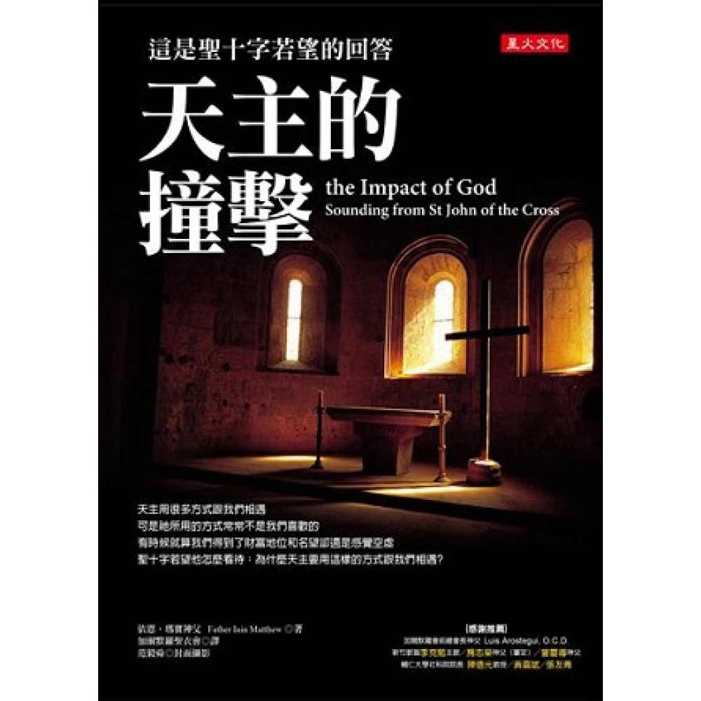 前言 寫給中文讀者 加爾默羅會前總會長神父Luis Arostegui 親愛的讀者,關於依恩.瑪竇寫的這本《天主的撞擊》,我願和你們分享我的一些看法。 或許有的人會以為,這是一本入門書,介紹聖十字若望,他是十六世紀西班牙普世公認的詩人和神祕家。普世公認,因為他是人文及靈修的傑出詩人,尤其是位神祕家,他尋求超越界,這無限的領域是開放的,也是人類的目標。他是創始者,或說指示者,指出他所覺察和活出的這條達到真實之境的道路。他不像一個超人,一位遠距的靈修英雄,而是,活在人群之中,一位質樸單純的人。 為此之故,無論如何,閱讀及善用本書之後,我確信這決不是一本入門書。此書帶領我們深入聖十字若望的著作,詩與散文,揭示書中表達的人性與靈性的經驗。本書繼續陪伴我們,甚至當我們直接閱讀聖人的著作時。本書的作者是位好嚮導,他已達到集大成的綜合,對於這位詩人和神祕家的經驗與思想,具有透徹的洞見。 作者深入聖若望,探究並熟識他的著作、生平及人文背景,同時採用其他學者的幫助;不過,最重要的,他衷心關注的是,今日及永遠的人性真實(human reality)。 因此,這個探究,不只是個學術性的工作:作者從聖人的省思中,探究什麼是人性很深的需求,以及今日的人性需求,且以他的經驗和思想來答覆。依恩自創一格,以他充滿活力的見解詮釋聖十字若望。他從聖人尋求啟迪,帶著他自己的生命問題,即今日男人和女人的問題。 本書研讀聖十字若望,然而書中最關切的事,是至高的渴望,即生命的目的,及神祕家聖人的著作。那麼,對聖若望而言,尋求生命,就是在他的生命中和天主相遇:而他所經驗的生命是個創傷:「祢隱藏在哪裡?」「祢宛如雄鹿飛逝,於創傷我之後」(靈歌1)天主不見了,正是愛的傷口出現時。不過,聖十字若望同時看出來,體驗出人以多種的方式病了。若望憑他的經驗,懷著愛的信德說出:「天主的愛是靈魂的健康」(靈魂歌11.11)。為何這樣呢?因為「這愛是我們受造的目的」。(靈歌29.3)為此,我們了解,聖人鼓勵受磨難或負重擔的人們,迎接他們說:「要喜樂於天主,(這些磨難或重擔)是妳的益處和健康。」(信20) 依恩瑪竇也尋求天主,超越的這一位,「祢」經常臨於個人的生命內。他尋找祂,為了愛和關心同情那些需要呼吸的人。當然,作者深愛和清楚闡明的,是存在個人內的善良、仁慈和美,這存在於受造界和人類的關係之中,如詩人聖十字若望,以充滿光榮的洞見和感受所詠唱的。不過,另一方面也是真的,在世界和個人的戲劇裡,在經歷這一切壯麗的真實當中,最主要的,人人都忍受著一個傷口的痛苦,這個傷口只有天主的愛能治癒。然而,在這個光明下,生命和宇宙的美變得光彩奪目,耀眼萬分。「天主的肖像」,祂的聖子的「凝望,替世界和諸天穿上美麗和喜悅的衣裳。」(靈歌6.1) 依恩.瑪竇承認,聖十字若望就像歷史中的任何人,屬於某一時代和地方,受限於某一心態、哲學學派和傳統的克修觀念。不過,作者卻能以準確和純真的眼光,透徹並捕捉神祕家教導經驗的主旨。他懷著相同的誠摯之情,關於個別的人及全人類,從他自己經驗談論人的真實(the human reality)。這個實在論(realism)是回應聖十字若望智慧的基礎,是真實的,不是理想主義,是對一位人文的靈修聖師的回應。依恩從回響聖若望中尋獲答案,我們會讀到,了解,且得到解釋,一再地分享給我們人存在的真實,而且也是脆弱、黑暗和受誘惑的。 因此,本書含蓄地闡明聖十字若望對生命的樂觀主義,其基礎是信仰愛的天主,祂總是來尋找個別的人。這不是崇高的哲學觀念,而是納匝肋人耶穌的生命、死亡和復活的一個真實。為此,世界和個人及其黑暗,不是痛苦的地方,反而是淨化的相遇之處:生命邀請並引領達到這人的「更深處」,在那裡是他的健康,即神性之愛。天主的存在超越一切,同樣也在「最甜蜜的耶穌」(靈歌40.7)內來臨,「天主已經給了我們祂的聖子,祂的惟一聖言,因為祂沒有其他的什麼,祂在這獨一的聖言內,只一次告訴了我們所有的一切,祂再沒有什麼更多的要說了。」(山2.22.3) 閱讀本書時,讀者會瞥見兩個真實:1)神性的單純和本然。是神性的,以人性的方式,呈顯在耶穌的生命和位格中,今日祂尋找我們,藉著我們人性的存有,並在我們人性的存有內,祂親自委順於我們。2)為此,在本書的講解中,一再出現令人讚嘆的觀念,指出聖十字若望對於「個人」(the human person)的洞見。面對生活顯露給我們的平庸或墮落的畫面,在聖人看來,閃耀著這人無限的尊貴,人註定要達到的是與天主愛的結合。「啊!靈魂哪!妳們之受造和蒙召,正是為此尊貴和偉大。」(靈歌39.7) 推薦序 歡愉的傷口 每次提起聖十字若望的著作,都會被《愛的活焰》第二詩節的詩句:「啊! 歡愉的傷口!」(Oh! Delectable wound!)深深感動,依聖人若望自己的註解,「歡愉的傷口」就是「幸福的傷口」。箇中理由,因為傷口來自天主的愛火,因此,越痛越健康;而最佳療方,不同於物質火傷的抹藥止痛,卻是任它去痛。 真愛就是走出小我,以「所愛」為中心,走出的過程難免產生痛苦,而痛苦正是「自我超脫」的寫照,所以有「越痛越健康」的悖理。這種「愛的悖理」可以補充《雅歌》第五章中「因愛成疾」的想法,反映一種「愛空」的真理。佛家有「悟空」的說法,也就是對「緣起性空」的覺悟;基督宗教卻有「愛空」的真理,聖愛超脫人性條件,