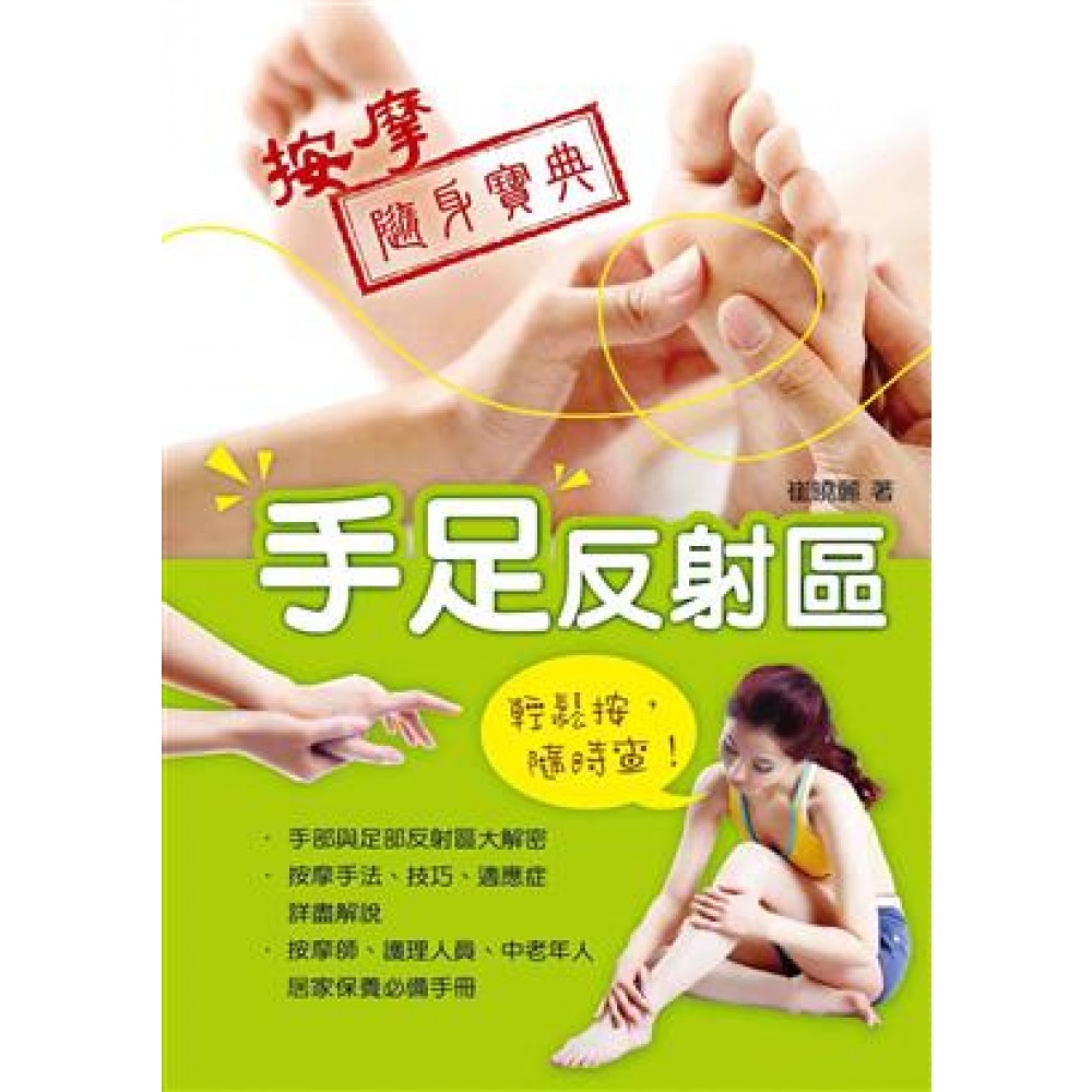 輕鬆按、隨時查! 中醫行之有年的手足按摩養生法 疏通經絡、調理身體機能最簡便的方式 繼一推出即熱賣的《糖尿病飲食速查隨身寶典》後,上奇時代的另一本「隨身寶典」系列書籍隆重上市! 古籍《五言真經》云:「竹從葉上枯,人從腳上老,天天千步走,藥鋪不用找。」說明了健康長壽始于足的觀念古已有之。中醫認為,人體是一個有機整體,身體內部的臟腑、氣血、經絡的生理活動和病變都可以在身體的某一局部表現出來;「手」即是觀察機體病變最直觀的部位,而「足」則集合了身體全部器官的反射區,藉由按摩反射區刺激內臟、內分泌、神經等系統,就可有效幫助清除體內毒素和廢物,增強免疫力與自癒力。 本書內容囊括所有手部、足部反射區的詳盡解說,以及按摩方法、技巧、功效及適應症,並有簡單隨時可操作的三分鐘足療養生、三分鐘手療養生等實用小單元。特別設計的掌中精裝本,不管是擺在案頭、床邊或放在包包裡隨身攜帶,都非常方便,是一本適合全家大小的居家保養必備手冊! 本書特點 ◎ 書籍尺寸10.5*15公分,手掌大小的精裝本,隨身攜帶、查閱超方便 ◎ 手部與足部反射區大解密 ◎ 按摩手法、技巧、適應症詳盡解說 ◎ 是一本按摩師、護理人員、中老年人居家保養必備手冊