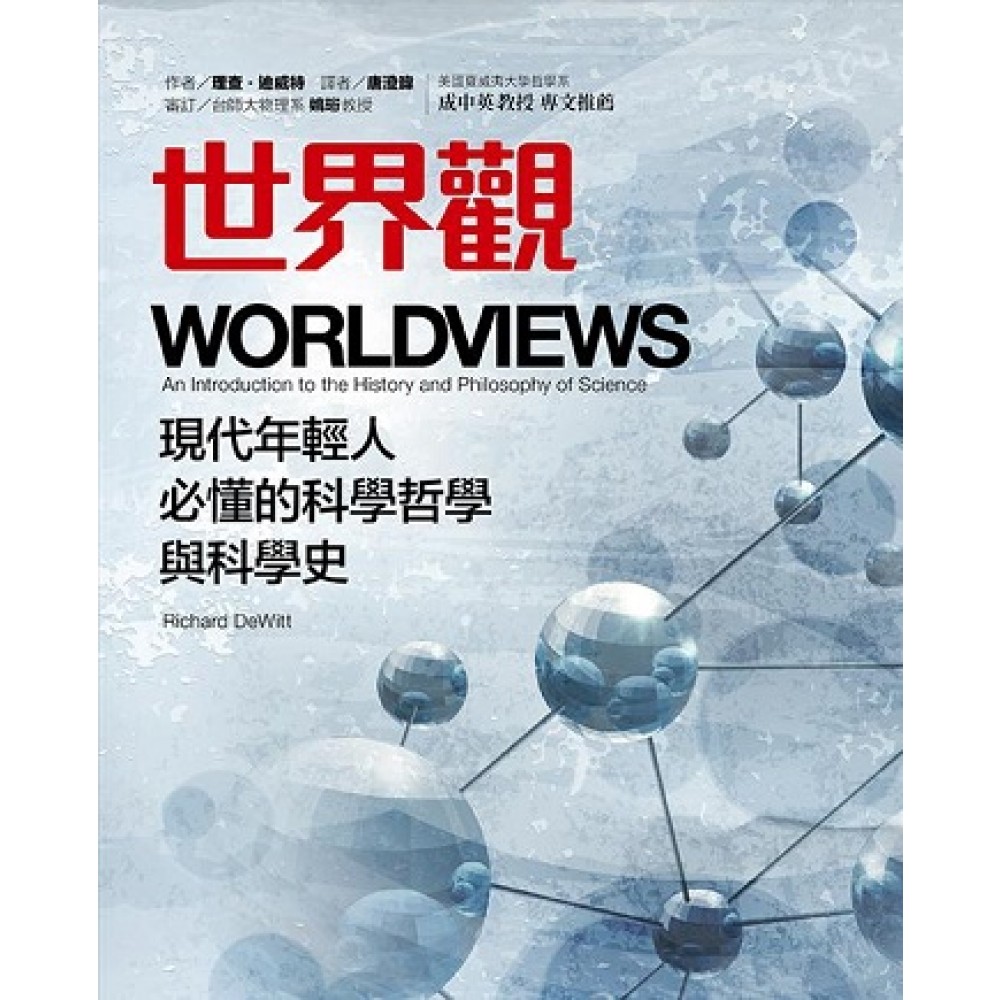 美國夏威夷大學哲學系教授 成中英 台大哲學系教授 苑舉正 台大物理系教授 高涌泉 台師大物理系教授 姚珩 PanSci泛科學總編輯 鄭國威 「在二十多年的教學中,這實在是我看過最好讀──也是最適合教學──的科學史與科學哲學入門。DeWitt的闡述與討論──顯然是由大量課堂教學經驗所磨練而來──格外清楚,且藉由我所見過最棒的示意圖做了有效補充。DeWitt藉此讓複雜的想法和發展得以令人信服且直截了當,對於大學生以及首度接觸科學史與科學哲學的人尤其如此。」──查爾斯˙艾斯(Charles Ess)德魯里大學 「Richard Dewitt的《世界觀》是優異的入門書。此書繞著幾個主題──傳統及其推翻──組織起來,足以吸引大學生。本書在史料上旁徵博引,在哲學上明智合理。最棒的是,本書充滿從物理科學中精巧取用的案例,使非專家也能易讀。理科生透過這本《世界觀》接觸的哲學思想,能夠獲得一如真科學──牛頓、愛因斯坦、哥白尼、亞里斯多德──的哲學思想印象,而不是一些被哲學家竄改到變質以屈服於哲學家自身工具之下的科學替代品。」──蘿拉˙羅徹(Laura Ruetche),匹茲堡大學 「這是一本根據世界觀及其元素,極其清晰的科學史與科學哲學入門(及整理)......此外本書也同時從科學和哲學的角度旁徵博引,因此極力推薦。」──科學與醫療網路(Scientific and Medical Network) 「藉著清楚易懂的散文,加上有效的圖表和舉例補充,《世界觀》對任何初識科學史與科學哲學的人來說都是一本理想之作。讀者將會發現,DeWitt是一位天分洋溢的作家,具有將複雜的、技術的概念分解為易懂片段的能力,因而讓《世界觀》成為一本讓初階讀者感覺親和無壓力的書。」──《生活科學的歷史與哲學》期刊,28(2) 「作者所展現出此類寫作中難能可貴的清晰,以及作者利用真正引人注目而有用的示意圖,例證了量子論和相對論等深奧概念,都十分值得稱許。有別於其他眾多科學哲學的入門,DeWitt的書同時在史料上旁徵博引、在哲學上深入透徹且十足嚴謹。章節摘要、建議讀物和參考資料也都增進本書價值。」──《選擇:當今學術出版典藏評論》