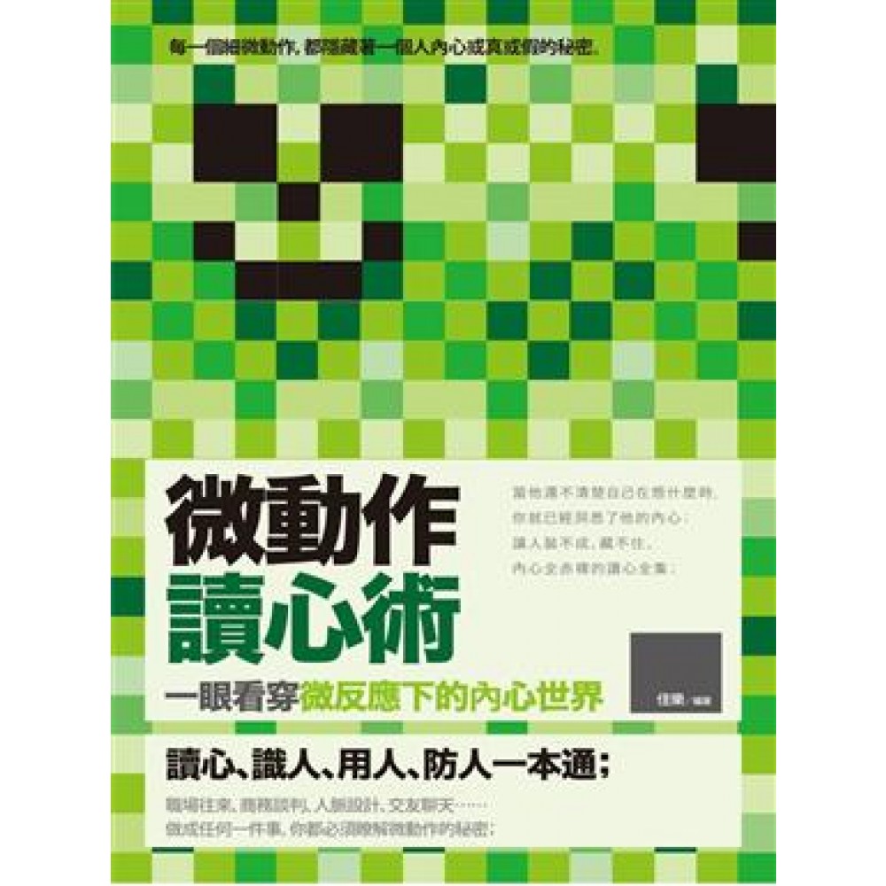 Chapter 1 第一印象,對方是個什麼人 我們在認識一個人後,會有第一印象,我們能從那片刻的寒暄之後,知道對方是一個什麼人嗎? 我們有必要看透對方的內心,確保之間是陌生人,還是應該交往下去。 1——1、怦然一動之人有氣質 1——2、身體的距離是心的距離 1——3、經常遇到的七個瞬間 1——4、人類六種通用情緒和表情 1——5、握手時手心出汗是內心不平靜 1——6、吞嚥口水是不安下的掩飾 1——7、說謊時的八種微反應 Chapter 2 先觀其面,映射內心 人們常說“相由心生”,面部的表情便會透露出內心的奧妙,無論是眼神、鼻孔,細微的變化便欺騙不了人。 我們要很好地琢磨臉上的表情,不被這些真假的臉譜所迷惑,要看穿內心,瞭解到內心掩飾下的面具。 2——1、瞳孔放大表明其興奮 2——2、鼻子冒汗代表心理焦慮 2——3、不經意間微笑是外柔內剛 2——4、在乎你的人會為你哭 2——5、迷茫時下的錯愕是為難 2——6、雙目對視視線遊移表明有隱瞞 2——7、低垂眉表示厭煩和憤怒 Chapter 3 語言,道出內在的“天機” 每一句話都是經過大腦的神經發出來的,正是這一句話可以看出一個人的素養。 人們會因為品格、學識等不同,說出不同內涵的話,我們有必要一眼洞穿,知道這些話語所潛藏的內在感受。 3——1、愛說自己好希望被喜歡 3——2、說錯話隨即道歉是悟性高 3——3、說話聲音透露出的內心情感 3——4、總愛許諾者並不真誠 3——5、前言不搭後語者是有隱情 3——6、直呼名字不帶姓的人讓人親切 3——7、愛打斷別人說話的人表現慾望強 Chapter 4 舉止奧妙,隱藏著素質 人們的舉止會表達他們的內心感受,一言一行,一舉一動,看起來簡單卻隱藏著大奧秘。 我們有必要在舉止上破解某個人的內心,這些是可以通過外觀的體現去滲透的。 4——1、總愛蹲著是封閉自己 4——2、行走姿勢是個性的速寫 4——3、托腮微動作後的心理狀態 4——4、兩根手指敲桌子表示有自信 4——5、雙手交叉等待的人希望被理解 4——6、肩膀舒展是決心和責任心的表現 4——7、雙臂交叉抱胸前是自我防禦的象徵 Chapter 5 小動作,折射著意願 最容易被忽略的是人的小動作,這些小動作是在刺激源的刺激下,更直接、準確地反映。 我們就有必要在上面下功夫了,每一個小動作都有它的起因,都來之於心的感受和變化。 5——1、聽話時頭轉向一邊是在開火車 5——2、腳尖勾起是心情放鬆或壓抑 5——3、雙手一攤以示服從與妥協 5——4、嘴角上挑微動作的含義 5——5、眨眼頻率降低是不屑一顧 5——6、摘眼鏡扔到一旁是否定 5——7、用手觸摸身體的心理微活動 Chapter 6 愛好,區別著個性 不同的人會有不同的愛好,這些愛好代表著相應的個性。沒有兩個人的愛好是相同的,便可以從愛好上瞭解他的特性。 愛好間接地和心態掛鉤,會有意無意地影響並左右著人們的思想和行為。 6——1、穿著光亮是性格開朗 6——2、暴露穿著是想吸引目光 6——3、由開車習慣瞭解個性 6——4、運動不同暗示不同心理 6——5、喜歡借錢有責任感嗎 6——6、戴墨鏡是不想被看到真我 6——7、對首飾的選擇折射不同的內心 Chapter 7 看透親朋,生活中的博弈 你常為親朋的一些小動作、小情緒而摸不著頭腦嗎?你常為不能和他們更好地交流而煩惱嗎? 他們很少會直接地反映給你他們的真實想法,不過,他們的一些外在卻透露了他們這些不可言傳的秘密。 7——1、腿腳越抖表明心裏越著急 7——2、遇到熟悉人躲避不合群 7——3、歪腦袋看是在感興趣 7——4、不斷搓鼻子是內心緊張 7——5、去夜店愛談笑的人易花心 7——6、仰臥呈大字伸開的人通情達理 7——7、搶坐計程車前頭人的心理 Chapter 8 社交,領悟對手生存策略 人需要和他人交往,卻知人知面難知心,尤其是在社交場合之中會遇到各色的人物。 我們要想更好地贏得人緣、站得住腳,完全看透某個人便顯得尤為重要。 8——1、對你搖頭可能是要幫助你 8——2、以示弱鬆懈對方防備 8——3、喝酒後的各種醉態 8——4、拿酒杯的姿勢發現的資訊 8——5、聽話的女孩捂住嘴巴是很歡喜 8——6、不停抓撓耳背表明內心焦慮 8——7、擁抱中的真情與假意 Chapter 9 心理戰術,職場中的對決 職場如戰場,一個不經意間的疏忽就有可能讓你潰不成軍。 為了成為職場上的常勝將軍,你有必要成為讀心的高手,才有可能不被淘汰或者被算計。 9——1、聽懂老闆的真實心思 9——2、通過筆跡和電話識人性格 9——3、承受巨大壓力下的摒住呼吸 9——4、從側面拍肩膀是表示鼓勵與肯定 9——5、手插褲兜是不自在的約束行為 9——6、通過打電話猜測對方心思 9——7、頻繁點頭表示不耐煩 Chapter 10 明辨愛情,對方後的真情實感 愛情就像玫瑰,固然美好但難免會有傷痕。而愛情之間的緣分也很奇妙,誰將是你最終牽手的人呢? 茫茫人海,終會有某個人掩藏不住他的癡心,那個人就可能和你是有情人。 10——1、眼神流露出失望是渴望再被關愛 10——2、舉止不俗的人值得託付或結交 10——3、不停聯繫你的人是喜歡你 10——4、舔嘴唇的女朋友的心思 10——5、女性性情奔放的暗示動作 10——6、有異常舉動人的心理 10——7、愛情中只說不做是在食言