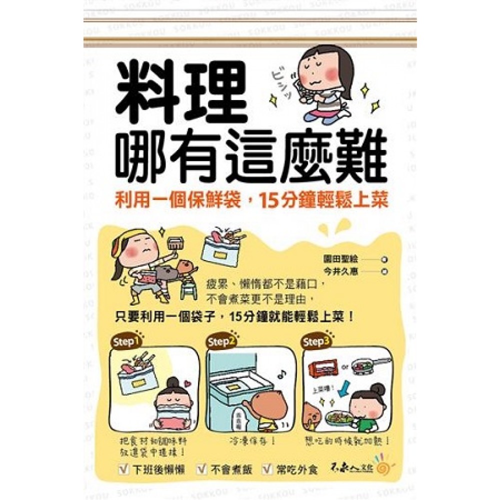 只要一個保鮮袋, 加上15分鐘的料理時間, 所有夢想,一次達成! 每天都要吃飯, 所以更應該吃得開心、美味又營養! 親手為自己、為家人、為愛人料理, 是一件幸福的事! 一道好吃的料理, 不需要花太多的時間與精力, 只要利用一個保鮮袋, 15分鐘就能夠輕鬆上菜! 不管你是每天下班都精疲力盡,想到煮晚餐就頭疼的煮婦或煮夫, 還是對於外食或是冷凍熟食已經吃膩的單身貴族, 或是想要擺脫「黑暗料理」之名的料理新手, 只要利用一個保鮮袋進行調味與冷凍, 加上15分鐘的料理時間,就能輕鬆上菜! 《料理哪有這麼難:利用一個保鮮袋,15分鐘輕鬆上菜》 滿足你 / 妳想要煮頓營養的餐點餵飽家人的理想, 完成你 / 妳想要煮頓好吃的食物犒賞自己的願望, 達成你 / 妳想要在心愛的人面前大展廚藝的夢想, 讓妳成為「上得了廳堂,下得了廚房」的完美女性, 讓你成為「率先抓住另一半的胃」的新好男人。 本書特色 Step 1 把食材和調味料放進袋中搓揉! Step 2 放入冰箱,冷凍保存! Step 3 想吃的時候就加熱!上菜嘍! 簡單的三個步驟, 讓疲累、懶惰都不再是不煮飯的藉口! 零失敗的食譜料理, 讓不會烹飪不再成為拒絕下廚的理由!