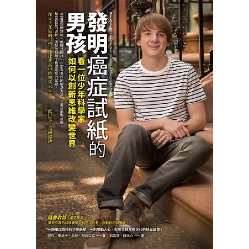 一位15歲的平凡少年,竟改寫了人類醫學史; 他發明的癌症檢測試紙,將拯救世上無數生命! 一顆璀燦耀眼的科學新星,一則觸動人心、影響全球年輕世代的熱血故事 ★歐巴馬也讚嘆!亞馬遜讀者5顆星破表好評! 當一個人全心專注在一件事情上,那種力量,會強大到令人無法想像。 科學就是他生命中的熱情,你呢? 平凡的中學男孩傑克.安卓卡,靠著對科學的熱愛、究極的精神與驚人毅力, 抱持「一定有更好的解決方法」的理念,勇於面對挑戰。 年僅15歲的他,竟跌破眾人眼鏡,發明了拯救更多生命的方法! 傑克.安卓卡從小熱愛科學,認為科學能帶他一窺全然不同的世界,並解決許多問題。他的叔叔被診斷出罹患胰臟癌時,癌細胞早已擴散,治療後仍不幸離世。當時只有14歲、原本對生物與醫學一知半解的傑克,因此投入早期檢測胰臟癌的研究之中。 為了尋找合適的實驗場所,他寫了兩百封email給醫界相關教授,只有一封得到正面回應!隔年,他真的發明了比當前醫學檢測法更有效、成本更低的癌症試紙,能讓「癌症之王」——胰臟癌——的潛在患者,在罹癌初期就發出「警報」,使術後生存率幾乎達到百分之百!傑克因此獲得英特爾國際科學展最大獎,甚至受邀到白宮,成為國情咨文演說的座上賓! 人生的難題,靠自己解決;堅定的毅力與信心,正是成就關鍵! 這本自傳不只是個風光的成功經驗,更是一則青少年克服憂鬱、自我懷疑與校園霸凌,並在科學領域闖出一片天的動人故事。面對生命中的苦澀與艱難,他是如何處理?又是如何堅持對科學的熱情,終於在世界舞台上發光發熱? 科學少年有笑有淚的成長歷程,將成為年輕世代實踐自我、改變人生的指南;也是現今教育體制下,所有家長及老師翻轉教育觀念的契機!