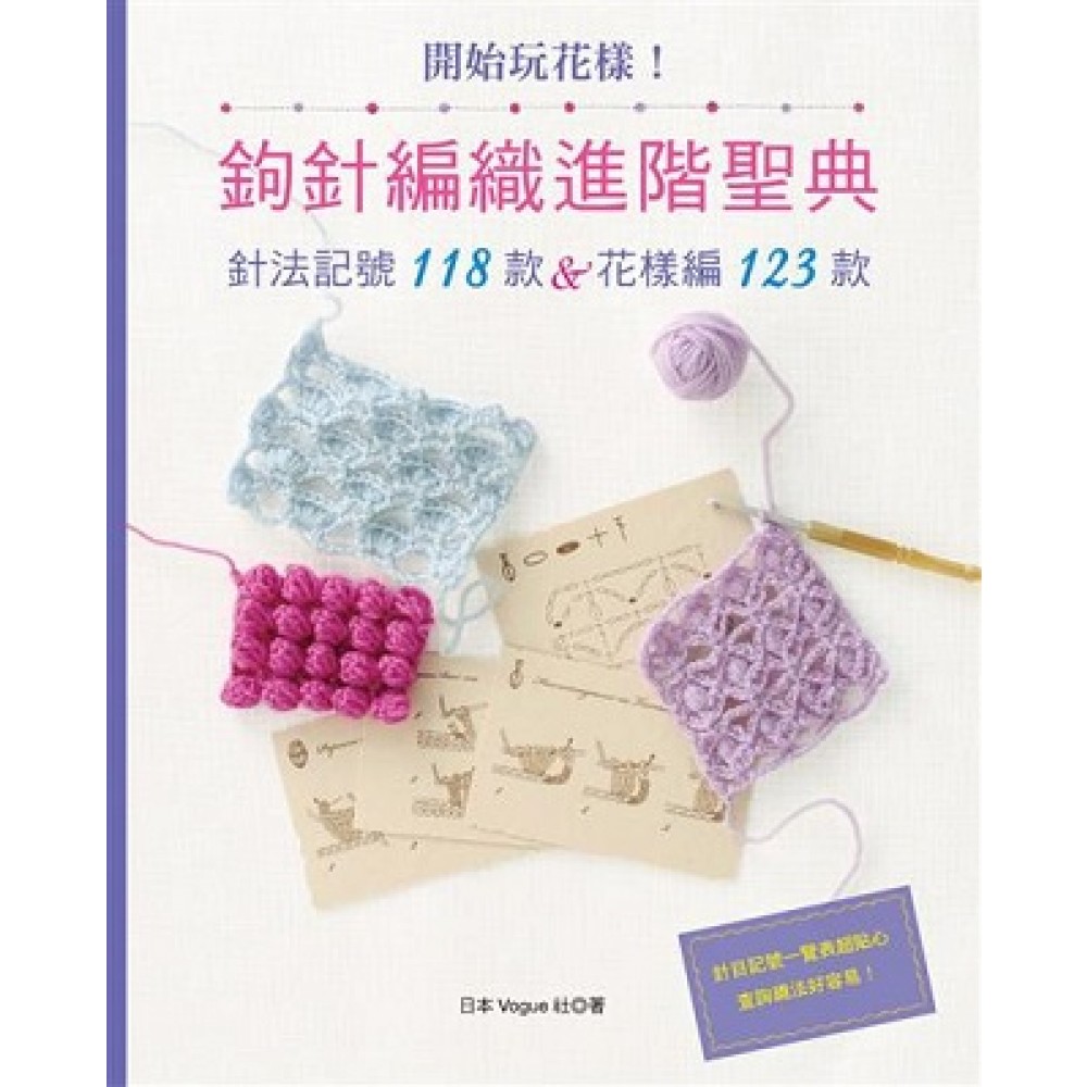 鉤針編織針目記號速查一覽表 p.4 基本針法 p.6 花樣編款式…7 鎖針…10 引拔針…10 短針…11 中長針…11 長針…12 長長針…12 三捲長針…13 四捲長針…13 由1針鉤出的針法(加針) p.14 花樣編款式…15 2短針加針(加針)…18 2短針加針(挑針鉤織,中間鉤1鎖針)…18 2短針加針(挑束鉤織,中間鉤1鎖針)…18 3短針加針…18 2中長針加針(挑針鉤織)…19 2中長針加針(挑束鉤織)…19 3中長針加針(挑針鉤織)…19 3中長針加針(挑束鉤織)…19 2長針加針(挑針鉤織)…20 2長針加針(挑針鉤織,中間鉤1鎖針)…20 3長針加針(挑針鉤織)…20 2長針加針(挑束鉤織)…21 2長針加針(挑束鉤織,中間鉤1鎖針)…21 3長針加針(挑束鉤織)…21 松編.貝殼編.畝編.筋編 p.22 花樣編款式…23 5長針加針(挑針鉤織)=松編…26 4長針加針(挑針鉤織,中間鉤1鎖針)=貝殼編…26 3長針加針(同短針,在同一針目中鉤織)=松編變化款…26 5長針加針(挑束鉤織)=松編…27 4長針加針(挑束鉤織,中間鉤1鎖針)=貝殼編…27 3長針加針(挑短針針腳鉤織)=松編變化款…27 6長針加針(挑束鉤織,中間鉤2鎖針)=貝殼編…28 短針的畝編.筋編…28 中長針的筋編…28 長針的筋編…28 使用p.10〜p. 28針目記號組合的花樣編款式…29 合併成1針的針法 p.34 花樣編款式…35 短針2併針…38 中長針2併針(挑2針鉤織)…38 中長針2併針(挑束鉤織)…38 長針2併針(挑2針鉤織)…38 長針2併針(挑束鉤織)…38 短針3併針(鉤織中央針目)…39 短針3併針(跳過中央針目)…39 中長針3併針(挑3針鉤織)…39 中長針3併針(挑束鉤織)…39 長針3併針(挑3針鉤織)…39 長針3併針(挑束鉤織)…39 長針4併針(挑4針鉤織)…40 2長針的玉針2併針(挑針鉤織)…40 3中長針的玉針2併針(挑針鉤織)…40 長針5併針(挑5針鉤織)…41 3長針的玉針2併針(挑針鉤織)…41 長針2併針(挑針鉤織)…41 玉針 p.42 花樣編款式…43 2中長針的玉針(挑針鉤織)…46 3中長針的玉針(挑針鉤織)…46 2長針的玉針(挑針鉤織)…46 3長針的玉針(挑針鉤織)…46 5長針的玉針(挑針鉤織)…46 3中長針的玉針(挑束鉤織)…47 3長針的玉針(挑束鉤織)…47 5長針的玉針(挑束鉤織)…47 2中長針的玉針變化款(挑針鉤織)…48 3中長針的玉針變化款(挑針鉤織)…48 3中長針的玉針變化款(挑束鉤織)…48 5長長針的玉針(挑針鉤織)…48 3中長針的玉針(挑短針針腳鉤織)…49 2長針的玉針(挑短針針腳鉤織)…49 爆米花針 p.50 花樣編款式…51 5長針的爆米花針(挑針鉤織)…54 5長長針的爆米花針(挑針鉤織)…54 5長針的爆米花針(挑束鉤織)…55 5中長針的爆米花針(挑針鉤織)…55 結粒針 p.56 花樣編款式…57 3鎖針的結粒針…60 3鎖針的引拔結粒針…60 3鎖針的引拔結粒針(在松編中央的長針上鉤織)…60 3鎖針的短針結粒針…61 3鎖針的引拔結粒針(在網狀編的中央鉤織)…61 3鎖針的引拔結粒針(在長針上鉤織)…61 交叉針 p.62 花樣編款式…63 交叉長針…65 交叉長針(中間鉤1鎖針)…65 交叉中長針…65 變化交叉長針(右上)…66 變化交叉長針(左上)…66 交叉長長針…66 1針與3針的變化交叉長針(右上)…67 1針與3針的變化交叉長針(左上)…67 引上針 p.68 花樣編款式…69 表引短針…72 表引中長針…72 表引長針…72 裡引短針…73 裡引中長針…73 裡引長針…73 表引長針交叉針(中間鉤1鎖針)…74 表引長針2併針…74 2表引長針加針…75 表引長長針2併針…75 變化款針目 I p.76 花樣編款式…77 Y字針…80 逆Y字針…80 十字交叉長針…81 十字交叉長長針…82 三角編…82 5長針針腳的玉針…82 逆Y字與Y字的組合針…83 變化款針目 Ⅱ p.84 花樣編款式…85 七寶針…87 螺旋捲針…87 短針的環編…88 長針的環編…88 鉤入串珠的方法…89 織入圖案&改換配色線的方法 p.90 花樣編款式…91 改換配色線的方法…94 橫向渡線的短針織入圖案…95 橫向渡線的長針織入圖案…96 縱向渡線的長針織入圖案…97 緣飾(短針的變化款) p.98 款式…99 逆短針…102 逆短針變化款(挑2針)…102 扭短針…103 引上扭短針…103 逆短針變化款(挑1針)…103 掛線短針…104 鉤織線繩 p.104 雙重鎖針(引拔針)…104 雙重鎖針…104 蝦編…105 繩編…105 指編線繩…106