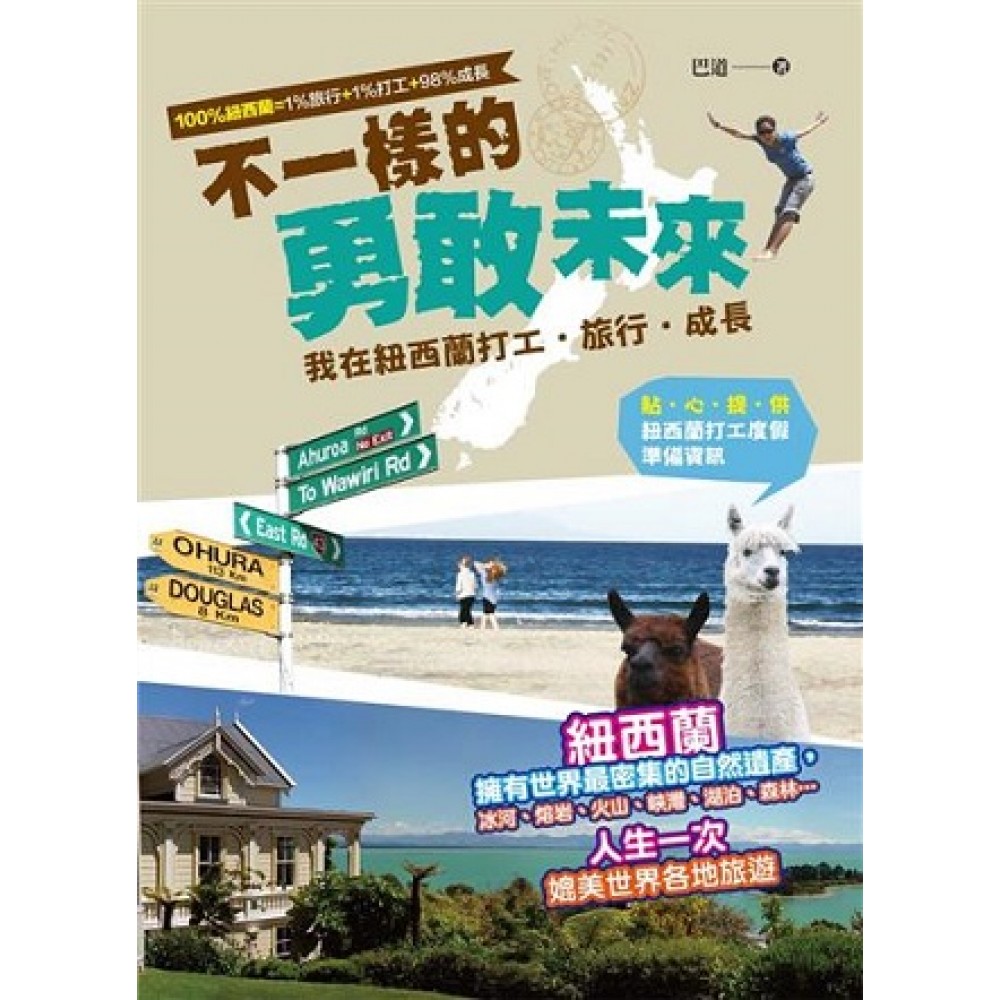 100%紐西蘭=1%旅行+1%打工+98%成長 全世界年輕人都在打工度假,超過30歲就等下輩子! 青春,都有一條非走不可的彎路。 大部分的台灣學子都是去澳洲打工度假,其實在澳洲的隔壁,有個更得天獨厚的世界自然地理教室-紐西蘭。 當你取得了『紐西蘭打工度假簽證』,就可以在紐西蘭待上12個月,相較於澳洲來說,紐西蘭的地理環境更加壯麗與多樣化。你可以在打工之餘,同時體驗北國的冰河場景、島國的峽灣、內陸的森林、草原、湖泊,以及火山、溫泉與熔岩景觀等等。 憑著一股衝勁,巴道毅然離開溫暖的家飛向紐西蘭,一路上從學習開戶、到賭場小試身手、誤打誤撞找到第一份工作、與蘋果、奇異果親密接觸,甚至是後來的農場換宿,都讓巴道體驗有別過去的人生,即使逛街時包包不幸被竊、不見護照的手足無措、到後來遇上車禍,都改變不了早已經愛上紐西蘭這個事實。 讓我們跟著作者巴道的遊記內容,慢慢愛上這個純淨的世外桃源,心,也可以更加壯大。 ★★貼心提供紐西蘭打工度假準備資訊★★