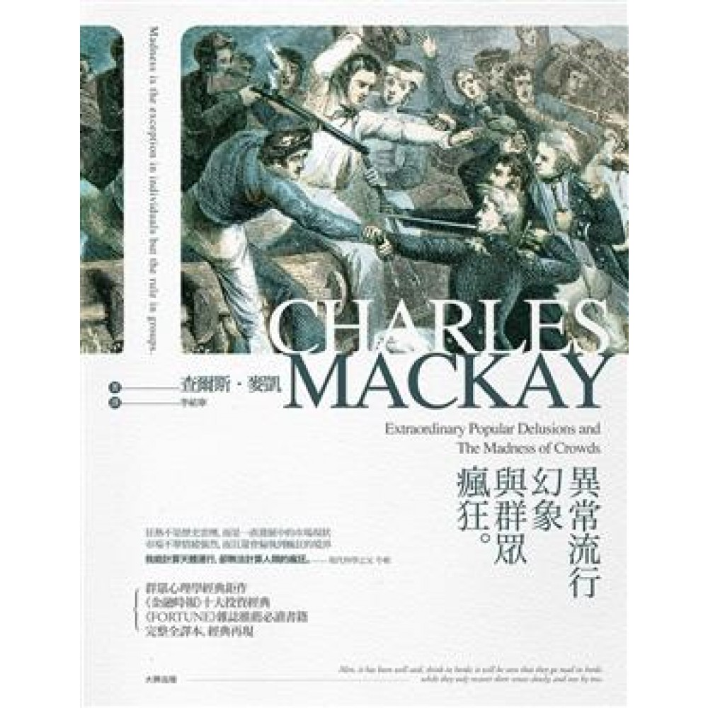 群眾心理學經典鉅作 《金融時報》十大投資經典 《FORTUNE》雜誌推薦必讀書籍 完整全譯本,經典再現 「我能計算天體運行,卻無法計算人類的瘋狂。」──現代科學之父 牛頓 「瘋狂對個人來說是例外,對群體來說是常態。」──尼采 狂熱不是歷史雲煙,而是一直發展中的市場現狀 市場不單情緒強烈,而且還會偏執到瘋狂的境界 《異常流行幻象與群眾瘋狂》是描寫人類社會群體瘋狂現象的經典之作,除了介紹十九世紀三大投資泡沫──密西西比陰謀、南海泡沫、鬱金香狂潮之外,還記錄歷史上著名群眾狂熱事件,以詼諧諷刺的筆法,呈現人類受到欲望、恐懼驅使,盲目喪失理智的行為。連科學家牛頓都身陷「南海泡沫」中無力自拔,幾近破產。無論是一兩百年前,還是現在,人性貪婪驅動下的瘋狂,都讓人似曾相識,人類揮霍欲望與金錢的投機遊戲,也不曾停歇。 全書分為四部: 金融泡沫 當社會大眾把想像力投射在某些看來像是商業與金融領域的創新事物時,投機活動馬上就會出現。這些買賣的基礎不是物品的價值,而是想像出來的「期望值」。泡沫成型與破滅的過程:信任與不信任會無限上綱地膨脹,而希望也能化為恐懼,肆意流竄。 未來的妄想 人們或多或少對未來總是好奇,但唯有在經歷漫長人生歷練後,我們才能明瞭:如果時間對 了、人對了,未來自然會在我們眼前展開。人們對於算命這件事的熱衷程度來看,不論古今都是江湖術士的黃金歲月。 宗教狂熱 每個時代都有其特殊的愚行,有些出於貪婪、有些源自妄想,要不就是因為政治或宗教的狂熱,而十字軍的東征可謂綜合上述所有原因,是人類史上最瘋狂的行為之一。 集體瘋狂 輿論,才是這片土地上最重要的法律。其他的法律無論是人法或神的教條,都不受尊重。俗話說人類是集體思考的動物,他們總是群起瘋狂,但是恢復理智時,則是一個一個慢慢來。許多聰明事總是以愚蠢的方式執行,許多蠢事也是以極其聰明的方式進行。 每個時代都有其特殊的愚行,有些出於貪婪、有些源自妄想,要不就是因為政治或宗教的狂熱。最顯而易見的錯誤,只有最冷漠的人群才能看到。無論哪一個時代,不論是西方還是東方,人類群體中總會間歇性地出現某種癲狂情緒,它們或者發生在一場莫名其妙的運動中,或者發生在金融證券和商業市場上。書中描寫的種種狂熱、欲望、瘋狂,不僅限於那個時代的人們,它更揭示了人性中的瘋狂基因──從眾與貪婪。 目次 序 人類愚行史 第一部 金融泡沫 第一章 金錢熱──密西西比陰謀 第二章 南海泡沫 第三章 鬱金香狂潮 第二部 未來的妄想 第四章 鍊金術士 第五章 現代預言 第六章 算命 第七章 催眠術士 第八章 政治與宗教對髮鬚的影響 第三部 宗教狂熱 第九章 十字軍東征 第四部 集體瘋狂 第十章 女巫狂熱 第十一章 慢性毒殺 第十二章 鬼屋 第十三章 盲目的都會流行 第十四章 神偷狂想 第十五章 決鬥與神裁 第十六章 聖物崇拜 序 人類愚行史 檢視各國歷史,我們可以發現國家與人一樣,也具備特有的怪脾氣與個性,當進入興奮與魯莽的週期時,他們經常對自己的所作所為毫不在意。整個社會在一瞬間,將全體意識凝聚到單一目標上,不顧一切地追逐,數以百萬的人同時對一個幻象深感瘋狂,誓死追求,直到另一個嶄新、愚蠢卻更顯迷人的事物攫取他們的注意力。一個國家可以突然間,舉國上下瘋狂追求軍事榮耀;又可能在突然間,沉淪在某種宗教狂熱中,直至血流成河、哀鴻片野,這才逐漸恢復理智,而後代卻要為此無辜受累。早期歐洲的年鑑曾記錄群眾為耶穌墓穴著迷,大批的人瘋狂湧入聖地;另一時期,又深陷在對惡魔的恐懼中,導致數十萬名受難者因巫術之名而失去性命。還有一時,眾人為賢者之石(傳說可將一般的非貴重金屬變成黃金) 的議題著迷,變成全然的傻瓜直至這陣熱潮退去。更有那麼一段時間,歐洲多數國家認為慢性毒殺敵人是一種可寬恕的罪行。那些反對將利刃刺進他人心臟之人,卻對在濃湯裡下藥的行為毫無愧疚。如此謀殺的行徑在出生良好、舉止端莊的淑女間蔓延,並在她們的推波助瀾下成為一種風潮。某些令人髮指的幻象,卻在那些文明且高尚的國家內,以如同誕下這些陋習的野蠻國度般,蓬勃發展且留存長久,舉例來說,決鬥就是個例子,而人們對預兆與占卜之術的信仰,進一步阻礙了知識的進步,讓這些陋習無法在大眾的觀念中根除。金錢,經常成為引發群眾幻象的根源。那些清醒的國家都曾淪為貪得無厭的賭徒,用一張紙的去向來冒存亡之險。追溯那些最引人注目的幻象,則是本書的目標。俗話說得好,人,和動物一樣,總是集體陷入瘋狂,再慢慢地、一個接一個地恢復理智。 書中部分介紹的內容對讀者來說或許並不陌生,但基於公平,這些議題必須得到應有的關注且不容忽視,因此我希望透過豐富且新鮮的細節,讓讀者在閱讀時更能接受。本書對南海泡沫與密西西比陰謀的記錄,絕對比任何一處的資料來得完整與詳盡;在女巫狂熱的歷史上也是一樣,包含德國在此階段中異常發展的記錄,以及華特.史考特(Walter Scott)男爵在《魔鬼學與巫術之文學研究》(Letters on Demonology and Witchcraft)中,相較之下較少被人觸碰的內容,這些都是此範疇中讓人不寒而慄卻又同時感興趣的議題。 群體幻象出現得如此之早,擴散得如此之快,存活得如此之久,當前的版本或許該被視為幻象的