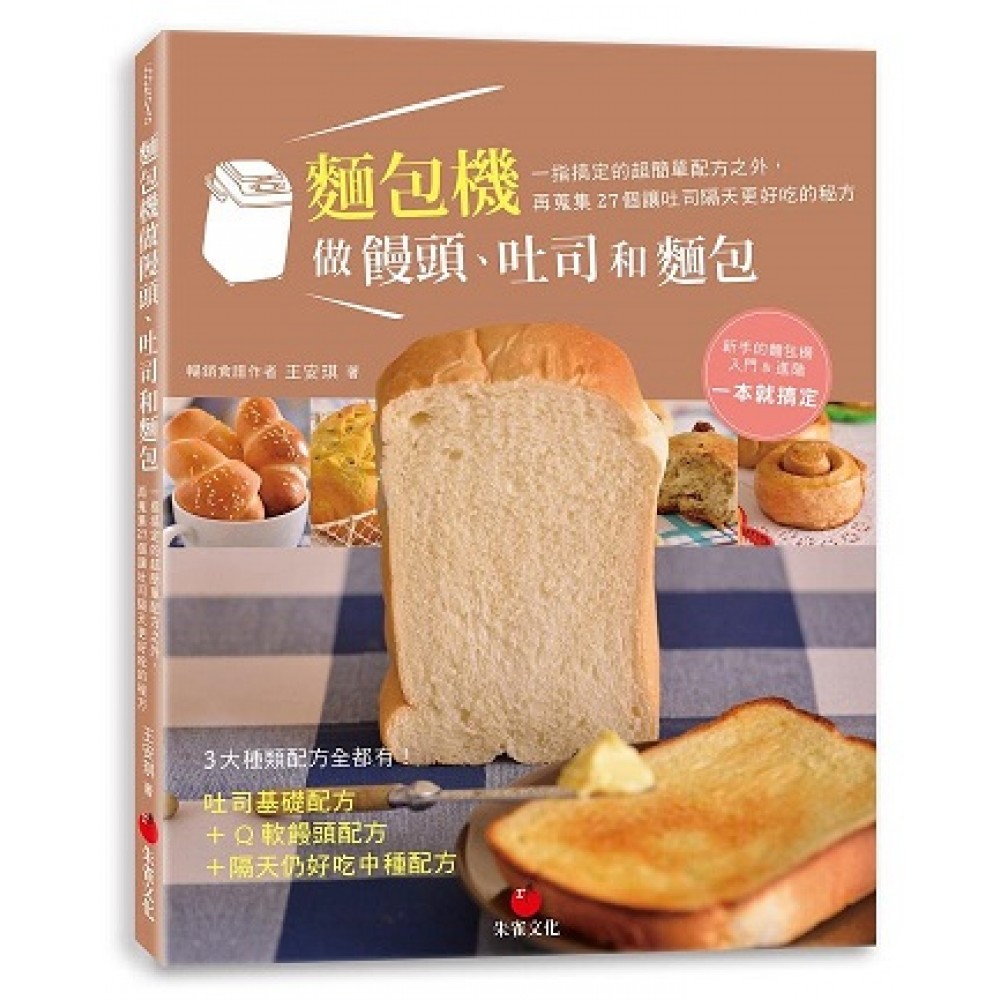 3大種類配方全都有!!! 麵包機基礎配方+Q軟饅頭配方+隔天仍鬆軟好吃中種配方 麵包機新手入門&進階,一本就搞定! 麵包、吐司一直是許多人最愛的主食,不過近來食品安全的問題層出不窮,對市售產品存有疑慮,又想要吃到真正天然健康的食品,自己做是不二法門。麵包機是作者王安琪特別推薦給大家,尤其烘焙新手的最佳烘焙工具,它不僅可以做各種口味的吐司、麵包,甚至能幫助你完成饅頭、披薩、麵條、蛋糕和餅乾,非常實用。她整理多年來操作麵包機的心得,發現麵包機除了製作基本吐司之外,還有3大優點,讓你的麵包機發揮最大的功效。 {優點1}:活用麵包機的攪拌功能,幾乎什麼都能做:攪拌麵團費力費時,加上有時室溫變化易導致麵團失敗,這時不妨讓麵包機來完成工作。只要選好功能鍵,麵包機就能攪拌好饅頭、餐包、披薩和司康麵團,再搭配蒸鍋、烤箱,幾乎想吃什麼都能做。 {優點2}:麵包機做饅頭和包子,Q軟口感一吃上癮。為了避免吃到添加香精、色素的饅頭,本書Part3單元中分享了8款香軟好口感的饅頭,教你如何利用麵包機攪拌好饅頭麵團,搭配蒸鍋,自己做饅頭。 {優點3}:麵包機搭配中種發酵法的超好吃配方,隔天依舊美味。如果你總覺得「用麵包機做的吐司不鬆軟、隔天會變硬。」建議你利用中種發酵法製作吐司麵團。本書的附錄中,特別幫讀者計算吐司的中種發酵法配方,教大家如何用「麵包機+中種發酵法」,徹底解決吐司口感差的問題。 作者活用麵包機設計的美味食譜,內容分為五大類:〈part1黃金比例基本款吐司〉,如白吐司、全麥吐司、布里歐吐司等民生基本款吐司;〈part2料多餡足變化款吐司和麵包〉,加點餡料口感就有差、包括麥香核桃吐司、洋蔥五穀吐司、咖啡奶酥吐司、火腿起司吐司等;〈Part3超鬆軟吃不膩的饅頭和點心〉,換換口味來試試黑糖地瓜饅頭、蔥花捲、起司葡萄乾司康、香蕉蛋糕、瑪格麗特披薩、雞蛋麵條吧!〈Part4點心店最佳銷售口味麵包〉例如熱狗餐包、法式棍子麵包、香蒜培根麵包、肉桂貝果、雜糧佛卡夏、香料弗卡司等;〈附錄-麵包機+中種發酵法,我的吐司更柔軟〉收錄27個吐司更好吃的中種法配方表。一本食譜口感變化多多,準備好麵包機和簡單的食材了嗎?請立即嘗試! 本書特色 ★全自動地攪拌、烘焙到出爐,one touch就搞定。只要把材料都倒入攪拌缸,按下功能鍵就可以等吐司出爐,省時省力又有成就感。 ☆活用攪拌功能,什麼點心都能做!攪拌麵團比較費力費時,新手也可能失敗,不妨讓麵包機來幫忙。只要選好功能鍵,麵包機就能攪拌好饅頭、餐包、披薩和司康麵團,再搭配蒸鍋、烤箱,想吃什麼幾乎都能做。 ★可以做饅頭和包子,Q軟口感一吃上癮。利用麵包機攪拌饅頭麵團,搭配蒸鍋,自己做饅頭。作者分享8款香軟好口感的饅頭,口味絕對經得起考驗。 ☆額外增加27個中種發酵法的超好吃配方,隔天依舊美味。為了讓吐司更可口、隔天吃也鬆軟,作者特別加入「麵包機+中種發酵法」的超好吃配方,徹底解決吐司口感差的問題。 ★分享麵包機使用心得,幫助新手減少失敗機率。親自實驗麵包機多年,累積不少操作經驗,分享易失敗的問答與心得。 ☆從吃不膩的經典口味到麵包店最新的暢銷款,本書都有!不管是懷念傳統口味的台灣麵包,或是嚼勁十足的歐式麵包,喜歡哪種書中都找得到配方和做法。