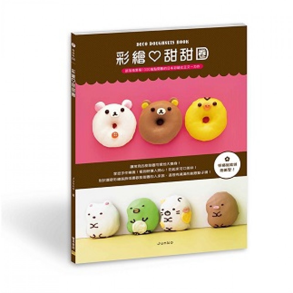日本彩繪女王精心研究出最完美的配方, 油炸甜甜圈鬆軟可口、烘焙甜甜圈濕潤迷人, 再加上清爽不膩的巧克力液, 瞬間賦予甜甜圈可愛魔法, 讓人直呼「卡哇伊」! 本書先教讀者基本的甜甜圈作法,以及巧克力液的包裹方法,有了初步的了解後,再做出各種變化。像是用環狀甜甜圈做出熊貓、綿羊、蜜蜂等可愛彩繪,還有將甜甜圈中間孔洞也一起設計出圖案,做出松鼠、貴賓狗等。另外,在製作烘烤的甜甜圈前,在烤模底部事先畫出圖案或寫上文字,也別有一番趣味。遇到節日時,可以因應各個節日設計圖案或造型,更有過節的氣氛。值得一提的是,這本書還有可愛的拉拉熊和角落生物,讓你照著食譜,也能做出公仔甜甜圈,大家一起來做做看吧!另外,做好的成品可以用書中介紹的包裝方法做成心意小禮物,或是在聚會時當作搭配飲料的點心。不妨開始動手做做看,分享給家人朋友們,讓生活隨時多采多姿且充滿歡樂!