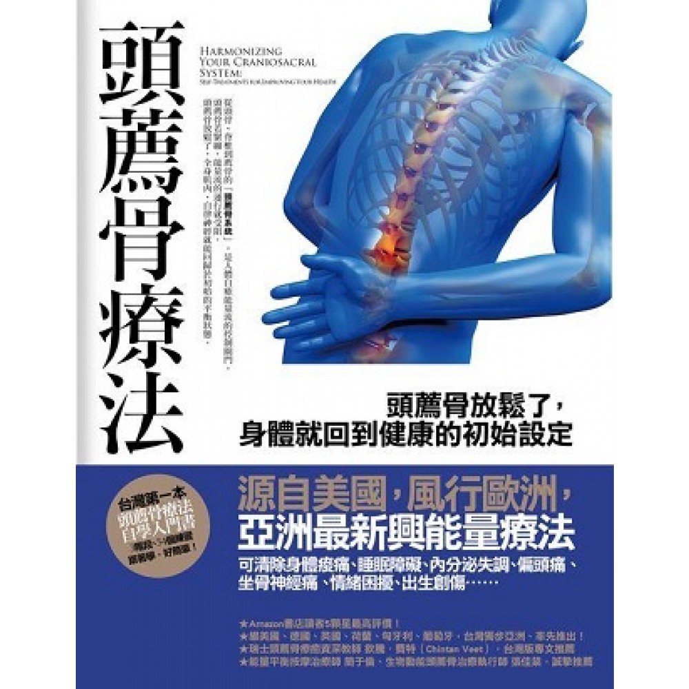 源自美國,風行歐洲,亞洲最新興能量療法 可清除身體痠痛、睡眠障礙、內分泌失調、情緒問題、出生創傷⋯⋯ ★台灣第一本頭薦骨療法自學入門書 ★Amazon書店讀者5顆星最高評價!繼美國、德國、英國、荷蘭、匈牙利、葡萄牙,台灣獨步亞洲、率先推出! ★瑞士頭薦骨療癒資深教師欽騰.費特(Chintan Veet),台灣版專文推薦 ★全彩內頁,3階段、54個練習,跟著示範實作,放鬆好簡單! 從頭骨、脊椎到薦骨的「頭薦骨系統」,是人體自癒能量流的閘門。 頭薦骨越緊繃,能量流運行就越受阻; 頭薦骨放鬆了,全身肌肉及自律神經就能回歸初始的平衡狀態。 「頭薦骨系統」,是我們在胚胎時期即形成的初始結構,以此中樞再延伸發展出各種臟器與肌骨組織。每個人的頭薦骨系統,每分鐘會進行六到十二次、一漲一縮的律動。此一韻律的存在,甚至早於胎兒的心跳與呼吸。 頭薦骨韻律,反應了個別生命體與宇宙的共振。在最自然無干擾的情況下,頭薦骨韻律會為身體帶來宇宙的滋養與能量。可惜,現代人的生活型態:工作與學業上的緊張、壓力、意外事故或創傷等情況,使得它的律動受到重重阻礙。 在這數位時代,我們的感官被太多的刺激給淹沒:電視、電腦、手機、網路。我們忙東忙西,使得身體時常處於緊繃狀態,龐大的資訊量使頭腦轉個不停,導致越來越少人能夠自然而然地放鬆,讓身體、頭腦、與心靈得到必要的休息。 許多人的自律神經系統有著高度的壓力指數,交感神經變得過度活躍。如果我們長時間忽視緊張和放鬆──或是「內在」和「外在」──這兩極之間的平衡,我們的身體健康早晚會出問題。持續性的壓力會造成一些常見的後果,像是背痛、慢性的睡眠障礙、或是心血管疾病等等。 過去數十年來,頭薦骨療法發展成一門獨立的療癒形式。在歐美,有越來越多的物理治療師、按摩治療師、另類療法執行師、助產士及其它醫療工作者,皆在學習頭薦骨療法,並將此技術運用於其助人工作上。應用範圍相當廣泛,包括:身體復健、病痛及老年照護、甚至臨終關懷。 ◎頭薦骨療法有助於哪些問題? ●高血壓 ●憂鬱症 ●頭痛、偏頭痛 ●專注力以及學習問題 ●椎間盤突出 ●坐骨神經痛 ●睡眠障礙 ●氣喘 ●呼吸問題 ●倦怠 ●荷爾蒙功能失調 ●過動 ●動作以及感覺功能失調 ●肌肉痙攣 ●壓力症候群 ●意外、驚嚇後遺症 ◎誰最適合學習頭薦骨療法? ●生活、工作壓力大,自律神經失調的現代人 ●已經體驗過專業頭薦骨療程的人 ●物理治療師、另類療法執行師、助產士及其它醫療專業人士 ●學習過任何按摩技巧的身體工作者 ●正受訓成為頭薦骨執行師的人 ●對於開展身體覺察力有興趣的一般人 ●喜歡透過聆聽身體,達到靜心冥想效果的人 ●可望不需他人幫助下,自行獲得深度放鬆體驗的人 ◎實作3階段、54個練習,將產生什麼效果? ●促進學習和專注能力 ●提升感應力、運動機能和平衡感 ●消化、淨化、排毒 ●順暢的呼吸 ●協助身體放鬆,為心靈帶來和諧 ●幫助入睡 ●幫助面對充滿壓力的情境,像是考試或上台報告等等 ●在利用得當的短時間內獲得放鬆