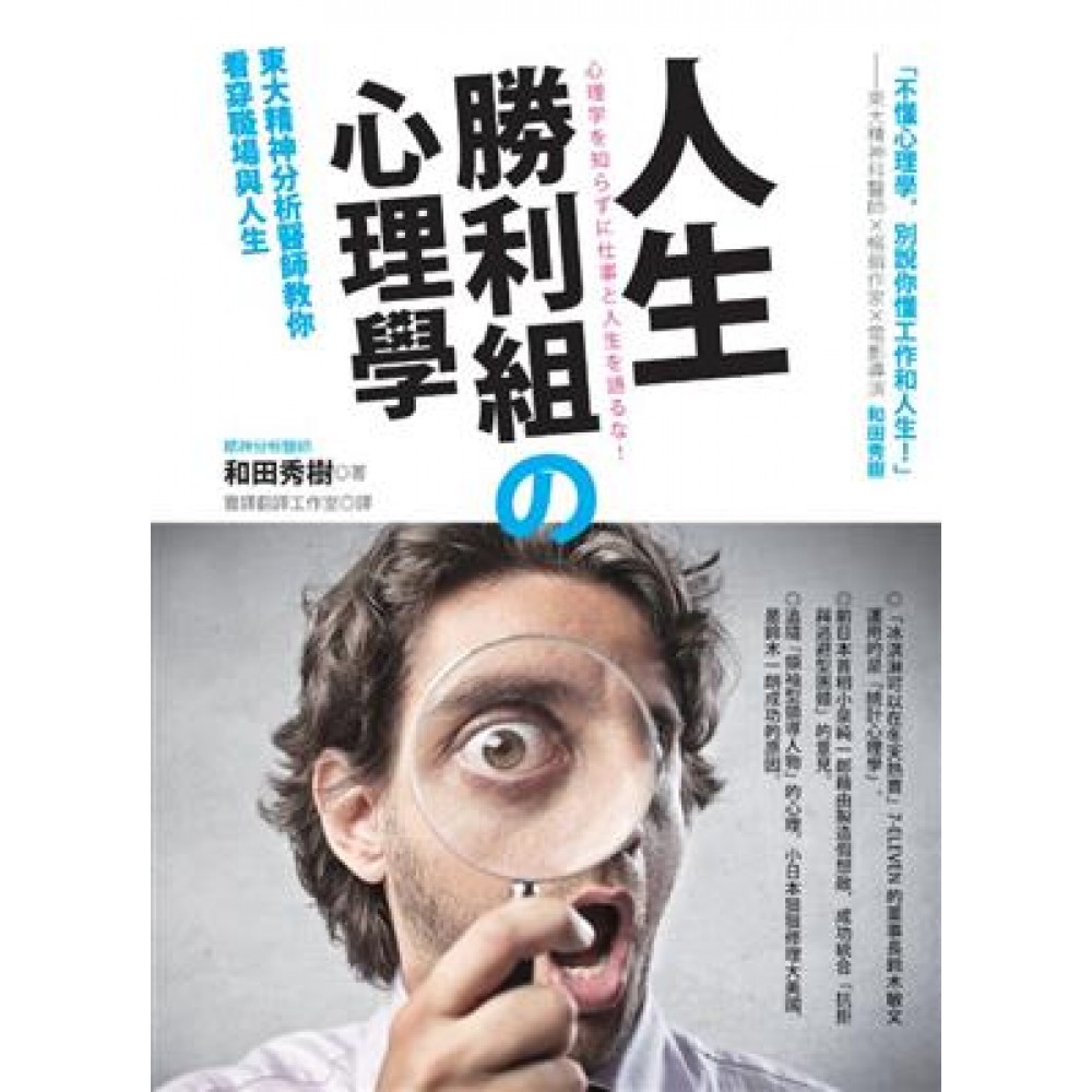 ◎「冰淇淋可以在冬天熱賣」7-ELEVEN的董事長鈴木敏文運用的是「統計心理學」。 ◎前日本首相小泉純一郎藉由製造假想敵,成功統合「抗拒與逃避型團體」的意見。 ◎追隨「領袖型領導人物」的心理,小日本狠狠修理大美國,是鈴木一朗成功的原因。 日本著名精神科醫師,同時也是暢銷書作家──和田秀樹醫師,專精於考試準備法以及潛力開發。他長期從事心理學研究,因此明白上班族最需要的是什麼,如果能夠了解心理學知識和心理學思考方法,並將心理學應用在工作或日常生活中,如果無論是領導能力、管理能力,還有日常人際關係、夫妻關係,甚至戀愛,都能變得更順利! 本書介紹心理學的實用知識,從「實驗心理學」與「臨床心理學」兩大類著手,舉出實際例子,以心理諮商的方式,運用在生活或職場行銷中,讓你工作、戀愛、人際關係面面俱到,解除你「東想西想、遲遲不行動」的拖延心態,成為人生�勝利組! 本書重點 人生勝利組V.S. 人生失敗組 ~在大公司,請服用「實驗心理學」;在小公司,請服用「臨床心理學」~ *「老闆擅自決定的目標,責任為什麼要我來扛?」低落的營運業績,是因為員工沒有感受到馬斯洛的「自我實現」。 *無法放手「沉沒成本」,錯誤決策造成公司損失愈來愈大! *市場是「精神分裂型」或「躁鬱型」,將影響銷售手法,請洞悉市場特性! *市場行銷與商品開發成功,「樂隊花車效應」引導民眾跟隨潮流,成為「市占率第一名」! *「認知治療」使員工從沮喪懷疑,轉變為積極進取。 *建立人際關係,「有難不必同當,有福一定要共享」! 「不懂心理學,別說你懂工作和人生!」──東大精神科醫師×暢銷作家×電影導演 和田秀樹