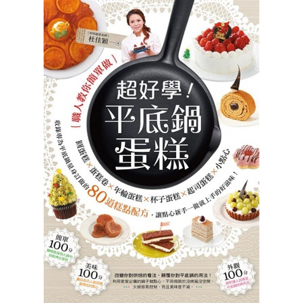 序 「鍋」霸甜心 教你用平底鍋第一次做蛋糕點心就成功 投入烘焙領域近20年,從學校到職場,經過嚴格訓練,每天開電源,預熱烤箱,熟記上火、下火爐溫度,設定出爐時間,得要聚精會神,才能完美出爐每個作品,但總是遇到書迷、學生問我:「不用烤箱也可以做嗎?」、「我家烤箱怎麼做失敗?」、「老師是買什麼牌子的烤箱?」、「專業級烤箱太貴、太大佔空間!」很多人想學糕點總是被烤箱「卡關」。 因為烤箱的品牌種類太多,當然買專業烤箱最好用,但東方人的料理習慣還是用鍋子,往往買烤箱只是三分鐘熱度,做幾次失敗,就成了家裡最閒置的家電,因而出版社特別請我用烘焙多年的經驗,試試看把平底鍋變「烤箱」。 剛開始覺得怎麼可能?有很多平底鍋會沾黏,而且不耐燒,一受熱不勻就容易焦或不熟;經過半年不斷試做,終於研究出平底鍋做糕點不敗祕方,從鍋具選擇、爐火大小、如何烤出完美比例、防止黏底、增加美味的撇步;還有直接將麵糊倒入鍋中的懶人食譜,目前風靡日本,要排隊的厚鬆餅、北海道爆漿蛋糕、生乳牛奶糖,也能一鍋搞定。 愈做愈發覺好的平底鍋讓烘焙變得更省事,婆婆媽媽們不必再擔心沒買專業烤箱,用平底鍋也能做出歐美、日本、中式、台式點心、麵包、餅乾,簡單到在拍攝過程中,企畫編輯位玖常問:「老師,這樣就完成嗎?怎麼這麼簡單?」 不但省事還省時,一般烤箱要先預熱,再烘烤至少半小時的糕點,用平底鍋20分鐘左右就出爐,口感還被稱讚比烤箱做得更好吃,很多沒學過烘焙的媽媽,試做都成功,還分送鄰居品嚐,被追問是那裡買的? 很開心第一次出版不插電,只用平底鍋、瓦斯爐完成的80道食譜,挑戰烘焙也可以不用烤箱,像過去總舖師,只要有鍋具就可以露天辦桌,有這本食譜,也可以當起糕點總舖師~平底鍋的「鍋」霸甜心,隨時隨地享受自己動手做糕點。 還要感謝出版社給我這個機會,編輯位玖、攝影師阿億、美編小鶴的細心專業、我的烘焙助手臺北城市科技大學學生陳春、李冠德、林俊憲、盧皇文協助分工,才有這本書的誕生;還有一路栽培支持我的師長、爸媽姐姐、書迷,讓我更有動力,持續製作更棒的作品。 杜佳穎
