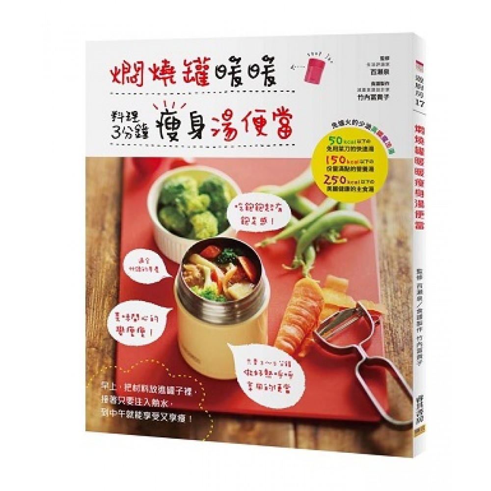 序 打開瓶蓋熱氣撲面而來~ 帶著熱呼呼的便當 Happy健康瘦身 步驟簡單,但卻美味至極! 一罐就能攝取大量的蔬菜。 只要把食材、熱水放入燜燒罐中,就能做出美味的料理。 步驟簡單,而且能品嚐到暖洋洋的好滋味。 不僅如此,燜燒罐最適合製作一人份的料理, 幫助減少食材的浪費。 用燜燒罐烹煮的整體費用比購買冷凍食品、現成熟食還要便宜, 需清洗的物品量也不多,是製作午餐的環保新選擇。 如此方便好用的燜燒罐子不僅體貼我們的身體, 也體恤我們居住的地球。 「用餐食輕鬆攝取大量蔬菜」 ——這正是本食譜設計時的核心理念。 市售的便當往往會讓你不自覺吃進大量的油炸品、碳水化合物, 而若是改用燜燒罐製作湯品,不但不必使用油脂, 做出來的料理也能加入豐富的蔬菜,整體來說更為健康。 食譜中按熱量高低分成不同單元, 你不僅能選擇單用燜燒罐製作的午餐, 也可以搭配在超商購買的飯糰、優格, 打造出營養均衡的低卡菜單。 「雖然很想自己做便當,但實在太麻煩,沒幾天就放棄了……」 「我根本就不會做菜……自己做便當?簡直比登天還難啊!」 「我也不想吃冷便當……熱熱的外食比外面賣的冷便當好多了!」 「真希望享受美食的同時也能享瘦!」 如果你曾經有過上述的想法, 那你一定要試試看燜燒罐午餐的魔力與魅力。 不但製作方法真的非常簡單,做出來的料理更會美味得讓你驚豔。 品嚐自製的溫暖午餐,整顆心也會變得暖洋洋的。 和燜燒罐一起享受屬於你的快樂午餐生活吧!
