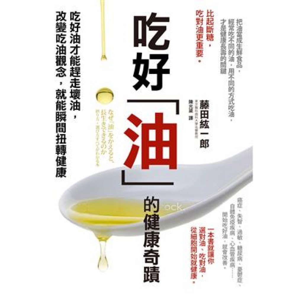 比起斷糖,吃好油更重要 吃好油,才能趕走壞油,和壞油在身體裡引起的失智、各種炎症,和慢性疾病。 癌症、失智、過敏、糖尿病、憂鬱症、自體免疫疾病、心血管疾病……開始吃好油,就會改善。 把油當成生鮮食品,經常吃不同的油,用不同的方式吃油,才是健康長壽的關鍵。 一本書就讓你選對油、吃對油,從細胞開始就健康。 油脂是人體最重要的營養元素, 只要開始吃好油,身體就會有意想不到的轉變。 1、記憶力變好,腦部功能改善,憂鬱、失智不上身 2、身體有穩定的能量,能輕鬆集中注意力 3、不再為過敏、腸漏、便秘困擾 4、好膽固醇增加,能防止動脈硬化,改善心血管疾病 5、細胞變年輕,身體慢性發炎開始不藥而癒 6、啟動長壽荷爾蒙脂聯素,能保護血管、預防糖尿病 7、身體不發炎,自然能防癌、抗癌 關於油脂你應該知道的事一次說清楚, 這樣選油,才正確: ‧油是生鮮食品,選好油,短期內吃完,才是正確的吃法。 ‧植物油一定要選擇冷壓油,裝在透明塑膠瓶內的精製油絶對不可以吃。 ‧不要一直吃同一種油,經常換,才吃得到不同的營養元素。 ‧外食的油脂多是Omega-6,要有意識地多吃Omega-3才能平衡體內油脂。 ‧加工食品的原料欄中如標示有酥油或植物油脂,就可能含有反式脂肪,絶對不能吃。 ‧芥花油、大豆油,以基改種子榨油的可能性很高,最好不要吃。 ‧冷壓的棕櫚油是好油,但精製過的棕櫚油並不健康。 ‧亞麻仁油Omega-3的含量最高,能改善細胞膜機能。 ‧葡萄籽油亞油酸含量高,最好不要做為日常使用油。 ‧奶油富含短鏈脂肪酸,可以幫助預防大腸癌。 ‧市面上玄米油非精製的很少,但冷壓玄米油也可以預防失智。 ‧魚油可以改善憂鬱症、減少中性脂肪。 這樣吃,可以增加好油的攝取量 .多吃生魚片,或者蒸、烤,連魚油一起吃,都是攝取魚油的好方法。 .吃生魚片時不沾醬油芥茉,改沾亞麻仁油加好鹽。 .味噌裡可添加亞麻仁油做成沾醬,配蔬菜一起吃。 .納豆淋醬油和亞麻仁油一起攪拌,也很好吃。 .用醬油、荏胡麻油、蒜泥和醋做成中式沙拉醬。 我們吃了幾十年的反式脂肪已在美國全面禁用, 精製植物油內的化學藥劑長年來一直毒害人體, 麵包、蛋糕、各種加工食品中也隱藏者許多我們看不見的壞油, 這些都是過敏、心血管疾病、失智、自體免疫疾病、癌症等慢性疾病的元兇。 90%的疾病都是吃壞油造成的,吃好油,比斷糖更重要!