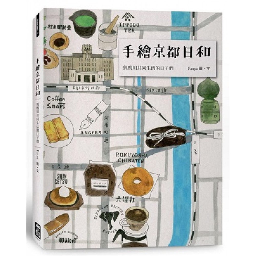 前言 京都,是生活的城市。 或許對許多人而言,京都的城市印象是以各大古蹟神社作為標記,像是兩三天行程就可將一千兩百年的歷史濃縮吸收,若有餘裕還可連同大阪神戶奈良一次滿足,七、八年前初訪及二訪也是如此安排。而先前在準備東京行程時,無意間在雜誌及書中看到不少京都老舖,被充滿時間感而不張揚的氛圍吸引,立刻成為當時「待訪城市口袋清單」的第一順位。 2014年的工作告一段落後,決定給自己放個長假,用三個禮拜一個人仔細走訪每條街弄巷道。旅途時間一拉長,衝刺型的物質消費會逐漸厭倦疲乏,因而不再以觀光踏點的方式,較像是看電影時把自己替換進另一種人生角色,體驗換座城市會有什麼樣的生活:頭兩三天習慣空氣的濕度和鄰居的作息,一兩週後下意識地繞開菜價較高的超市,或許再待下去,幾個月後會有自己偏好的咖啡焙煎所或熟識的書店老闆朋友,和當地人事物薄薄地、一層一層累積著連結,竟也讓人有這是第二故鄉的錯覺。 村上春樹在書中提過旅居波士頓時,在查爾斯河畔練習馬拉松,「能在日常生活中看到大量的水,對人類來說或許是意義非常重大的行為。」在京都時確確切切感受到他所說的,這句話不時像字幕般替眼前畫面下註解。每當騎腳踏車橫越過鴨川,從大橋上眺望著遠方山群,河岸兩側盡是草皮樹蔭等季節性的綠意,而河面開闊波光粼粼,這一幕讓胸口紮實地被滿滿的愛塞填,才理解這座城市不以人造高樓(如京都塔)而以河川作為靈魂地標的理由。堤岸邊人們慢跑、遛狗、彈吉他、躺在草皮翹著腳看書,順著河流創造出來的市民風景也是如此靜好,大概是被水環繞相伴能夠柔軟身心、緩和步調吧。又或是在法然院氤氳池水接收到的靈氣、夏日午後高瀨川拂過耳畔汗水的涼意,從沒有過一座城市能夠讓我如此強烈感受到深厚的人文歷史底蘊,同時也被豐沛自然資源撼動,提醒著自己人類如此渺小,若只活在人造都市內,常會忘記我們不過也只是動物、也只是屬於地球的一小部分,連帶著遺失對造物主的尊敬遑論保護。 這條貫穿市區一分為二的河也是誘人喚起巴黎記憶的提示物之一,古物市集、百年老店、甚至對麵包與咖啡的熱愛,兩座城市都是如此偏執地守護傳統,圍著名為歷史的爐火不間歇的丟進柴薪。就算是在最繁華喧騰的四条,百貨商場林立、不分平假日的洶湧人潮,沿路仍可見許多老派喫茶店、舊書店穿插,彷彿時間的快速推移,只對其他店家起作用唰唰唰的改變替換,而跳過了、遺忘了這些老舖,門關住的是被凝結停留的昭和時代氛圍,讓人忍不住推開一間又一間有時光機功能的門,將自己沉浸在舊時代的蒸氣裡。 比起東京,或許市區地理面積小也凝聚縮短了人與人的距離。作為顧客,收到更多的溫暖關心與善意,而店家之間的緊密互動,不會因是同業而有競爭排斥感,反倒像是一同為此產業努力,例如兩家咖啡店合作的綜合味道、二手書店互相寄售,更能看到如社區般的密集網絡,並非關起門來各作各的。去到不同空間,也都能感受到店主獨特的個性與想要展現的美學,就算有相似的元素組合,如自家烘焙麵包的咖啡店,也看不見模仿的影子,常常試圖想跟過去曾造訪的店作聯想,但資料庫卻搜尋不著。開一家小店並不是一窩蜂追隨著某種風格就能急就章的速成事業,是得先醞釀累積,或許先在他處鑽研技巧,經過時間淬鍊,摸索與篩選出一條真正懷抱著熱情的小徑,然後悠緩而長久地走下去。 有幾度認為此書應該無法完成,大概是無法接受這趟旅程已結束的事實,一旦爬梳完稿,就得被從夢中搖醒,像捨不得散場的演唱會,離去前對著鴨川說不出道別的話,而是在心底悄聲:會再回來的。書店時時都有關於京都的新書上架,明白那是因為這城市太美太豐富,造訪過的旅客憋不住向他人訴說的慾望,以不同的形式、角度切入而成的一冊冊閱讀心得。寫第一本書《手繪旅行日和》時,總覺得對台北的部分較為滿意,事後剖析了一下原因,重點不在畫稿當下的狀態,而是對於店家的情感會不自覺流露在紙上,那些顏色與線條潛意識的在替我發聲。才認真定位自己要分享的是:那些一次又一次、日漸累積情感與故事的寄託之處,而非僅是如旅遊手冊目錄不帶個人偏見的敘述。 於是試著繞著一個一個小主題,絮絮叨叨這些日子裡的片段。