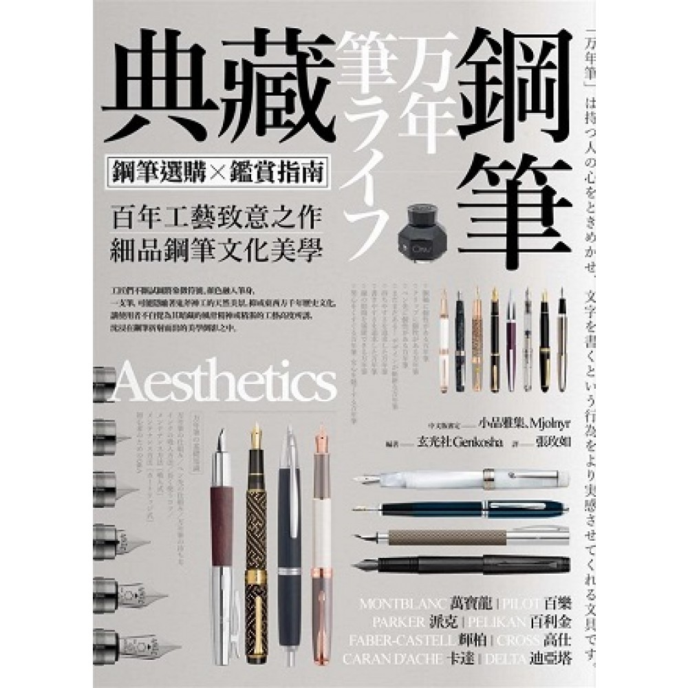 ~細品鋼筆文化美學~ 百年工藝致意之作 鋼筆自19世紀以來,克服筆尖的耐磨性,筆桿的持握難易度與儲墨問題後,逐漸走入人們的生活。 百年來,各家廠商代代傳承的卓越技術、新舊素材的整併技藝不斷發展,使鋼筆成為一派文化淵遠縱深的實用工藝品。 工匠們不斷試圖將象徵符號、顏色融入筆身,一支筆,可能隱喻著鬼斧神工的天然美景,抑或東西方千年歷史文化,讓使用者不自覺為其暗藏的風骨精神或精湛的工藝高度所誘,沉浸在鋼筆折射而出的美學倒影之中。 一隻合用的鋼筆,不僅能彰顯自身的品味和性格,若筆尖弧度、柔軟度能與自身的書寫習性相輔相成,便能在書寫時體會到人筆合一的和暢之感。 本書搜羅全球14大代表性的鋼筆廠商,與超過300款史上留名的鋼筆名品,以高解析度的照片及局部放大圖示,詳細說明其設計美學、配色概念及隱含寓意,讓初入鋼筆世界者,得以窺見鋼筆的工藝美學,並從中選擇適合自己的筆款。 鋼筆收藏者則能欣賞百年來深植人心的經典作品,充盈對鋼筆的知識涵養,對這百年工藝深深致意。 【經典款名品鑑賞】 ◎MONTBLANC 萬寶龍 ◎PILOT 百樂 ◎SAILOR 寫樂 ◎STAEDTLER Premium 施德樓 ◎PARKER 派克 ◎PELIKAN 百利金 ◎WATERMAN 華特曼 ◎SHEAFFER 西華 ◎FABER-CASTELL 輝柏 ◎CROSS高仕 ◎CARAN D'ACHE 卡達 ◎DELTA 迪亞塔 ◎VISCONTI 本書特色 ◎ 國內知名鋼筆老店小品雅集、資深鋼筆愛好者Mjolnyr協助審定。 ◎ 特色筆桿、筆夾、筆尖分章介紹,全方位鋼筆鑑賞資訊彙整。 ◎剖析14大鋼筆廠商文化特色,實地走訪日本最大型文具廠商「PILOT」,訪查鋼筆製作流程。 ◎嚴選300多款史上留名的商品&名品,詳細說明設計美學、配色概念。 ◎鋼筆相關商品、墨水、紙張、相關配件屬性分析、介紹。 ◎ 大量精美去背鋼筆圖示、局部放大照片,讓讀者得以仔細品味鋼筆工藝美學