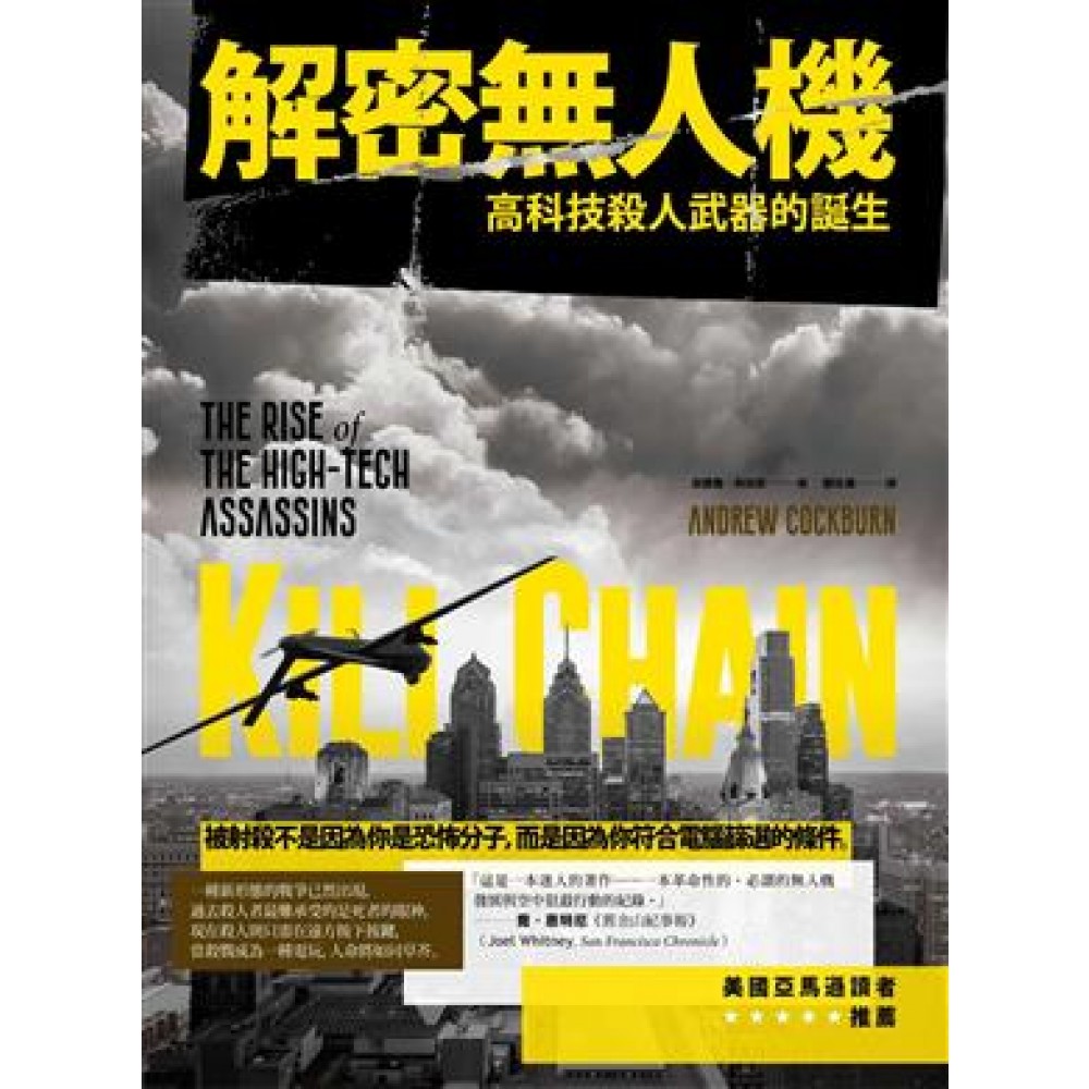 ‧「這是一本迷人的著作……一本革命性的、必讀的無人機發展與空中狙殺行動的紀錄。」──喬‧惠特尼,舊金山紀事報(Joel Whitney, San Francisco Chronicle) ‧科伯恩是一位能幹的寫手……他以高解析度的筆調陳述了大量資訊(回扣、私利,以及雷神、洛克希德、諾斯洛普、休斯、通用動力、博思艾倫等等),也引領我們走進72個處女的花園小徑。這些武器無效──在許多層面上,無人機在各地劃下一道寬闊且無情的傷痕──而且軍事戰略本身也是是失敗的。──彼得‧路易斯,《基督科學箴言報》(Peter Lewis, The Christian Science Monitor) ‧科伯恩將鏡頭拉遠,拍出一個更寬廣的歷史角度,將無人機獵殺行動放進美國軍需複合體的大背景中檢視。從匿蹤轟炸在科索沃及越南的頻頻失敗,到國安官僚在冷戰後介入反毒戰爭而得以延續生命,科伯恩將無人機的殺戮行動視為美國在全球長年的軍事行動中的謊言、騙術,以及貪婪的集大成……在《解密無人機》中,科伯恩這位充滿正義感的左派,將反戰先鋒的火炬帶進了時事爭議中。──凱倫‧格林伯格,華盛頓郵報(Karen J. Greenberg, The Washington Post) ‧在這本一流的歷史著作中,安德魯‧科伯恩帶領讀者從五角大廈在越戰期間的電腦夢,一路走到今天的匿蹤超級無人機,揭露了二十一世紀機器人戰爭的黑暗真相。資訊充實,調查精闢,鉅細靡遺地揭露真相。這本書是一面照妖鏡,將長年隱身黑暗中的遠端遙控殺手相關理論及理論家、秘密軍事及情報計畫,與機密科技照得無所遁形。──尼克‧圖爾斯(Nick Turse),《殺掉任何會動的東西:美國在越戰時不為人知的殘暴》(Kill Anything That Moves: The Real American War in Vietnam)作者 ‧這本精采的著作告訴我們電腦如何屠殺士兵及百姓,揭露了越南到阿富汗戰場上的將領們是如何被電腦晶片所取代,細節清晰駭人。一部關於機器人戰爭崛起的駭人紀錄、精彩故事、與亟需被閱讀與注意的先知卓見。──提姆‧韋納(Tim Weiner),《灰燼的遺產:中情局歷史》(Legacy of Ashes:The History of the CIA)作者 ‧一本說服力十足、可讀性極高的著作,比任何我所閱讀過的著作都更完整地告訴讀者無人機為何無法滿足政客們過度膨脹的期待,也清楚地告訴讀者,無論用的是人還是機器,情報領域其實是何其脆弱。──愛德華‧傑‧艾普斯坦(Edward Jay Epstein),《騙術:KGB與CIA間看不見的戰爭》(Deception: The Invisible War Between the KGB and the CIA)作者 ‧在這本精彩的著作中,科伯恩引領讀者進入飛行員的座艙,隨即趕回家參觀孩子的美式足球賽的殺戮小組進行致命的獵殺行動。在機密的層層包覆下,科伯恩這本偉大的新作是通過武裝衛兵和密碼鎖一探地獄火外交這嶄新領域的唯一法門。在下一場選舉中,選民投票時該驗的不是身分證,而是有沒有讀過這本書。──愛德華‧傑‧艾普斯坦(James Bamford),《影子工廠:從911到竊聽全美國的超機密國安局》(The Shadow Factory: The Ultra-Secret NSA from 9/11 to the Eavesdropping on America)作者 ‧改變現代戰場的並不只是科技,而是一個質疑──有時甚至能取代──昔日戰爭邏輯的新理論。這理論將敵方領導者視為可暗殺目標,並在軍事層面上添加了一個政治因素……。最一針見血且引人擔憂的,就是科伯恩的結論推測:在資本永無止境的湧入下,「這殺戮機器也將永遠運作下去。」──科克斯書評(Kirkus Reviews) ‧一份既熱情洋溢,卻又讓人極度不適的報導。──線上書評(Booklist Online) 美國亞馬遜讀者5顆星推薦 •這本精采的著作告訴我們電腦如何屠殺士兵及百姓,揭露了從越南到阿富汗戰場上將領們是如何被電腦晶片所取代,細節駭人。一部關於機器人戰爭崛起的駭人紀錄、精彩故事,與亟需被閱讀與注意的先知卓見。──提姆‧韋納(Tim Weiner),《灰燼的遺產:中情局歷史》(Legacy of Ashes:The History of the CIA)作者