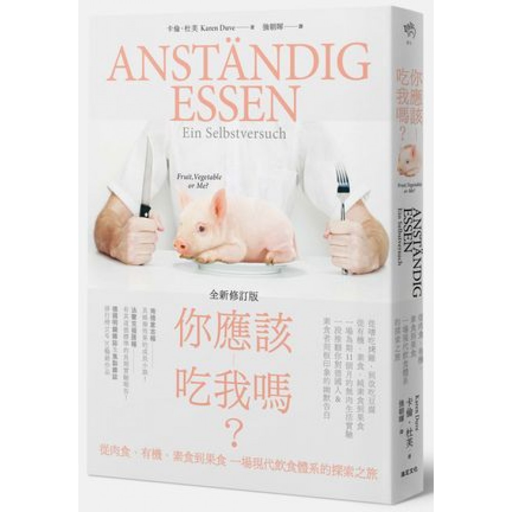 推薦文一 評論家艾力克斯.魯赫勒讚賞卡倫.杜芙明智處理了一個困擾眾人、又極易被扣上道德大帽子的危險議題。杜芙的「自我實驗」以近年來備受重視的道德素食主義作為理念基礎:魯赫勒提道,杜芙從一個漫不經心的超市消費者,變成素食主義者、純素主義者,最後成為果食主義者,對此他認為「我們或多或少可從大量且清晰的描述中認識現代畜牧業和屠宰方式」,但讓他印象特別深刻的,是作者在本書中表現自己如何避開『不一致』和自己生活方式的矛盾,因此魯赫勒給了她崇高的敬意。魯赫勒讚美道:「至少這個嚴肅的話題在此也是『具娛樂效果的成長小說』。」 採珠人文化網站(Perlentaucher.de)摘記南德意志報的評論 推薦文二 聞到香腸的味道時,意志要堅定! 不再以犧牲受盡折磨的動物過活——在佛耳(Jonathan Safran Foer)反對工廠化養殖引起許多論戰之後,卡倫.杜芙描述她因此想成為一個更好的人。 德國近日又有食品醜聞發生:雞蛋內含致癌的戴奧辛。養殖場被關閉,農民擔心生計,消費者也擔心自身的健康。由於某飼料生產商為求利潤,昨日之前原本看似安心無虞之事,剎時演變成極具風險。 數千隻雞食用到遭生物柴油廢物污染的飼料,為了預防傳染而遭人撲殺,卻無人因此惱怒。所謂「德國農業需要更好的管控」,也許沒錯,但也許德國農業還需要一套從根本處即完全不同的管控系統。對一個將動物僅視為生產雞蛋、牛奶和肉品的機器齒輪,必須靠盡可能壓低成本以領先競爭對手,隨時可用傾銷價格在超市滿足顧客需求的農業部門而言,「品種適當」一詞無疑等於陌生的外來語,無法奢望他們會突然心生責任感。 消費者在日常購物時也同意這一點,否則他們不會以過低的價格搶購食物。大家家中都有電視或網路,所以都知道商人的手段不見得永遠乾淨。事實上,早在這件戴奧辛醜聞爆發之前就是如此。 卡倫.杜芙也知道。她知道蛋雞養殖場及養雞場的恐怖,也知道受肉類受汙染的報導。她認為購物時最好避買2.99歐元的「鐵盤烤雞」。「我內心意識某處深知這些雞的生存條件相當不好。」但卡倫.杜芙喜歡那味道,所以她也就買了。直到她那位只吃有機食物的新室友某天在購物時與她當面互相詰問。她所知道的事情很快就戰勝了她所買的東西。書中描述的這一幕無論在現實中是否真的發生過,其實並不重要。重要的是隨後的覺醒:杜芙決定成為一個更好的人。 她開始自我實驗:他們兩個月內只吃有歐盟有機標誌的食物,兩個月內完全捨食肉品;接著兩個月則過著素食者的生活,再下來則過著果食主義者的生活——即使他們得先用Google搜索何謂「果食主義」。果食主義者只吃植物的某些部位,因此收成時不會破壞整個植物—因此不能吃萵苣、馬鈴薯和根部,但蘋果、葵花子和蕃茄則可吃。卡倫.杜芙將經歷之事全寫進這本極為傑出的書中。繼佛耳的《吃動物》論戰的眾多討論後,《你應該吃我嗎?》如今也可同樣熱烈呼籲反對工廠化養殖。 作者身為有機食物的新主顧,首先很高興看到幾乎每一種她喜歡的食品(對杜芙來說尤其是餅乾、巧克力、肉類和高脂乳酪),都買得到貼有有機標誌的。有機商店裡有較清晰的品牌定位,甚至讓她覺得這是心理放鬆手法。儘管有機食品價格居高昂,她寧可選擇有幾個月窮困一點。她很快就胖了四公斤。杜芙的結論是:「即使有機食品也會讓人變胖。我們必須只買負擔得起的東西。」杜芙並未到此就算告一段落地改買其他產品。她坦率面對德國農場的現狀,研讀動物福利組織的著作及聯邦食物、農業和消費者保護部的出版品。她上網搜索,甚至破門闖入一家蛋雞場。她喜歡觀看雞隻在她勃蘭登堡花園裡四處奔走、抖起羽毛、抓地和啄食。她對家禽特別感興趣,但她發現的事讓卻讓她不寒而慄。德國的家禽必須關在被稱為小群體住房的籠內,聽起來似乎比實際情況好些,實際上,六十隻雞關在一個籠子裡,每隻雞活動的空間只有一張A4紙大小,沒比明信片大上多少。這具一定高度的棲息處,通常會促使雞隻相互啄食,互相啄咬是人工飼養的雞隻普遍的攻擊行為,他們往往會相互攻擊對方腹部內臟。卡倫.杜芙失望地發現,數千隻的雞塞進一個小小的空間內,無法形成一個層級的社會結構。每隻雞因此互相啄擊對方。不論是在穀倉養雞、自由放養、甚至是有機畜牧業,飼養雞隻的死亡率是11.8%,也就是說,一個有兩萬隻雞的雞倉內,每天只少會有七隻死亡。經過充滿緊張、疼痛、渦輪飼料機、健康狀況不佳和缺乏運動的一年,倖存的雞隻則會被殺害。為了宰殺,人類會綁住雞腳倒掛,並將雞頭拉近通上電流的水床。由於很多雞會驚嚇地撲動,因此造成雞體導電不足或沒被水溺斃,最後只好被機器割喉至死。 對卡倫.杜芙而言,研究過這些恐怖行為之後,不再吃肉並不特別困難。至於邁向素食主義的生活也不過是前進一小步。如果想避免環境惡化和虐待動物,杜芙認為素食主義是唯一合乎邏輯的形式。但這是理論。儘管她懷有走在正確的生活之道的道德優越感,作者仍會咒罵她的自我實驗。當她在朋友家中聞到香腸的味道;當她母親烹煮特別的佳餚,作女兒的她卻不能嘗一口;當她在麵包店老是得問烤盤上是否塗了牛油;當她嘗試適應當一個素食主義者和坐上無鵝絨的座墊卻失敗、或讓她的騾子本佐適應戴上一個塑膠製成的鞍座—因