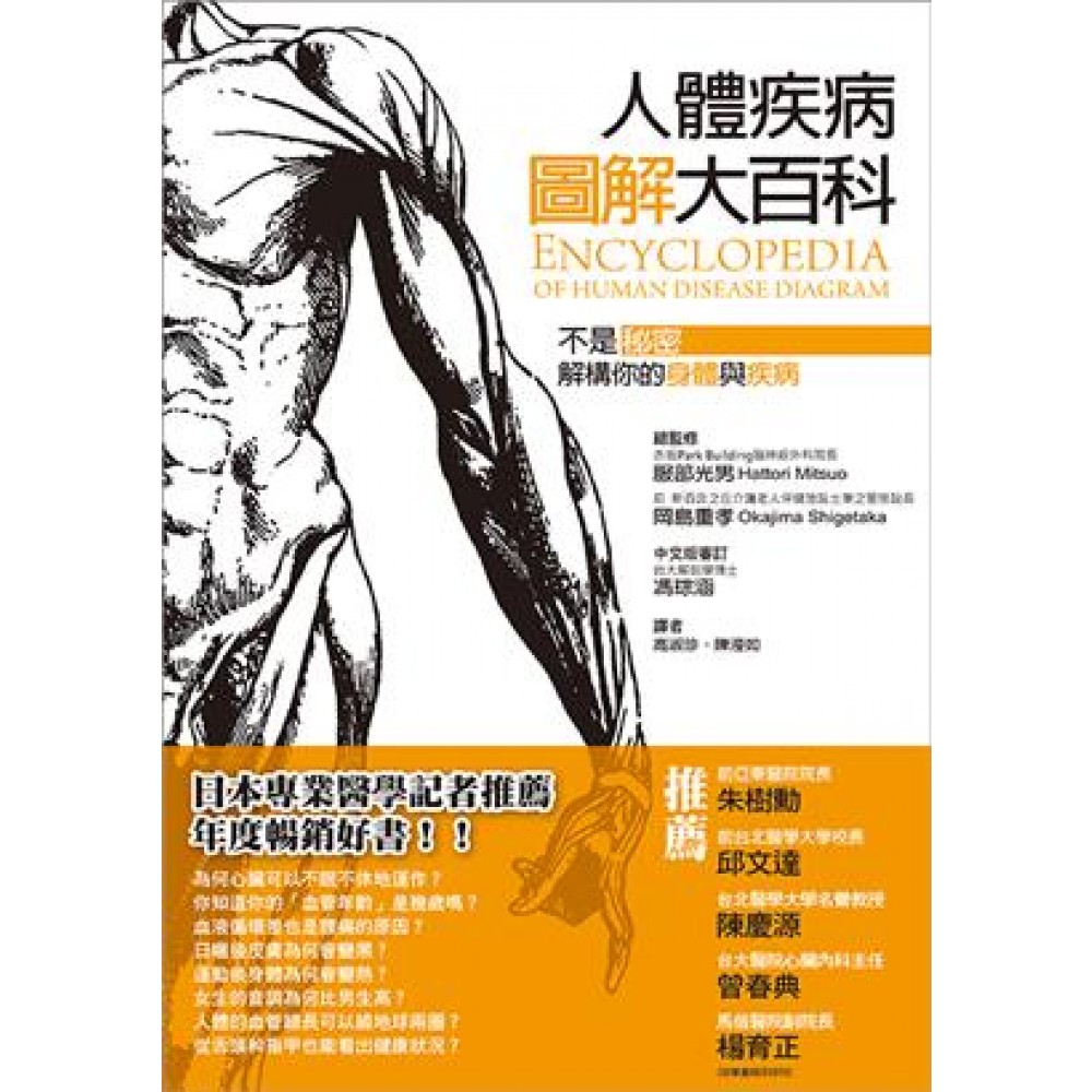 日本專業醫學記者推薦必備好書 ★為何心臟可以不眠不休地運作? ★你知道你的「血管年齡」是幾歲嗎? ★血液循環差也是腰痛的原因? ★日曬後皮膚為何會變黑? ★運動後身體為何會變熱? ★普通感冒與流行性感冒有何不同? ★從舌頭和指甲也能看出健康狀況? ★人體血管總長可以繞地球兩圈? ★抗生素也無效的「超級細菌」會侵襲我嗎? 了解身體,才能用最好的方式對待它! 如故事書般精彩的《人體疾病圖解大百科》 由專家執筆、監修,針對現代人各種常見疾病,從疾病的成因、症狀、病程,以及治療、照顧、預防方法,全面性一一加以介紹。生病了,不用因為各種未知而害怕,知道你的細胞正在做什麼、明白各系統器官組織運作的原理,去理解它、感受它、記憶它,淺顯實用的科學知識才能轉化為常識,就算是超級細菌,也無法突破你的自我防線。讀完本書,你會發現:人體內部不只是構造精良,器官組織運作協調,真的令人讚嘆生命的美妙!你和親愛的家人將會更愛護身體、珍惜生命。 本書特色 -----「主題看似嚴肅,讀起來卻很好懂」------ ‧完全圖解,讓人一看就懂!輕鬆預防10大惡疾! ‧超過600禎精美插圖與珍貴解剖圖,導覽人體生理構造兼具欣賞價值。 ‧層層解析各臟器運作機制及疾病,鉅細靡遺、概念完整。 ‧說明各器官系統之疾病預防、徵兆、治療及保養,增進醫病間互信了解。 ‧貼心指出常人易混淆忽略的病徵,讓您不再錯過健康警訊! ‧豐富的精美圖解,讀來賞心悅目更受益良多,亦可作為教學工具用! ‧以人體各器官系統之區分作為章節,清楚易查! ‧先說明各臟器機能,後詳述相關疾病,循序漸進明瞭易懂!
