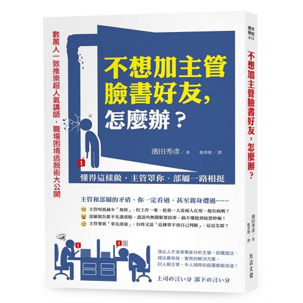 每日超過50萬瀏覽人次【Biz COLLEGE】網站,點閱「冠軍」 數萬人一致推崇的超人氣講師,職場困境逃脫術大公開! 令人頭疼的部屬,討人厭主管,都能改造! 照著這本書做,主管就會罩你,部屬也一路相挺! 主管和部屬之間總是牢騷、抱怨不斷,這些鳥事很可能發生在自己身上…… ◆【案例一】部屬的抱怨→主管叫我別再「加班」,卻把我一人當兩人用,他有病嗎? ◆【案例二】部屬的抱怨→主管要我「事先商量」,有時又說「這種事不會自己判斷嗎」,這是怎樣? ◆【案例三】主管的牢騷→部屬都不先講重點,盡說些無關緊要的話,天曉得他想幹嘛! ◆【案例四】主管的牢騷→部屬可以責備嗎?我看只會讓他們更不爽吧! ★主管和部屬的不爽心結,該如何化解? <不爽1>工作量增加,遇缺不補,卻要部屬「減少加班」,不是自打嘴巴嗎? 主管的無奈:只要工作有效率,應該能夠減少加班時間。 部屬的怨言:為了減少加班,希望主管刪減無謂的工作。 <化解方案>此項爭論點不在「加班與否」,雙方之所以不滿是處理事務的「效率」。因此試著減少「非必要工作」,並且有效活用「工作時間」。 <不爽2>手上工作忙翻了,還要一直開會,有沒有搞錯啊! 主管的無奈:若以個別討論的方式,很難讓整個團隊動起來,透過會議才能共享資訊並說明現況。 部屬的怨言:手邊還有其他事要忙,希望會議能更有效率,別開起會來沒完沒了,而且好不容易開完會又沒個結論。 <化解方案>重新檢視開會「主要目的」,將會議重點聚焦在「解決問題」,報告時也須簡潔說明。 <不爽3>不想加主管臉書好友,怎麼辦? 主管的無奈:我想透過臉書拉近跟部屬的關係,難道這也錯了嗎? 部屬的怨言:主管按「讚」?我根本不稀罕!拜託他別來騷擾我! <化解方案>雖說加深彼此間的關係是必要的,但現在大部分人都很注重「隱私」,所以必須設定適合雙方的「私領域範圍」。 ★難以解決的問題,職場上屢見不鮮! 由於職務上的差距,主管看法與部屬見解很難沒有隔閡,這也是普遍存在的溝通困擾。 本書作者是日本相當受到推崇的研修與管理講師,經手處理過的「案例超過2萬人」,並且以他「十六年實戰經驗」,歸納出職場常見主管與部屬的十八項衝突,以及有效解決方案。 作者以綜觀的角度分析兩方意見,既可釐清事情發生的原因,更也提出了不偏頗的解決方案,最後再將「管理」及「溝通」理論活用其中,自然能夠找到合適的解決對策,無論討人厭主管,還是令人頭疼的部屬都能改造。 本書特色 *日本超人氣講師,16年研究觀察,歸納出18項職場常見問題! *站在第三者的立場,提供主管及部屬解決爭議的對策!