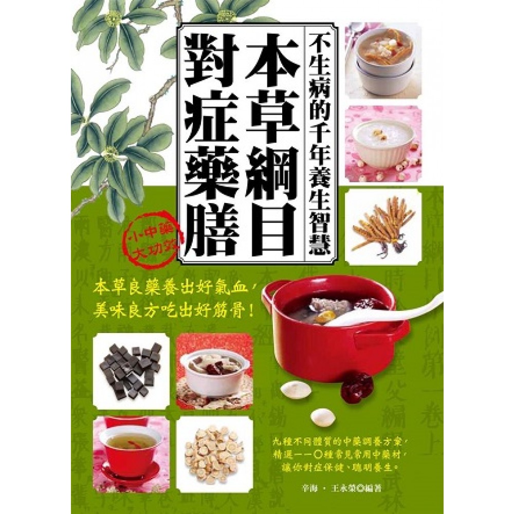 小中藥,大功效! 本草良藥養出好氣血,美味良方吃出好筋骨! 九種不同體質的中藥調養方案,精選110種常見常用中藥材, 讓你對症保健、聰明養生。 解密經典醫書的自然養生之道,吃對了才有效! 古代醫家認為,人體與自然的風寒暑濕、春夏秋冬、花草樹木、鳥獸魚蟲息息相通,自然萬物之間存在著廣泛而永恆的相生、相剋、相制、相化的關係,所以人體的不適與病痛,自然界中總有一物可以化之。這正是中藥之所以能夠保健養生、防病治病的最根本的道理。 以中藥為基礎的食療藥膳,是中國傳統醫學與美食的完美結合。將中藥材應用於生活中,掌握體質與性味,不論是一杯茶、一碗粥、一瓢湯,只要加入適當的中藥材,就成了滋補身體的藥膳,健康與美味兼得。 《本草綱目》是先人留給我們的養生法寶。本書以研究《本草綱目》為基礎,從書中所述幾百種傳統中藥裡,挑選最常見、最常用、最有效的,分為益氣、補血、滋陽、壯陽、活血化淤、解表祛濕…等十大類,從藥理、藥效、家庭用法、養生功效、藥膳製作、選購保存、使用宜忌等方面做了詳細介紹,並針對不同體質、不同症狀、不同季節,提供了相應的中藥食療養生對策,將傳統養生文化借鑒到日常生活中,使千百年的醫書經典更貼近一般人的需求,對你我不再是艱澀難懂的學說。