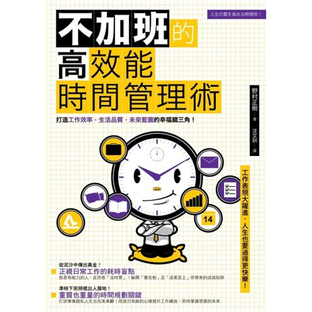 正視日常工作的耗時盲點,打造「工作效率」、「生活品質」、「未來藍圖」的幸福鐵三角! 讀完本書,「沒時間」的口頭禪將不再掛在嘴邊! 為了在工作上交出成績,私生活卻只剩下吃飯、睡覺……每天重複過著這種日子,這樣的人生真的能讓人獲得幸福嗎?何不試著改善過去那些被認為理所當然的工作方式以及時間管理術呢?讓日本時間達人告訴你如何提高工作效率,把挪出來的時間充實生活,取回屬於自己的人生!