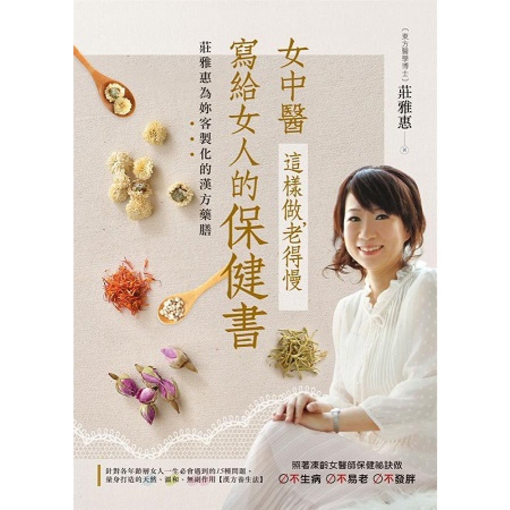 序 給自己健康美麗的未來,就是多愛自己一點! 多年前門診時發現,很多婦女因不正確的保健觀念而致病,所以將常見婦科疾病的衛教觀念集結成書,與讀者一起分享。多年後我發現,門診中女性患者的衛生常識仍不足,而隨著社會變遷,疾病種類也變多了,因此盼望這次的新修本,能更加照護現代女性的身心靈。 每次看到偉大的媽媽們,實在令人不勝唏噓,她們為了孩子的健康,往往不計辛勞尋醫就診,但卻捨不得多花些精神與金錢,照顧自己的身體。身為女人與醫師,看到這些充滿母愛光輝的女性,總希望她們可以多愛自己一點,而愛自己,就從正確維護自己的健康開始,否則若失去健康後,如何有能力來照顧自己所愛的家人呢? 很多人認為醫師不太會生病,每當看到醫師在服藥時,總會露出訝異的眼神,其實醫師的工作場所,往往是病氣聚集最重的地方,若缺乏自我保健的能力,怎能抵抗病菌的入侵;因此,每日飲用養生茶,成為我的強身抗毒法寶,因為我曾經一度失去健康,所以更珍惜健康的可貴。 記得初經來潮後,幾乎每個月都會有生理痛,因此在未學中醫以前,一直是服用止痛藥來減輕經痛,然而在研讀中醫之後,才發覺傳統療法的神奇,而部分治療成效,更是西醫所無法比擬的,尤其是在婦科疾病的治療,因具有天然、無副作用的特點,所以愈來愈受女性朋友的信賴。 雖然身為醫師,卻曾因家庭因素而誘發了情緒失調、月經異常及子宮內膜異位症等病,剎那間,我因震驚而清醒,我告訴自己,唯有解除心靈的束縛,才能根本治療疾病,唯有身體力行,才能面對我的病人,唯有多愛自己一點,才能找回健康;所以我靠著耶穌、家人、朋友的愛及中藥調理,一步步揮別陰影,找回健康,活出自我。 聖經告訴我們,不要為明天憂慮,因為明天自有明天的憂慮;一天的難處一天當就夠了。祂也應許我們,「你們不要憂愁,因靠耶和華而得的喜樂是你們的力量。」盼望你們也能因而放下心中重擔,獲得平安、喜樂與健康! 僅以這本書獻給正和病魔作戰的父親,他從小教導我們要勇於接受挑戰,永不放棄,盼望天父的愛能進入他心中,賜給他力量,陪他走這一段雖然艱辛,但卻充滿平安的抗癌之路! 莊雅惠