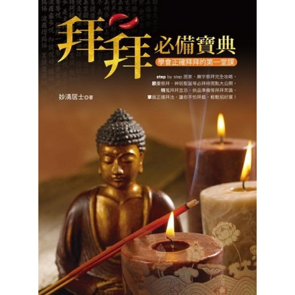 step by step 居家、廟宇祭拜完全攻略, 節慶祭拜、神明聖誕等必拜時間點大公開, 特蒐拜拜宜忌、供品準備等拜拜常識, 掌握正確拜法,讓你不怕拜錯,輕鬆招好運! 求神、拜祖一本通,教你拜出好運到!最齊全的拜拜須知X最完整的教戰守則,帶你從供品準備到入廟門、持香、祭拜、擲茭、求籤等廟宇祭拜流程,最後,只要帶著誠心祭拜,遵守禮節,讓你初次拜就有效,順利拜出好運到! ‧拜拜須知不藏私 從拜拜要準備的器具、金銀紙、香品、供品,到如何擺放供品、擲筊和求籤的方式,全公開,讓你正確拜、求好運! ‧必懂拜眾神、祖先的方法 祭拜的日子、程序、正確持香的方式、祝禱口訣,讓你與天上的神明、祖先正確對話。 ‧節慶祭拜、神明聖誕等必拜時間點大公開 帶你了解在不同節日,要進入對的廟,祭拜對應的神明,並告訴你不同地點、節令和平常在家中拜拜的方式,讓新手輕鬆跟著拜,無煩惱!