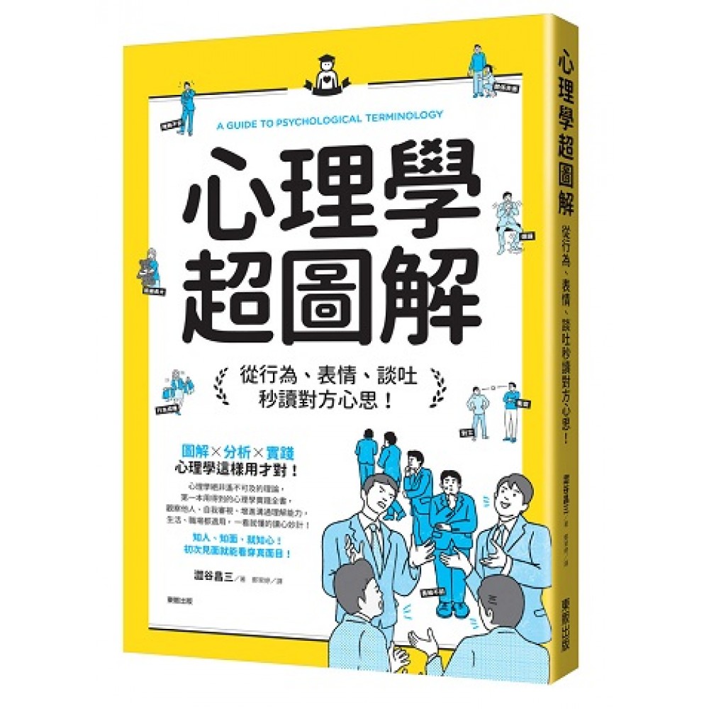 PROLOGUE [心理學在日常各種場合都能派上用場] 判讀看不見的「心」──8 心理學的發展──9 克服煩惱的方法──10 本書的使用方法──12 [顯示心理狀態]情緒──13 [是如何習得的?]性格──14 [尋找對方真實想法的線索]舉止、行動──15 [表達情緒]說話方式、口頭禪──16 PART1 日常生活中的心理學 存在於我們生活中的心理學──18 心理學的現場形形色色──20 社會心理學1 所有行動皆可用心理學解釋──22 社會心理學2 認識心理學,增添戀愛樂趣──24 社會心理學3 如何面對團體與個人──26 情緒心理學1 為何心情會起伏不定?──28 情緒心理學2 喜歡、討厭的情緒機制──30 人格心理學 性格與類型會不時變化──32 認知心理學 從看待事物的觀點察覺心情──34 發展心理學 人從出生到死亡都在成長──36 壓力心理學1 如何有效地應變壓力──38 壓力心理學2 轉換思考方式可減輕壓力──40 CLOUMN•1 雙重束縛會引發人際焦慮──42 PART2 看出性格的心理學 浪費──44 節儉──45 浪漫主義者──46 保守──47 潔癖──48 吊兒郎當──49 頑固──50 優柔寡斷──51 虛榮──52 過度謙遜──53 自我中心──54 應聲蟲──55 自我意識過剩──56 漫不經心──57 容易動怒──58 心機重──59 自戀者──60 畏縮不前──61 急躁──62 我行我素──63 一絲不苟──64 不懂得整理──65 花心──66 控制欲強──67 獨行俠──68 喜歡照料別人──69 八面玲瓏──70 瞧不起人──71 墨守成規──72 無拘無束──73 脾氣彆扭──74 太過老實──75 疑心病重──76 容易上當──77 CLOUMN•2 你是否也有這種症狀? 我們身邊的依賴症與症候群──78 CLOUMN•3 你從這幅畫裡看到了什麼?──80 PART3從行動、表情、口頭禪看心理學 表情 臉部動作 皺眉/鼻孔張大/鼓起臉頰──82 噘嘴/嘴巴微開/舔唇/抿唇──83 吐舌頭/咂嘴/常自言自語/打哈欠──84 抬下巴/嘆氣/不必要地點頭──85 眼睛動作 注視/瞪視/別開視線──86 看右上/看左上/看右下/看左下──87 東張西望/眨眼/瞳孔擴張──88 舉止 姿勢、態度 挺起胸膛/叉腿而立/向後仰──89 縮背/聳肩/在椅子上挪動/找藉口離席──90 身體向前傾/拿開桌上的物品──91 手、胳臂動作 手輕輕交握/張開手指/握拳──92 隱藏雙手/手疊在腦後/雙手交疊──93 以手遮嘴/以手掩鼻/以手托腮/摀住額頭──94 搔頭/扳動指節/抱起雙臂──95 摸手錶/玩手機/輕敲桌子──96 雙手撫摸臉頰/摸耳朵或頭髮/摸下巴──97 腳部動作 打開雙腿(男性)/雙腿傾向左右側(女性)/雙腿筆直併攏而坐──98 翹腳時右腿在上/翹腳時左腿在上/翹腳時頻頻換腳──99 腳晃來晃去/腳踝交叉/腿往前伸/腳對著門口方向──100 腳尖方向與視線相反/抖腿/格格打顫──101 打招呼、握手 看著對方眼睛打招呼/邊做其他事邊打招呼/不打招呼──102 用兩手確實地握手/無力的握手/輕觸程度的握手/流手汗──103 對話中的動作 反應誇張/手勢很多/過度彬彬有禮──104 愛聊八卦/講悄悄話/喜歡自吹自擂──105 聽錯/立刻就說「對不起」/頻繁使用外語詞彙/經常提往事──106 走路方式 慢慢走/走路時小跑步/有節奏地走路──107 說話方式 說話很快/說話徐緩/缺乏抑揚頓挫──108 拉高聲調/聲音有氣無力/說話音量大──109 笑的方式 快活大笑/抿嘴輕笑/從鼻子哼一聲地笑──110 笑口常開/笑容不多/面無表情──111 CLOUMN•4 「謊言是自立的信號」人類是說謊機器──112 口頭禪 這是為了你好/我跟你講喔/我好忙──116 不是/大致上/咦!──117 我沒錢/好可愛/基本上──118 反過來/不要告訴別人/那麼──119 無可奈何/好厲害/一定──120 沒問題/所以/但是──121 順便一提/話說/可是──122 反正/都可以/不管怎樣──123 原來如此/總覺得/為什麼──124 一般而言/這是無所謂/真奇怪──125 真的嗎?/哎呀/大家都這樣做──126 總之/因為我~/第一人稱──127 CLOUMN•5 在會談場合可以看出的心理──128 PART4實用心理學用語 自己 自我評價──130 自尊──131 挫折(Frustration)──132 情結──133 衝突──134 壓力──135 自我表現欲──136 未定型認同──137 防衛機制──138 自我懲罰──140 周哈里窗──141 原欲──142 心理抗拒──143 他人 從眾心理──144 從眾行為──145 迎合行為──146 人際認知──148 助人行為──149 自我呈現──150 自我揭露──151 回彈效應──152 說服的溝通技巧──153 對人恐懼──154 豪豬兩難說──156 人際關係指數──157 支配需求──158 共依附──159 思想控制──160 去個性化──161 CLOUMN•6 [我們的心理非常複雜!]各種情結類型──162 商務 溝通網路──164 月暈效應──166 麥拉賓法則──167 標籤化──168 錯誤標籤化──169 首因效應──170 印象操作──171 自我效能──172 自我實現預言──173 比馬龍效應──174 少數人影響──175 上班族冷漠──176 社會性懈怠(林格曼效應)──177 自我設限──178 午餐技巧──179 動機──180 愛情 得失效應──182 新近效應──183 吊橋效應──184 單純曝光效應──185 熟知性法則──186 鏡映──187 好感的回饋性──188 社交需求──189 認知失調──190 愉快經驗──192 聯想法則──193 武斷推論──194 羅密歐與茱麗葉效應──195 相似法則──196 互補──197 劇變理論──198 暫停法──199 宣洩──200 動作