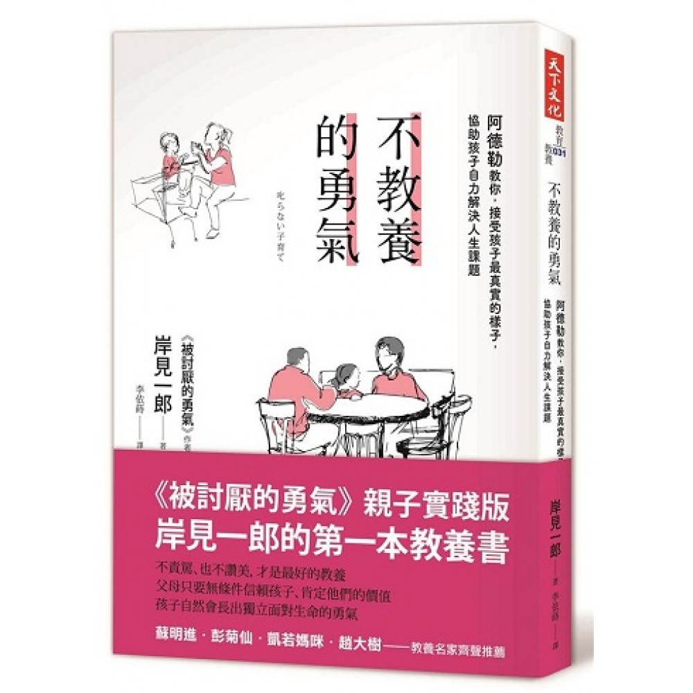序一 重建與孩子的心關係 蘇明進 序二 「不教養」是最佳提案 彭菊仙 序三 努力學習「收手」 凱若媽咪 序四 面對孩子不難,面對自己很難 趙大樹 前言 第1章 《阿德勒教養論》 理解孩子的言行 父母根本不了解孩子 孩子出現問題行為,是因為缺少愛? 使用蠻力,不能真正解決問題 叛逆期是孩子成長的必經過程嗎? 理解孩子行為的目的 從人際關係的角度看孩子的行為 從怒氣中解放 COLUMN:意識到孩子成長的瞬間托兒所的最後一天 第2章《阿德勒教養論》不罵孩子 故意討罵的孩子 責罵孩子,沒有任何好處 責罵,讓孩子學不會自主判斷是非 責罵也會限縮孩子的格局 關係一旦疏離,父母就幫不了孩子 不要逼迫孩子 除了責罵,父母還可以這樣做 教孩子負起失敗的責任 教養孩子,態度應該堅定 COLUMN:意識到孩子成長的瞬間父母吵架時 第3章《阿德勒教養論》不讚美孩子 不罵孩子會怎樣? 何謂適度的關注? 孩子不會一直惹麻煩 讚美孩子,沒有任何益處 讚美的意義 大人與小孩是平等的 渴望認同 COLUMN:意識到孩子成長的瞬間女兒不知不覺長大了 第4章《阿德勒教養論》給孩子勇氣 何謂「給孩子勇氣」? 接受自己,與他人建立關係 把缺點轉換成優點 讓孩子知道自己有貢獻 教養不是扣分,是加分 做個普通人的勇氣 孩子的人生風格 為了改變人生風格 培養共同體意識 歸屬感是人類的基本欲求 COLUMN:意識到孩子成長的瞬間懂得自己思考 第5章《阿德勒教養論》幫助孩子自立 中性行為 分清楚是誰該面對的課題 教養的目標是讓孩子自立 親子共同的課題 親子之間相互幫忙 COLUMN:意識到孩子成長的瞬間 懂得用說的解決問題 第6章《阿德勒教養論》與孩子建立良好關係 尊重孩子 信賴孩子 為什麼信賴是必要的? 信賴什麼? 相信孩子有好的動機 與孩子建立互助關係 親子目標一致 今後的教養 COLUMN:意識到孩子成長的瞬間相信孩子的韌性 後記