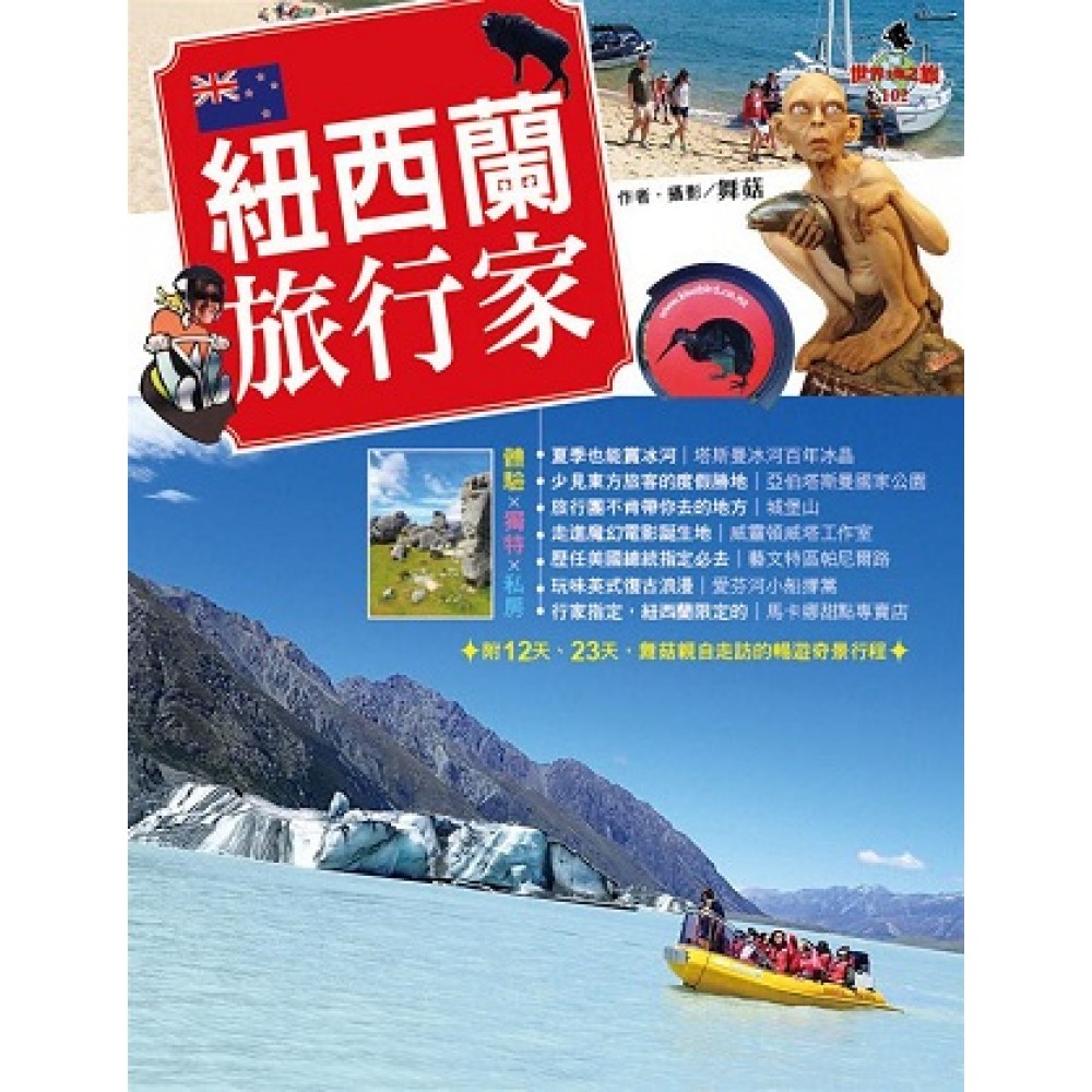 舞菇 舞菇是個童書出版社的編輯,總是在加班到深夜時,做著出國去玩很久的白日夢。好在還可以運用短暫的周末假日,參加荒野保護協會親子團舉辦的活動,和許多的年輕孩子玩在一起。這些快樂的經驗,被轉化為採訪報導的能力、讓舞菇在每一次的自助旅行中,順利挖掘出更多被網友們忽略的趣味點,同時讓每一個旅遊行程,都變得好玩而知性。 雖已多次前往日本、香港、中國、蒙古、加拿大、德國、美國、義大利......的經驗,但就是沒機會到紐西蘭一遊。 有幸與居住當地的年輕人一同旅行,得知想要好好玩、悠閒玩遍紐西蘭,需要再調整自己的心態:紐西蘭幅員廣大、每個景點都以不同的特色經營著。所以別想一次玩透紐西蘭,一生只去一次紐西蘭是不夠的。那就期待下次再出發囉!