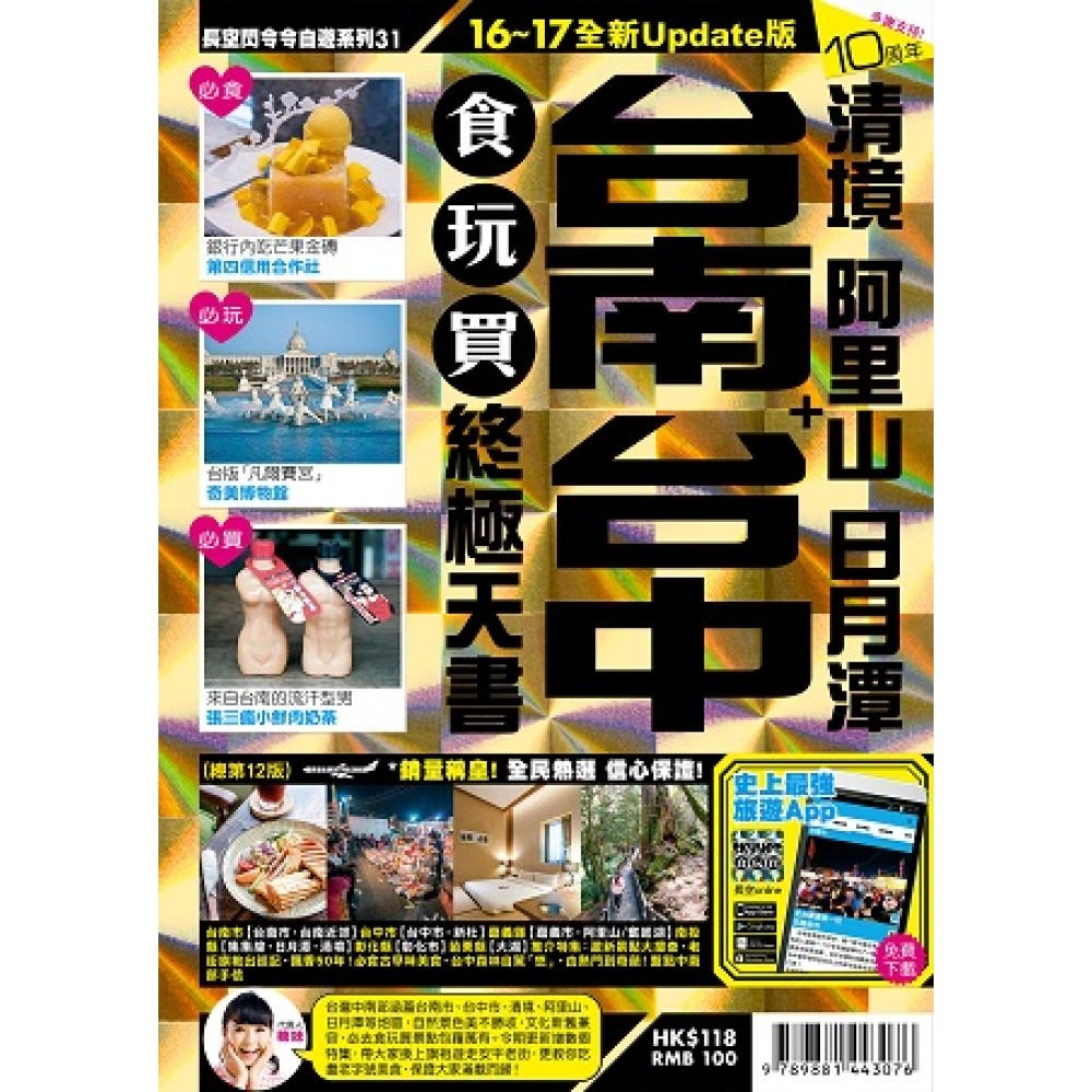 台灣中南部大自然風光優美,文藝氣息濃厚,古早味美食數之不盡,無論對於情侶浪漫遊,或是家庭好友結伴出遊,都同樣適合!舊稱府城的台南市是台灣昔日的歷史人文重心,歷史古蹟眾多,舊建築活化成為復古咖啡廳和文青小商店,而最令人驚艷的一定是台南小吃,擔仔麵、碗粿、蝦捲、虱目魚等經典老府城滋味菜,連城市人都百吃不厭。另外,身為中台灣發展最繁榮的台中市,區內發展各有特色,例如台中車站周邊老城新貌、美術園道和草悟道綠草成蔭,原來,台中不只有逢甲夜市和博物館。當然,玩完市區就要去近郊,感受休閒的原始台灣風情!台灣最後秘境阿里山遠離塵囂,是全台觀賞日出的最佳地方;日月潭終年霧鎖,山湖之景美不勝收;有「台灣阿爾卑斯山」之稱的清境,環境清新開揚,甚有歐洲山區小鎮的情調,深受一家大小歡迎。親親大自然,完全無難度! 長空自遊系列《台南 台中 食玩買終極天書1617》,全書共336頁,由長空記者深入台南市、台中市、阿里山、日月潭和清境等各縣市,更加入長空精選特集,包括「激新景點大搜查」、「老街旗袍出巡記」、「飄香50年!必食古早味美食」和「從熱門到奇葩!盤點中南部手信」等,並附送拉頁大地圖,內容豐富精采多元化!