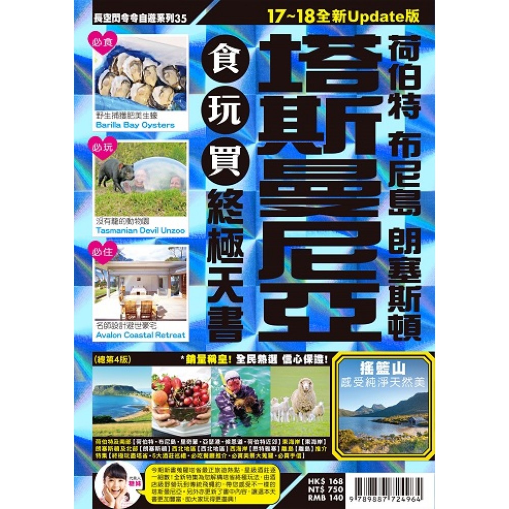 澳洲一向是最受港台遊客歡迎的渡假天堂之一,隨著近年廉航興起,機票愈來愈便宜,更多人可以欣賞澳洲的獨有魅力。位於澳洲南端的「現代塵世美」塔斯曼尼亞,以絕美自然景色和甜美新鮮海產見稱,長空閃令令自遊系列《塔斯曼尼亞食玩買終極天書17-18》為您帶來全省最hit旅遊熱點,由資深旅遊人蒐羅最刺激、最深度的玩法;共240頁的豐富內容,帶你深入塔省各大旅遊區,不論是熱門的荷伯特和朗塞斯頓,抑或是布尼島、亞瑟港、東海岸及西部地區。手持這本書,即可玩盡整個塔斯曼尼亞! ✈為您網羅最好玩旅遊熱點.打頭陣是最新最潮的豪華野營Wingtons Glamping,享受夢寐以求的隱世之旅.Bruny Island Long Weekend豪遊團,輕鬆感受大自然的奧妙.Roaring 40°s Kayaking划艇體驗,以全新角度看荷伯特.超刺激Tarkine Forest Adventures,110米滑梯探索沼澤.百年蒸汽火車West Coast Wilderness Railway探山林.RiverFly 1864學玩傳統飛蠅釣,學做地道澳洲人.Hollybank Treetops Adventure歷險,扮泰山穿越森林.玩轉野外版水上樂園Cradle Mountain Canyons.大膽者必玩Aardvark Adventures,140米大壩上玩繩降.玩All4 Adventure開四驅車,勇闖越野森林.有機廚房The Agrarian Kitchen學做菜.Tasmanian Seafood Seduction活捉豪歎野生頂級海鮮以上等等旅遊熱點數之不盡,打卡打到手軟! ✈不同主題玩法大解構塔斯曼尼亞玩法多樣,書中結集多個食玩買主題專輯,為您打造最貼心的旅遊攻略:.《終極玩盡塔省》精挑細選最刺激、最人氣的新體驗.《5大酒莊巡禮》造訪塔省頂級酒莊,輕鬆當個品酒專家.《必吃餐廳推介》帶您當吃貨,嘗盡塔省最強食店.《必賞美景大蒐羅》雲集塔省最美天然景色,驚歎大自然的鬼斧神工.《必買手信》推介當地獨特名產,送禮自用同樣吸引......還有更多精彩玩法,等您發掘! ✈一書網羅塔省重點分區.荷伯特及南部分區:包羅萬有大城市荷伯特是塔斯曼尼亞的首府,省內最大的城市,曾經獲選為世界十大必去城市。荷伯特是全澳洲最古老的城市之一,集古蹟、市集、酒廠、海鮮餐廳、果園於一身,一站式滿足食玩買。(包括荷伯特、布尼島、里奇蒙、亞瑟港、候恩道、荷伯特近郊分區).東海岸分區:遠離繁囂。體驗大自然東海岸沿海岸線由多個沙灘組成,也有不少國家公園和保護區,對於愛好大自然和喜歡享受寧靜沙灘的遊客簡直是天堂。除了大自然景點多,東岸的海鮮也很著名,絕對是休閒及逃離繁忙工作的度假最佳之選。朗塞斯頓及北部分區:動靜皆宜朗塞斯頓是塔省第二大城市,既擁有時尚咖啡室,亦有各類博物館和觀賞風景區,適合男女老少到訪,小朋友又食又玩之餘,大朋友也能找回童心。西北地區分區:壯麗荒野探秘從西北的斯丹尼、泊尼到西部的搖籃山,荒野地區相對市鎮偏遠,遠離人煙,處處都是壯麗天然景觀和珍稀野生動物,適合喜歡大自然和遠足人士,渡過放鬆身心的避世假期,同時可以一睹塔斯曼尼亞惡魔、企鵝、袋熊等動物風采。西海岸分區:海邊悠閒小城思特雅寒位處西海岸,熱鬧小鎮捕魚業很有名,其海港更是全澳洲及南半球第二廣闊,住在市內的酒店可以享受完美港灣美景。此外,思特雅寒早年亦是礦業出口重鎮,市內及鄰近的女皇鎮都可感受到當年的熱鬧風采。(包括思特雅寒分區).離島分區:地貌原始 賞景勝地King Island和Flinders Island坐擁天然美景和原始生態,屬現代版世外桃源。 ✈卷末提供旅遊實用資料,安排旅程更完善 ✈書內附送拉頁大地圖,輕易掌握熱點位置