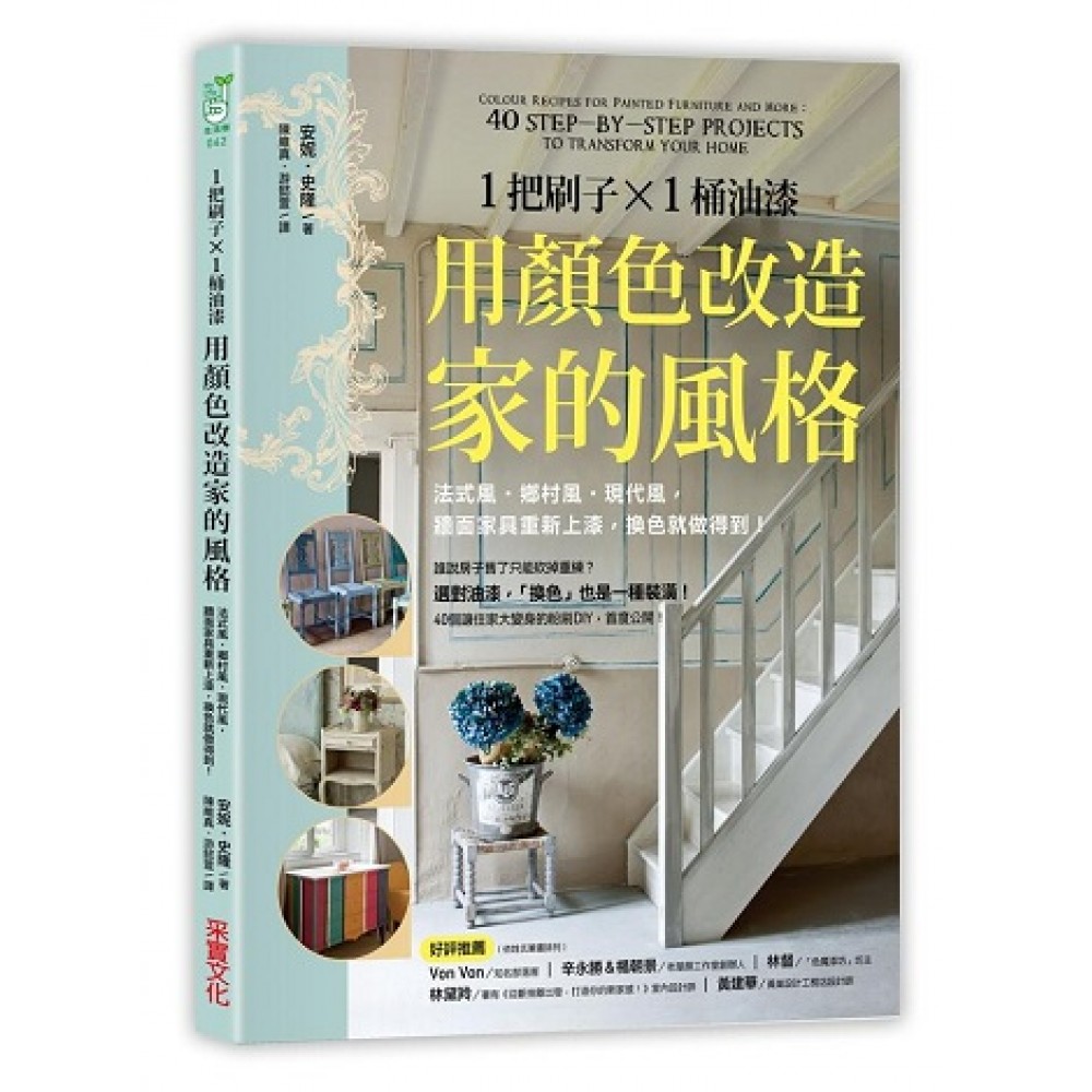 ★Amazon讀者狂推,評價高達4.4顆星★ 只是換顏色,風格就能不一樣! 準備 1把刷子和油漆,不重新裝修也能改造家的樣貌, 從法式鄉村到現代風,幫舊家具刷出新質感 只用巧妙運用油漆就能辦到! 不改隔間、不換家具,也能讓老屋大翻新?舊餐桌、斑駁牆面、過時的椅子等,都有救了! 油漆,是最省錢的裝潢!只要稍微幫家具改變顏色,房子就能煥然一新! ★為什麼改造房子,不妨先從「油漆」開始?因為: ‧【不需任何特殊工具】工具在精不在多,只需準備油漆、刷子及乾淨的布即可。 ‧【新手也能輕鬆完工】零經驗也無妨,只要對油漆有興趣,很快就能輕鬆上手。 ‧【任何家具都能上漆】不論是老舊、斑駁或過時家具,都能透過粉刷油漆重生。 ‧【花最少錢打造夢想】不需花大錢裝潢,只要少許油漆,打造舊家具的新生命。 ‧【隨心所欲調出色彩】自己調色更有趣,按照色輪表混合油漆,就能創造新色。 ‧【可重複換色不限制】刷壞也沒關係,再重新上色即可,完全不用擔心會失敗。 作者安妮‧史隆是油漆彩繪專家,也是歐美最受歡迎的油漆品牌Chalk Paint® 創辦人,多年來,她幾乎不曾透過改變格局或打掉隔間等裝潢房子,而是透過幾桶油漆,輕鬆改造家具,變換居家風格。她強調,老房子並非只能砍掉重練,就算只改變家具及空間顏色,也能創造不同風格。本書案例便是屋齡已20年以上的老房子,安妮將家具及天花板換色後,原本老舊的櫃子變身法式宮廷櫃、水泥天花板變成藍綠混搭的時髦Style,原本不起眼的大木桌更是變成復古白色鄉村風餐桌,這些都只靠油漆就完成。 在本書中,安妮不藏私公開她獨門的改造法,提供40個粉刷的好點子,幫助你改變家具、空間,甚至是窗簾、燈架的顏色,只要這麼做,瞬間就改變風格,不論是波西米亞、法式風或鄉村風,用油漆就能辦到。 ‧【法式風】選用白色漆就對了,若想更華麗,不妨加入藍綠等明亮色,並善用鍍金,打造法式宮廷風。 ‧【鄉村風】最適合用在廚房,顏色以簡單或暖色系為主,亦可保留家具原有的懷舊感,營造自然感。 ‧【瑞典風】帶有法式風格,以藍、白、灰、粉紅等為主色,打造冷+暖的組合,適時加些手繪更好看。 ‧【現代風】以中性色搭配大量寒色系及少數暖色系,並加入條紋、幾何圖形、大型色塊等,大膽又創新。 ‧【波西米亞風】以民族風為主色調,大量使用綠、橘、紫等,打破傳統配色,越特別越能營造衝擊。 ◆ 上漆前,記得3個小撇步,讓你的作品更完美! 安妮強調,首先必須決定風格,再來是顏色,兩者都確認後就可購買喜歡的油漆,市面上的品牌很多,顏色都有些不同,只要找到順眼的即可。接著就是上色,有3個小技巧一定要記得,包括: (1)家具表面保持乾淨──請先用乾布擦拭家具表面,清除灰塵,避免上色時因髒汙破壞刷漆結果。 (2)調色後記得先試色──擔心效果不如預期時,可先在其他平面或布料上試刷一小塊,確認顏色。 (3)在自然光下刷油漆──燈光明暗會影響油漆呈現的顏色及光澤,因此建議在自然光下粉刷較好。 ◆如何用油漆改造房子?有錢也上不到的專家級彩繪課,本書完整收錄! 除此之外,安妮更公開自己多年來的刷漆經驗,整理出最實用的5大重點,只要跟著做,改變居家風格不是夢,老屋也能活出新生命! (1)選擇好用的油漆及刷具:油漆是否好上色、防水及防裂?刷毛是否夠長、夠柔軟等,都要考量。 (2)在家具要放的空間刷漆:若要幫臥室的床上色,建議在臥室粉刷完成,方便確認室內明暗度及顏色。 (3)粉刷前可先幫家具上蠟:粉刷前先上一層蠟,讓表面更好塗刷,接著就可上漆。 (4)混搭不同的油漆調色:建議用1匙或半匙的油漆混色,顏色確認後再進行大分量的混色。 (5)用油漆幫窗簾、桌布染色:選好顏色後,將油漆和水依比例調和,從桌巾、窗簾到地墊皆可染色。