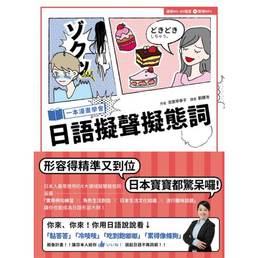 日語學老半天,還是只會用「綺麗」「美味しい」形容事物? 小心!這是詞窮的徵兆! 本書集結日本人最常使用的6大領域擬聲擬態詞, 涵蓋「實用例句練習╳角色生活對話╳日本生活文化知識╳流行趣味話題」 讓你能形容得精準又到位,日語不再一般般! 本書特色 特色一 精選日本人最常用的擬聲擬態詞! 以下詞彙的日語你都會嗎? 「冷吱吱」「熱到發昏」「吃到飽嘟嘟」「嘛嘛吼」「黏答答」 「竊竊私語」「頭暈目眩」「閃閃發光」「亂七八糟」「愛撒嬌」……等, 快翻開本書,看看這些擬聲擬態詞如何用日語表達! 本書將日語擬聲擬態詞分成〈季節〉〈飲食〉〈心情・情感〉〈觸感・感覺〉 〈行為〉〈狀態〉6個單元。 作者精選日語對話中最常出現的擬聲擬態詞,教你以最自然的日語形容人・事・物! 特色二 4個步驟,循序漸進學習,讓你能形容得適時適所! Step1 先思考…… 要形容味道、口感時,腦海中會浮現那些語彙呢? 「おいしい」「まずい」「うまい」?想破頭還是只說得出這幾個詞? 其實還有更多樣的敘述方式,例如「すっきり」(暢快)、「こってり」(油膩)、「ぷりぷり」(Q彈飽滿)、「ぬるぬる」(黏滑)……等。 Step2 聯想後再學習…… 喝了「冰水」會覺得……「すっきり」(暢快)! 吃了「拉麵」嘴巴會有點……「こってり」(油膩)! 咀嚼「蝦子」的當下感覺……「ぷりぷり」(Q彈飽滿)! 切開「秋葵」後的菜刀變得……「ぬるぬる」(黏滑)! 藉由老師所提示的關鍵字搭配豐富的圖示,動動腦後再跟著例句學習最自然的用法, 讓學習事半功倍,形容得跟腦中所想的一樣完整! Step3 看漫畫學最自然的日語會話,日本人真的這樣說! 日本人真的都會用這些擬聲擬態詞嗎?透過情境漫畫實際觀察他們都怎麼講! 「あーおいしかった!」 (啊,真好吃!) 「ここのラーメン、こってりしていて好きなんだ!」 (這拉麵油膩膩的,我喜歡!) 「塩ラーメンはあっさりしているよ。わたしはこっちの方が好き。」 (鹽味拉麵很清淡喔!我比較喜歡這個!) 每篇漫畫中,4位登場人物以十句左右的對話,呈現最真實的生活情境, 讓練習模式從單一例句進展為完整對話,使學習無死角! Step4 延伸主題,補充愈多記更牢! 了解擬聲擬態詞的基本使用方式後,當然還不夠! 不只要學字面上的意思,還要知道其所衍生的用法等等。 例如:「さっぱり」不僅能用來敘述味道「清爽」,還能形容某人很「爽朗」、「完全」不懂某事、大哭一場後身心「舒暢」。 特色三 輕鬆學 日本生活文化豆知識╳流行趣味話題 「日語的『温度差』不只能形容溫度差異,還能表示人與人之間在感受上的不同?」 「為什麼日語的點心叫做『おやつ』呢?這跟蠟筆小新最愛的點心時間有關?」 「不只有『壁咚』!還有其他3個日本時下最流行的『噗通噗通set』?」 「日本美容師竟然可請『失戀假』?!請假天數依年齡而有所區分?」 「想用『SNS』與日本人交流?快將社群網站的日語介面詞彙學起來!」 精挑細選36個擬聲擬態詞延伸的日本生活文化豆知識、流行趣味話題,讓學日語不再打瞌睡、半途而廢! 此書延續「一本漫畫學會」系列第一本《一本漫畫學會旅遊日語會話(1書1MP3)》 內容實用、娛樂兼備,是套全面顛覆語言學習的活潑教材! 專為難以持之以恆的初中級(N5~N3)讀者而設計, 由會教會寫,更會畫的療癒系教師──吉原早季子操刀, 透過一張張超傳神、超有戲的日式療癒漫畫,讓學習日語更加有趣, 有效擊退語言學習不斷半途而廢的退勤人生。