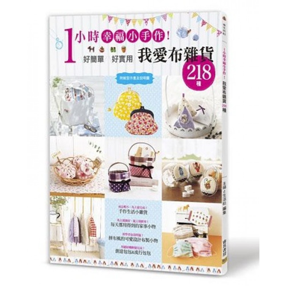 Prologue 什麼是「1小時手作小物」? 04-05 雙面迷你置物籃 06-07 房子形狀的鑰匙包 碎布衣架 花瓣蠟燭臺 PART 1 成品較小,馬上能完成! 手作生活小雜貨 08-09 鈕釦小狗 3隻蝴蝶吊飾 花朵鈕釦萬用夾 布膠帶 布標籤 具個人風格吉祥物裝飾環 10-11 蘋果的貼布繡木框 鑰匙袋&鑰匙圈 主題裝飾物 12-13 迷你袋子&香包 圓滾滾的磁鐵 紅茶香包 迷你菜籃包 14-15 花朵對對碰圖卡 壁虎玩偶 扮家家酒組合 水果沙包 16-19 手腕型針包 仙人掌針包 蘋果針包 禮物風針包 刺蝟針包 小鞋子和花籃針包 column 1 簡單!布製小飾品 20-21 SUMMER大腸髮圈 包釦和花朵髮圈 蝴蝶抓夾 YOYO小花啪啪夾 簡易髮箍帶 22-23 夏色自然風胸花 英文字母緞帶手環 蕾絲片耳環 立體胸花 不織布迷你胸花 復刻版花布的捲捲胸花 24-25 糖果髮圈 花邊羅紋織帶別針 花朵髮圈 幸運草和花朵的戒指 小熊髮圈 column 2 絕對會喜歡!實用小錢包 44-45 基本的口金包 Basic & Arrange 46-47 小碎花包 印章袋 筷袋 高雅口金包 48-49 小碎花化妝包 各式束口袋 牛奶糖拉鍊包 PART 2 馬上就做好,能立刻使用! 每天都用得到的家事小物 26-27 洗衣夾收納袋 彩色除塵撢 清潔用連指手套 28-29 面紙盒套 垃圾桶套 衣櫥用收納袋 軟布衣架 30-31 附提手小物收納桶 小物收納盤 骰子方盒 32-33 袖套 收納罐的蓋子 塑膠袋收納袋 34-35 可洗式浴室拖鞋 髮帶 棉花棒收納盒 36-37 線軸收納袋 剪刀收納套 針線收納袋 子母式方形盒 38-39 午茶時間套組 色彩繽紛的點心墊 塑膠布杯墊 40-41 圓形記號的午餐套組 萬用布 寶特瓶袋 便當束帶 42-43 立體口罩 抓縐口罩 PART 3 初學者也沒問題! 拼布風的可愛設計布製小物 50-51 鑰匙套 彩色手機吊繩 心形迷你針線包 52-53 手機袋 自然色調的面紙收納袋 蘑菇筆袋 54-55 提手包 兩折式錢包 手帳書衣 56-58 迷你小窗簾 燈罩 六角蜂巢的小物收納盒 六角蜂巢的圍裙 59 想要備齊的基本工具 有的話很開心的方便工具 PART 4 用縫紉機輕鬆完成! @創意包包&流行包包 60-61 便當袋 兩用購物袋 62-63 大方包 1泊2日的2way包 64-65 保冷袋 三角手提袋 66-67 基本款祖母包 拼布風祖母包 68-69 少女風抓皺托特包 大人風橫長托特包 單提手包包 70-71 肩背旅行包 小花郵差包
