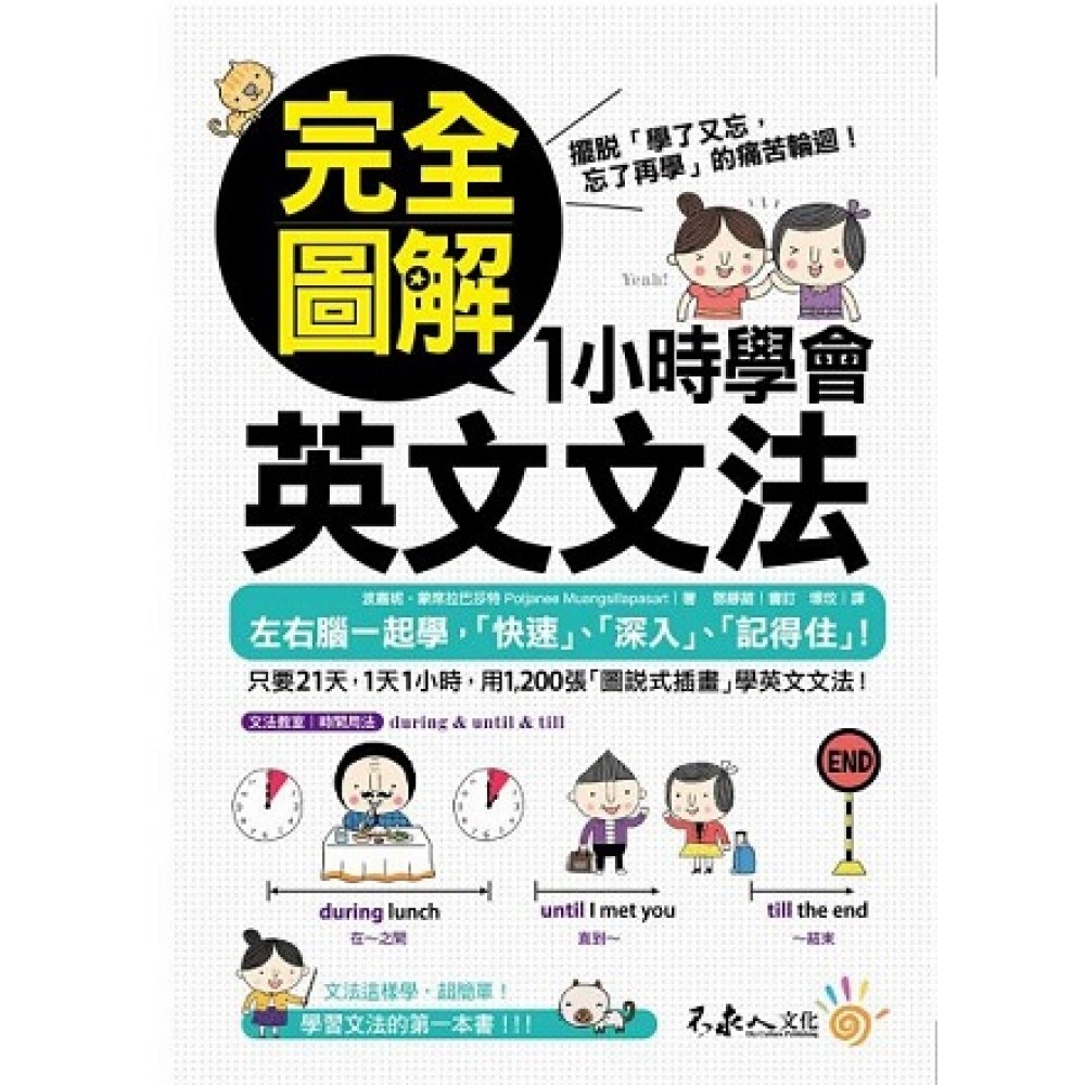 如果你是聽到「文法」就深呼吸倒退三步認為很難的人、 如果你是學了一輩子文法還是常常搞不清記不住的人、 如果你有閱讀障礙注意力集中度低的人、 翻開《完全圖解1小時學會英文文法》, 你將獲得重生。 超過1,200張「圖說式插畫」, 利用「單圖記憶」、「多圖比較」、 「空間示意」、「心智圖邏輯建構」……等各種圖像, 搭配少量但是重點的文字解說, 左右腦一起學,學得快、記得牢! 幫助學習文法的讀者跳脫「學了又忘,忘了再學」的痛苦輪迴。 總是分不清楚some、a few、little怎麼用?到底什麼要加the,什麼時候又不用?《完全圖解1小時學會英文文法》畫給你看! 總是被「中文字意看起來差不多,但是用法卻差很多」的情況困擾嗎?不要怕!《完全圖解1小時學會英文文法》將文法應用直接畫出來,容易搞混的就做「多圖比較」、互相關聯的利用「心智圖邏輯建構」、能用時間軸或空間概念理解的就做「空間示意」,像補習班老師最精華的白板圖解,一定讓你學到會! 超過1,200張有功能性的「圖說式插畫」,不用背,讓文法規則從此內建成你的直覺! 《完全圖解1小時學會英文文法》全書以圖為主、文字為輔的方式學習文法,經過研究顯示,利用圖像記憶的速度與深度不僅比文字快,同時還比文字更容易內化成直覺,或許你沒特別背誦,但看過的圖說文法已經經過左右腦同時烙印在腦中,達到無痛學習的功效。 誰說可愛插圖只能學基礎文法?《完全圖解1小時學會英文文法》囊括基礎到進階的文法學習,用圖解幫助你突破一直卡關的文法障礙! 基礎文法人人會,卻常常錯,因為記得不夠深;有人聽到進階文法就打瞌睡,但只要學會就輕鬆超越。《完全圖解1小時學會英文文法》一次學習21種文法主題,搭配上千張插畫解說,讓你基礎文法記得牢、進階文法學得快! 《完全圖解1小時學會英文文法》規劃了21種文法學習主題,學完還有遊戲練習,邊玩、邊學、邊複習,用極小的努力,加強學習的力道! 學識要能被應用,才有它的價值,要確認是否有應用能力,考試是其中一種測驗方式,而《完全圖解1小時學會英文文法》則是利用遊戲練習題來測試,不像考試這麼痛苦,用愉悅的遊戲達到練習與驗收的目的,進而瞭解自己的學習狀況,掌控學習的進度。 讓你喜歡文法、學好文法, 《完全圖解1小時學會英文文法》, 是你學習文法的第一選擇。