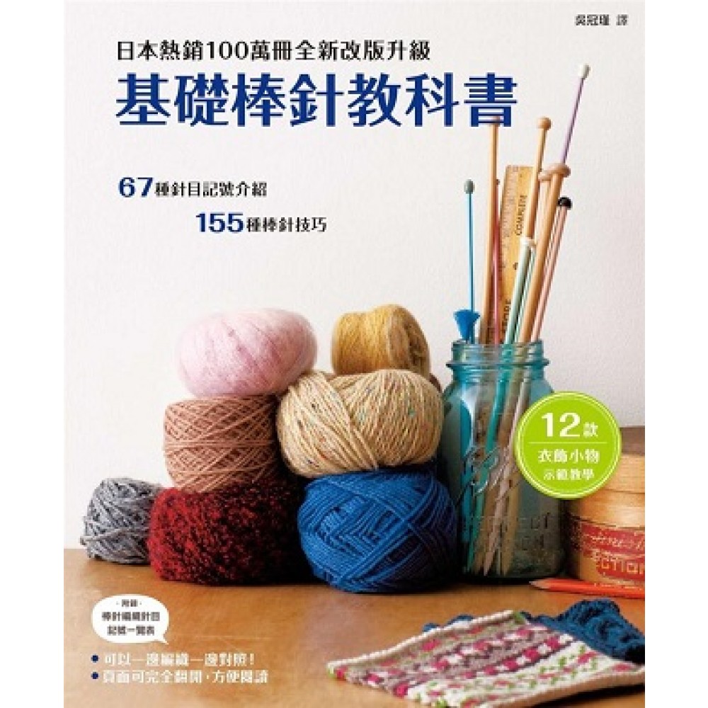 .棒針編織的針目記號一覽表 .透過本書即能編織的作品 .STEP1棒針編織的基礎 .開始編織之前… .棒針的知識 .其他用具 .毛線的知識 .開始編織看看吧! .從毛線球中取出線頭開始 .基本的起針法 .手指掛線的起針 .別線的起針 .原線的起針 .輪編的起針 .遇到這種情況呢? 棒針的分界處有如插入一條線一樣 .針數多時請試著使用輪針 .基本的編織方法 .毛線的掛法和棒針的拿法/下針/上針 .學會正確的針目形狀 .遇到這種情況呢? 上針無法順利編織 .平面編 .遇到這種情況呢? 針目不小心在途中脫落! .下針和上針的各種編織方式 .上針的平面編/起伏編/鬆緊編/桂花編 .Point 記號圖的標示/針目的形狀、名稱和數法 .基本的收縫法 .套收針 .毛線的換法 .嘗試開始編織吧! .圍巾‧織法/製作流蘇 .斗篷‧織法 .STEP2各種針目記號的織法 .掛針/套收針 .扭針/右上2併針/左上2併針 .中上3併針/右上3併針/左上3併針 .右上4併針/左上4併針/中上5併針 .Point鏤空花樣的構造 .右加針/左加針/下針3針的編出加針 .右上1針交叉/左上1針交叉/右上扭1針交叉(下方為上針)/左上扭1針交叉(下方為上針) .右上2針交叉/左上2針交叉(中間插入1針)/右套左交叉針 .左上2針交叉/左上2針交叉(中間插入1針)/左套右交叉針 .右上2針與1針交叉/左上2針與1針交叉 捲針(繞2圈)‧(繞3圈) .引上針/英式鬆緊編 .3針3段的玉編/5針5段的玉編 .中長針3針的玉編 .4段編下的玉編針/穿過右針打結 .右引出線的打結/左引出線的打結/穿過左針打結 .滑針/浮針/捲3次打結 .Point花樣編織的記號圖標示 .嘗試編織作品吧! .襪套‧織法/左上3針交叉/右上3針交叉 .帽子‧織法 .背心‧織法 .STEP3棒針編織變得更有趣的實用訣竅 .關於密度 .橫條紋花樣和編入花樣 .橫條紋的花樣 .直條紋的花樣 .橫向渡線的編入花樣 .遇到這種情況呢? 渡線太長容易卡住…… .纏繞渡線的編入花樣 .縱向渡線的編入花樣 .平針刺繡 .了解會很方便!裝飾球的作法 .釦洞的織法 .鈕扣的縫法 .口袋的織法 .對創造作品有幫助!繩索的織法 .嘗試編織作品吧! .裙子‧織法 .帽子‧織法 .手套‧織法 .STEP4上衣的織法 .編織上衣之前 .各部位的名稱和編織順序 .織法圖和記號圖的標示 .推算數值的標記 .鬆緊編的起針法 .別線的1目鬆緊編起針法 .別線的拆除法 .別線的2目鬆緊編起針法 .手指掛線的1目鬆緊編起針法 .減針 .邊緣1針立針減針 .邊緣2針的立針減針/分散減針 .套收針 .袖攏的織法 .圓領的織法 .Point花樣會呈現在1段下方嗎?─針目的構造─ .V領的織法 .加針 .扭加針 .右加針‧左加針 .掛針和扭針的加針/分散加針 .捲加針 .也有這種加針 .平均減針或加針的方法 .引返編 .留下針目的引返編<下針的情況> .Point段數別針代替掛針 .留下針目的引返編<上針的情況> .增加針目的引返編<下針的情況> .增加針目的引返編<上針的情況> .各式各樣的收縫法 .鬆緊編收縫法 .1目鬆緊編收縫法 .2目鬆緊編收縫法 .遇到這種情況呢? 鬆緊編收縫法的加線方法 .捲縫法/束緊法 .併縫法 .使用縫針的方法 .平面編併縫 .上針平面編併縫 .起伏編併縫/針目和段的併縫 .捲併縫(捲針縫) .使用鉤針的方法 .引拔併縫 .覆蓋併縫 .綴縫法 .挑針綴縫 .平面編 .起伏編 .1目鬆緊編 .2目鬆緊編 .上針平面編 .遇到這種情況呢? 加縫線的方法 .引拔綴縫/半回針綴縫 .關於分股線 .遇到這種情況呢? 縫線穿針的方法 .挑針 .從別線起針的挑針 .從手指掛線起針的挑針/從套收針的挑針 .從段的挑針/斜線或曲線的挑針 .圓領的挑針 .V領的挑針和織法 .馬球領的挑針和織法 .接合衣袖 .基本袖/拉克蘭袖 .直線袖 .熨斗的燙法 .花點巧思成品大不同!簡單調整尺寸的方法/想用不同毛線編織的選線訣竅 .嘗試編織作品吧! .V領背心‧織法 .套頭毛衣‧織法 .長版背心‧織法 .INDEX .本書使用的毛線