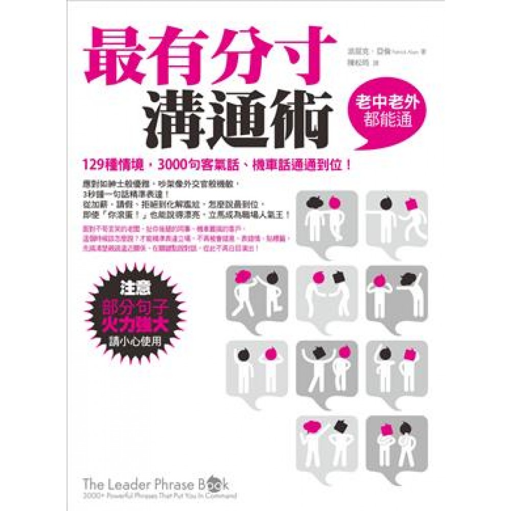 前言 如何使用本書 Part1 日常對話 1. 如何表示同意 2. 如何表示反對 3. 如何開啟對話 4. 如何結束談話 5. 如何傳遞消息 6. 如何闡述觀點 7. 如何詢問他人意見 8. 如何表達自己的意見 9. 如何尋求更多的資訊 10. 如何澄清自己的觀點 11. 如何向他人傾吐秘密 12. 如何轉換話題 13. 如何表達懷疑 14. 如何和失聯已久的舊識重拾連絡 15. 當你回答完一個問題之後 16. 當你不想回答問題時 17. 當別人請你重講一次 Part2 辦公室厚黑學 18. 如何要求加薪 19. 如何要求休假 20. 如何拒絕老闆 21. 如何避免碰觸私人話題 22. 如何提出一個私人或令人尷尬的話題 23. 如何提升他人信心 24. 如何要求單獨談話 25. 當你需要他人的注意力 26. 如何分配任務給其他人 27. 如何整肅會議秩序 28. 如何結束會議 29. 如何讓談話重新聚焦 30. 如何提議一項行動或方案 31. 如何推延一項任務 32. 如何推延一場對話 33. 如何推延做決定的時間 34. 如何團結眾人 35. 如何稱讚上司 36. 如何鼓舞員工 37. 當員工表現退步時 38. 如何開除員工 39. 如何強調事情的急迫性 40. 如何緩和事情的節奏 Part3 處理衝突與憤怒 41. 如何化解緊張氣氛 42. 如何調解其他人的衝突 43. 如何化解誤會 44. 如何回應充滿敵意的評論 45. 當對方生氣時 46. 被緊迫盯人時 47. 當他人固執己見時 48. 當他人態度傲慢 49. 當他人出言威脅 50. 當有人對你百般挑剔 51. 當有人說謊 52. 當有人想和你吵架 53. 當被人打斷時 54. 當被人取笑時 55. 當被人批評時 56. 當他人防衛心過高 57. 當被人質疑時 58. 當有人逃避你的問題 59. 當有人對你吼叫 60. 當有人對你罵髒話 61. 當有人想轉移話題 62. 當被人侮辱時 63. 當有人對你暴力相向 Part4 展現外交手腕 64. 如何開啟一場討論 65. 如何結束一場討論 66. 如何開始一場演說 67. 如何結束一場公開演說 68. 如何指控他人 69. 如何凝聚共識 70. 如何處理意見不同的場面 71. 如何避免敏感話題 72. 如何做建議 73. 如何回覆不想採納的建議 74. 當有人為了某件事指責你 75. 當你是謠言主角 Part5 談判時刻 76. 如何詢問問題 77. 想拖延回答時間時 78. 如何強調重點 79. 想說服對方時 80. 如何接受提議 81. 打算拒絕對方提議時 82. 如何向他人推銷 83. 如何討價還價 84. 當陷入僵局時 85. 如何要求對方妥協 Part6 解決問題 86. 當需要處理/面對問題時 87. 請他人幫忙時 88. 簡化複雜的問題時 89. 和遭逢困難的人對話 90. 如何談論目前遇到的問題 91. 如何談論一個過去的問題 92. 準備提議一項計畫 93. 當你需要大家冷靜時 94. 如何警告他人 95. 適當表達抱怨 96. 如何回應他人的抱怨 97. 當他人抱持負面態度時 98. 當複雜事情過度簡化時 Part7 表現風度禮貌 99. 如何請別人幫忙 100. 如何幫忙別人 101. 當有人請你幫忙時 102. 如何感謝他人 103. 當有人感謝你時 104. 如何誇獎某人 105. 當他人誇獎你時 106. 當有人邀請你時 107. 如何為自己說過的話道歉 108. 如何為你做過的事情道歉 109. 如何為了忘記某事而道歉 110. 如何為了遲到道歉 111. 如何為了你的組員的錯道歉 Part8 掌控發言權的帝王學 112. 如何懷疑他人 113. 如何威脅他人 114. 從他人口中套出消息 115. 反擊他人的指責 116. 如何讓他人難堪 117. 當有人插手管你的事情 118. 如何控制一場談話 119. 如何和他人爭論 120. 如何讓他人自我懷疑 121. 避免討論拖延 122. 如何迴避某人 123. 如何營造信任 Bonus:領導者可以這樣說 124. 領導者如何表示同意 125. 領導者如何說不 126. 領導者如何說或許 127. 領導者如何說不知道 128. 領導者如何說我不懂 129. 領導者如何說我要保密